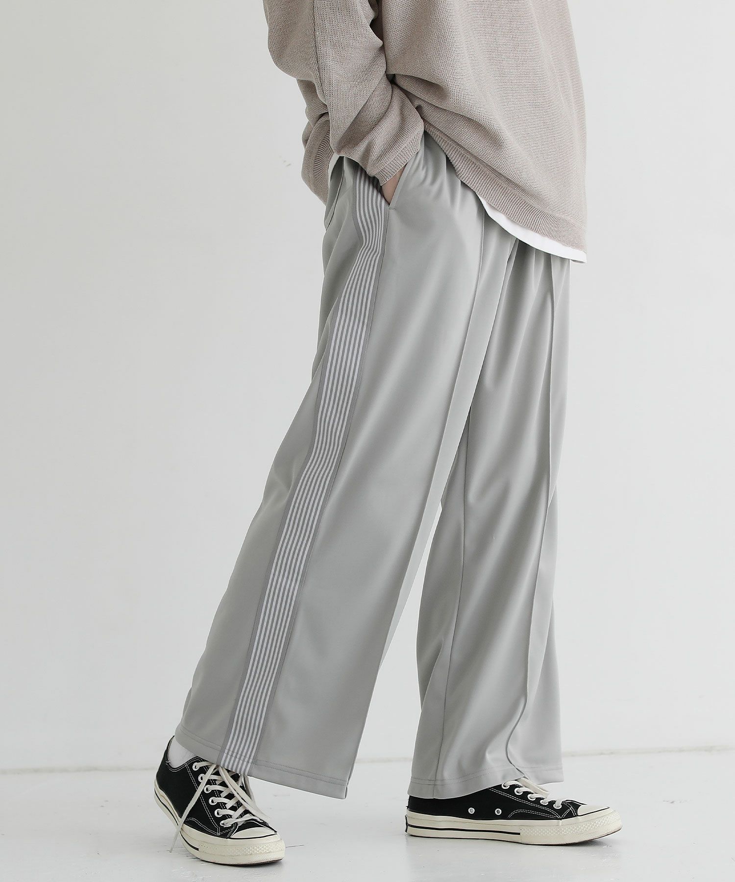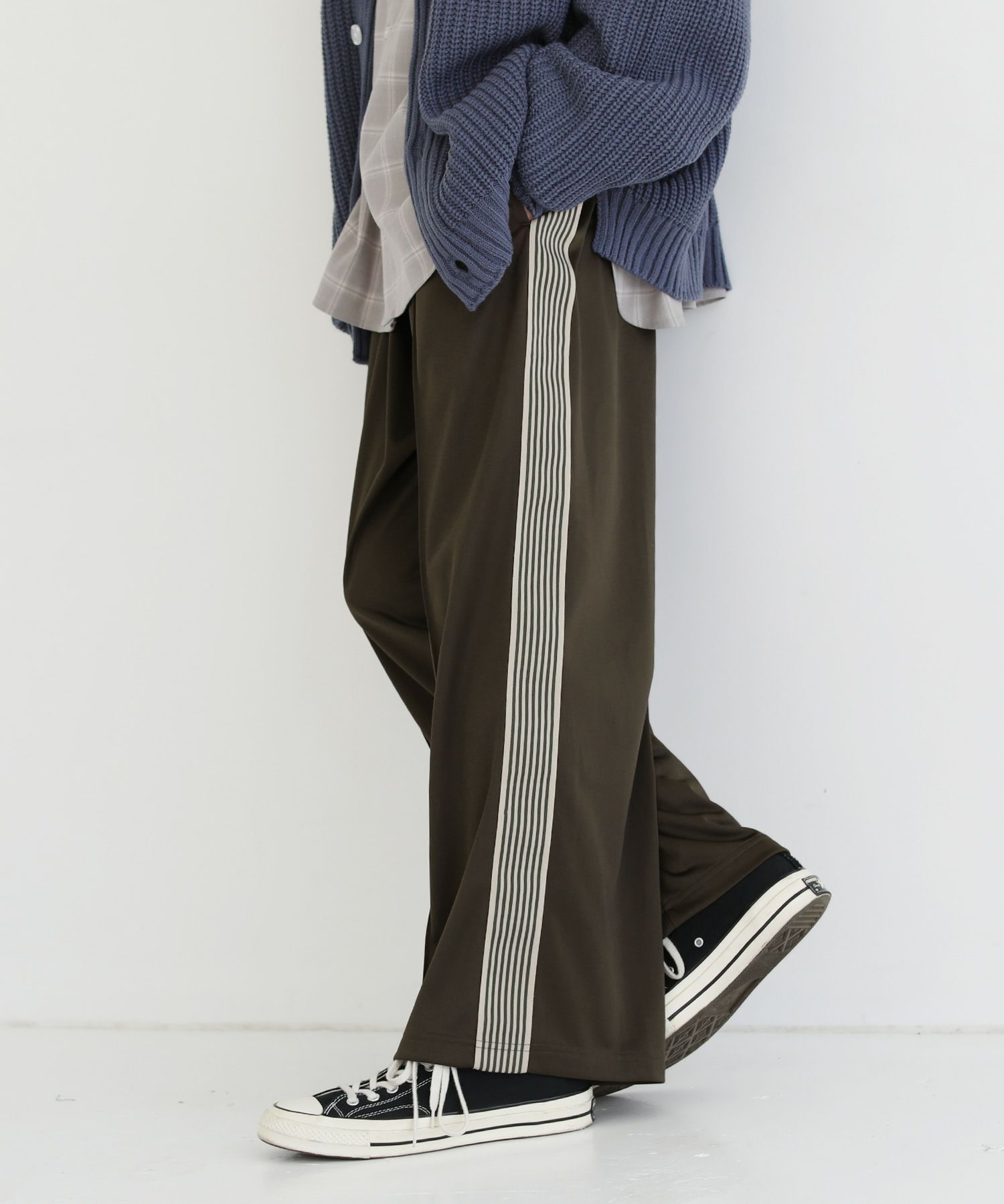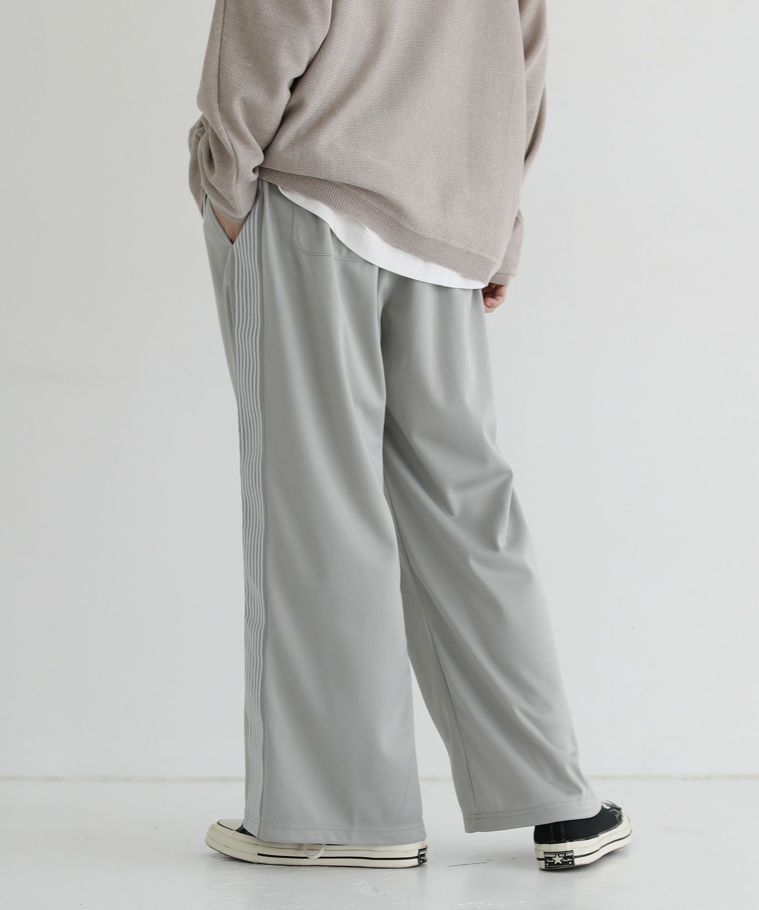 トレンド感のあるワイドシルエットのトラックパンツ。