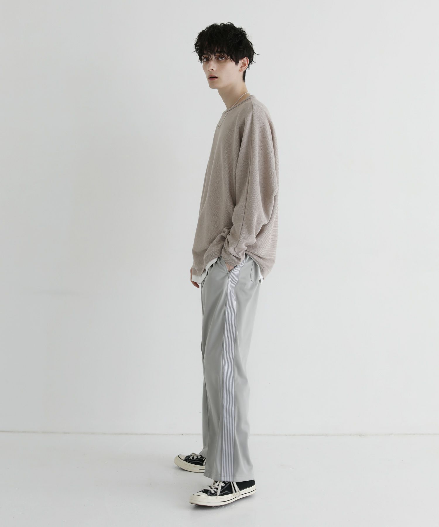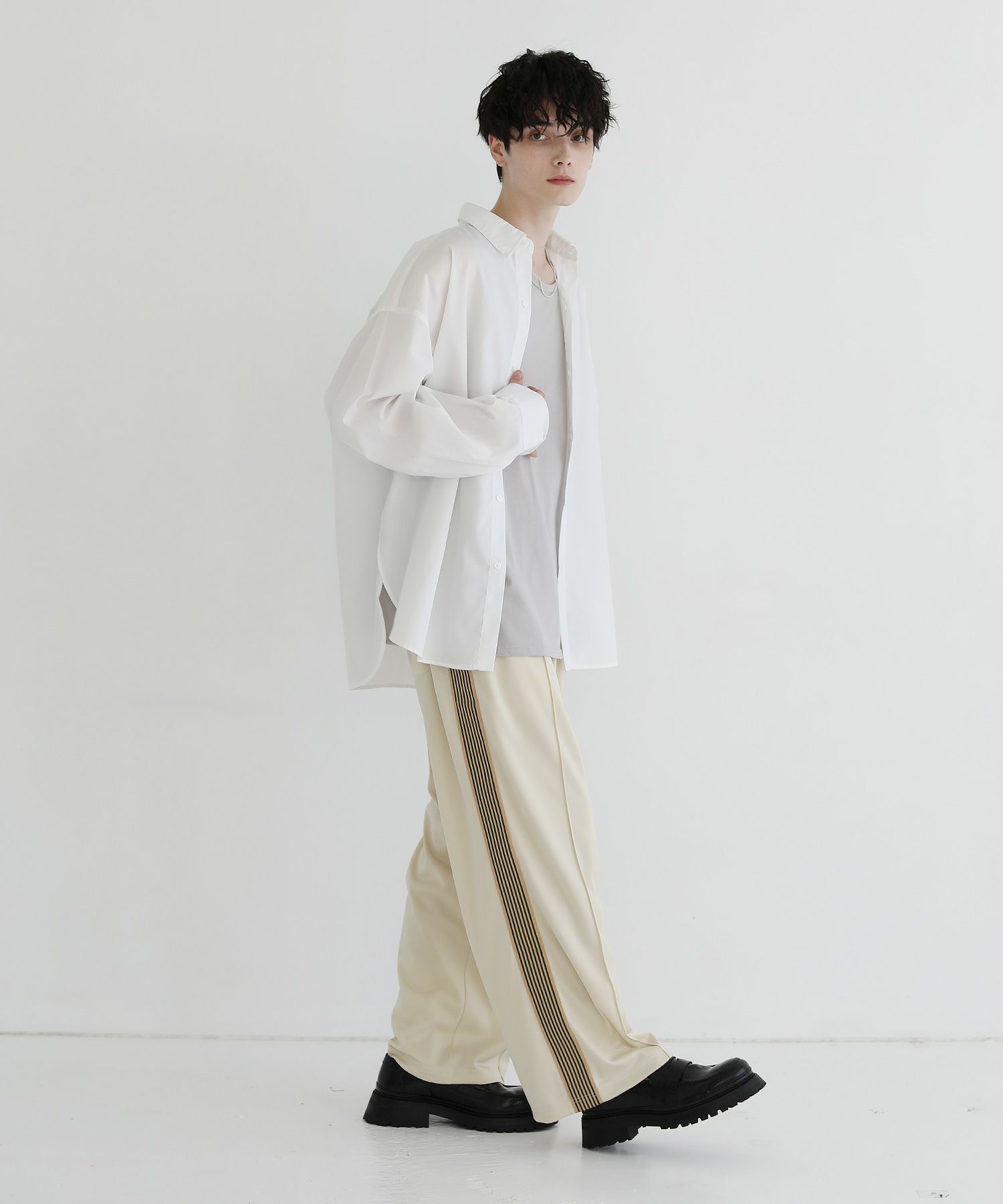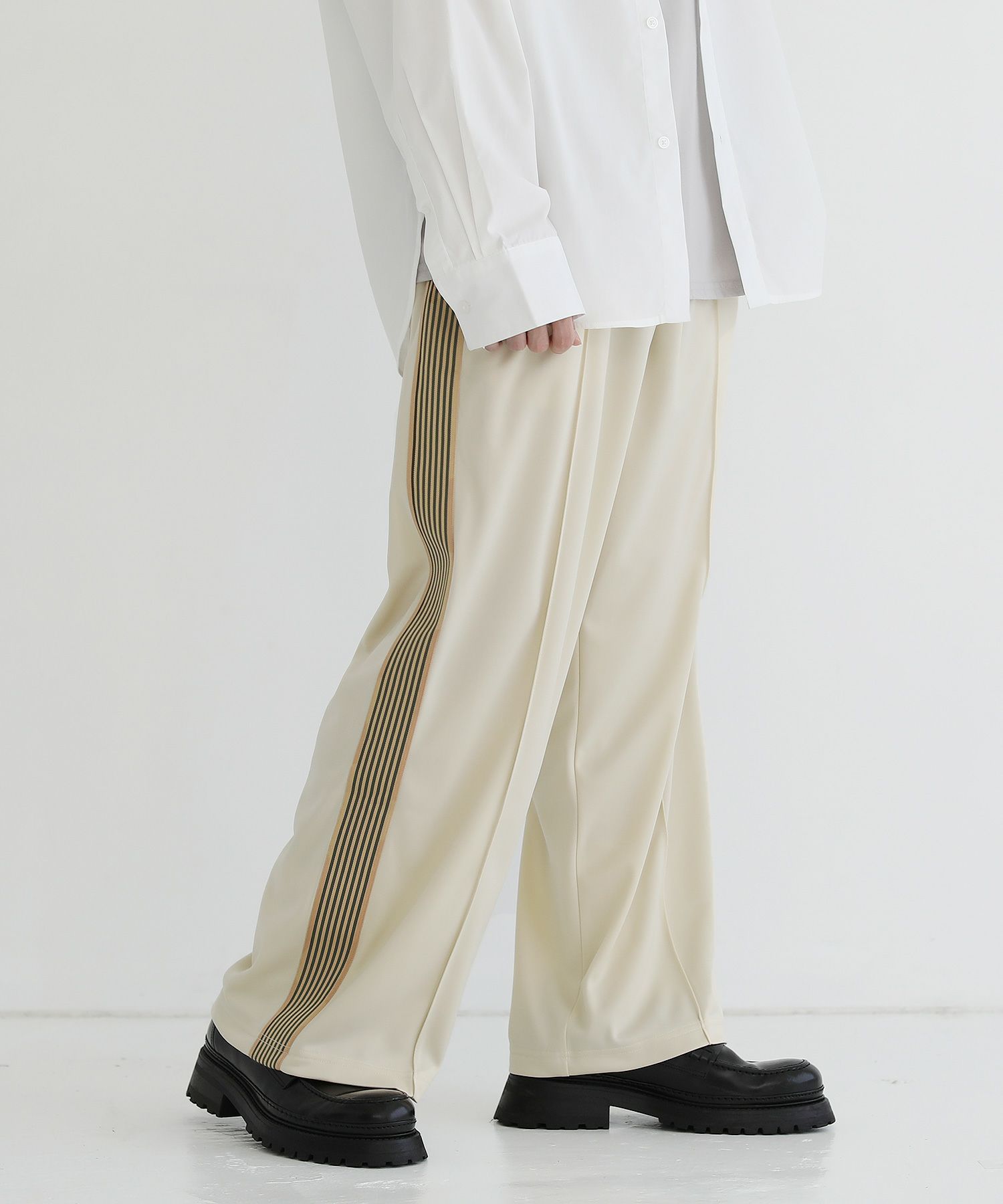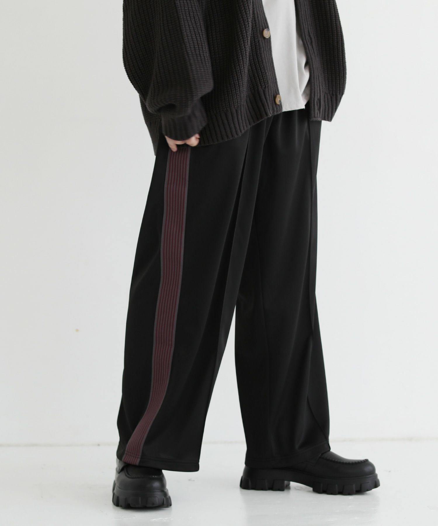 トレンド感のあるワイドシルエットのトラックパンツ。