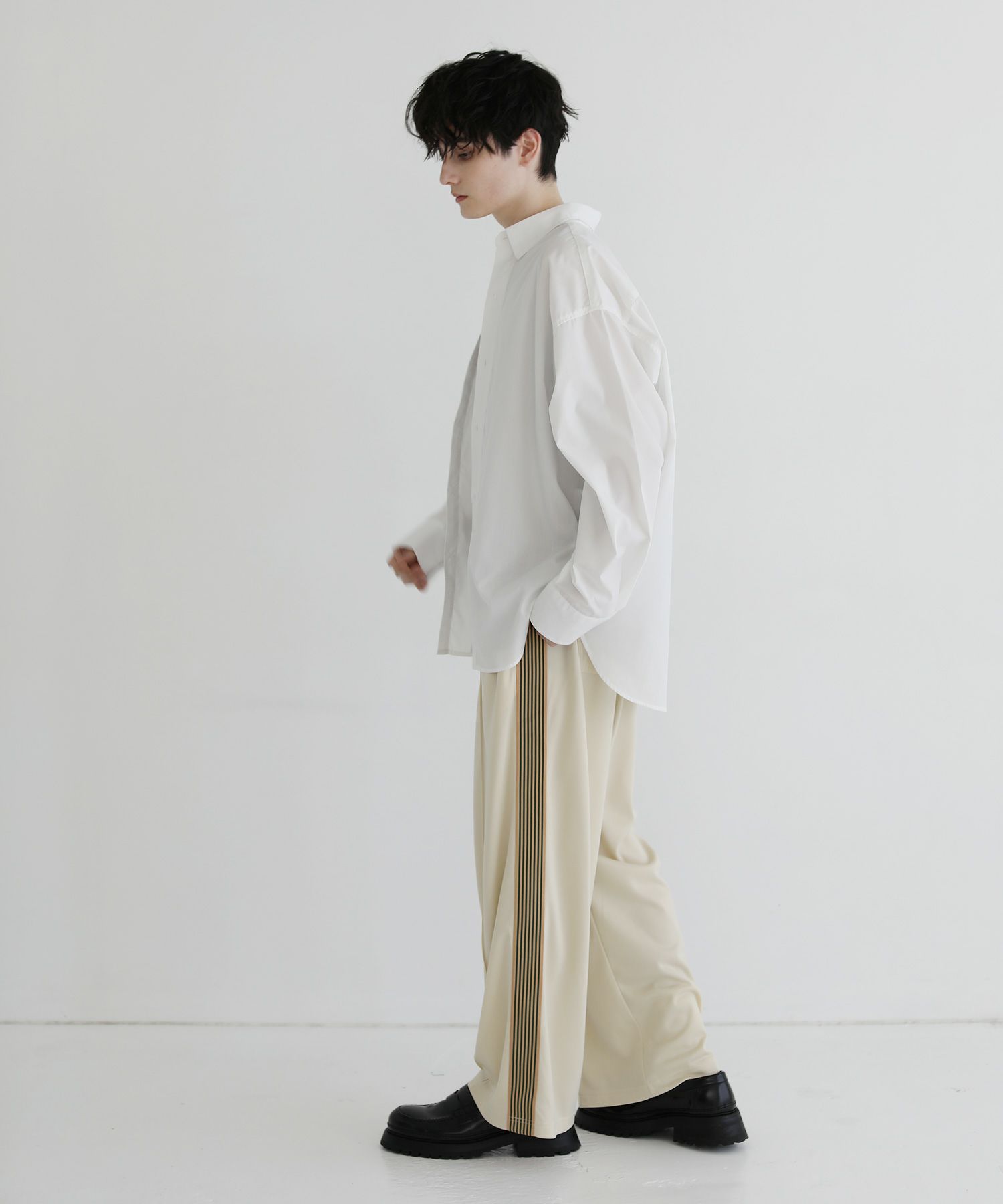 裾に向かってすとんと落ちるストレートシルエット&ジャストレングスで、ワイドなシルエットながらすっきりと穿きこなせます。