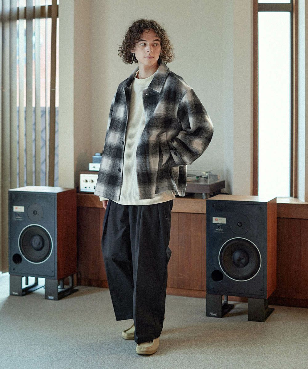 しなやかなコットンポリエステルのツイル生地を採用しました。ほのかなツヤ感があり上品な雰囲気に魅せてくれます。ヘビーツイル生地を使用することでハリ感が生まれ、着用時のシルエットをキレイに保ってくれます。
