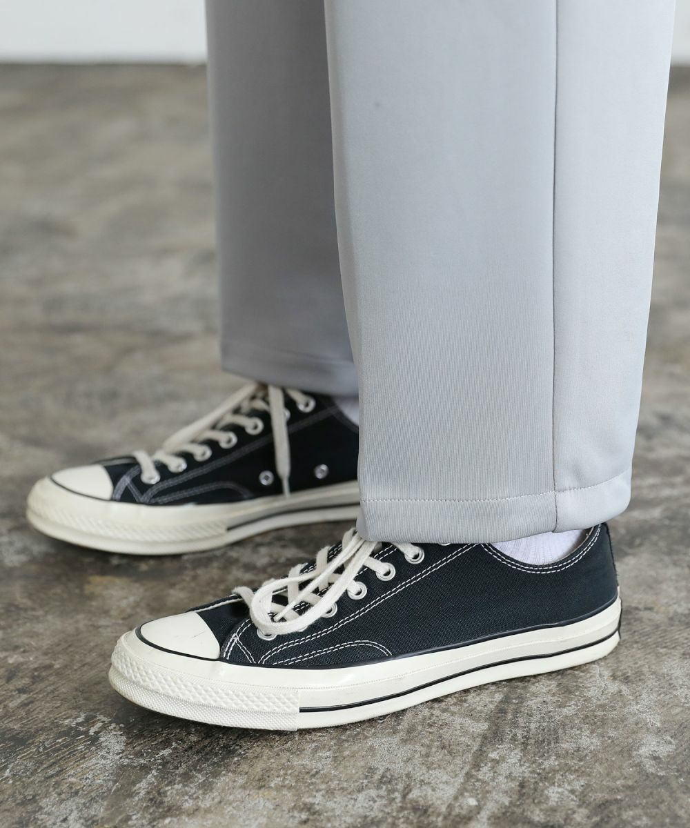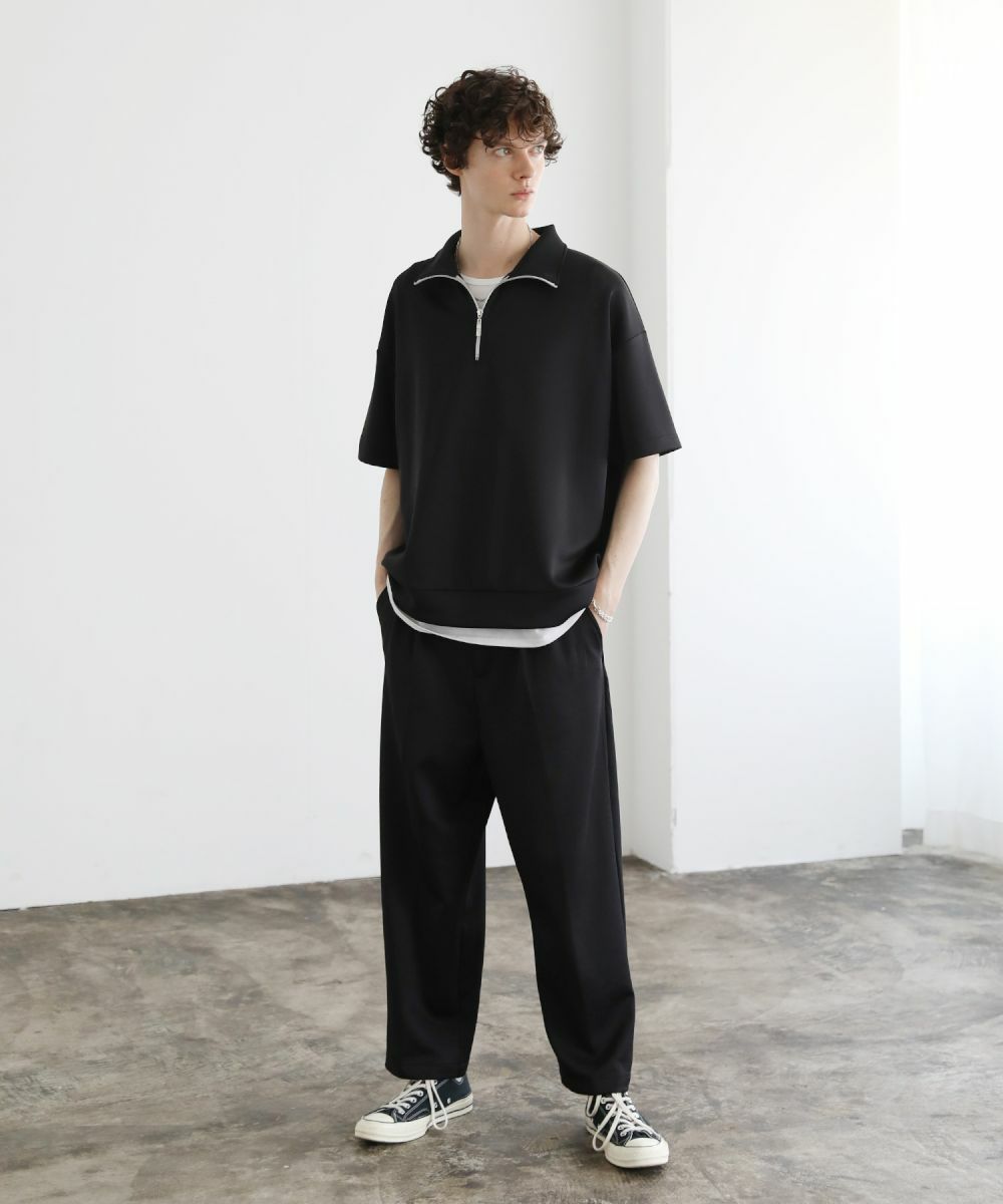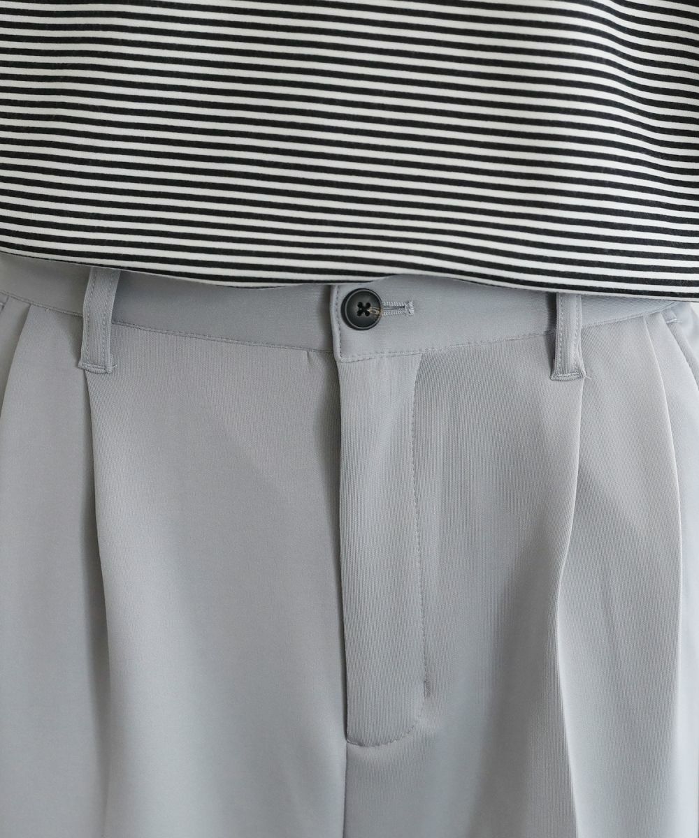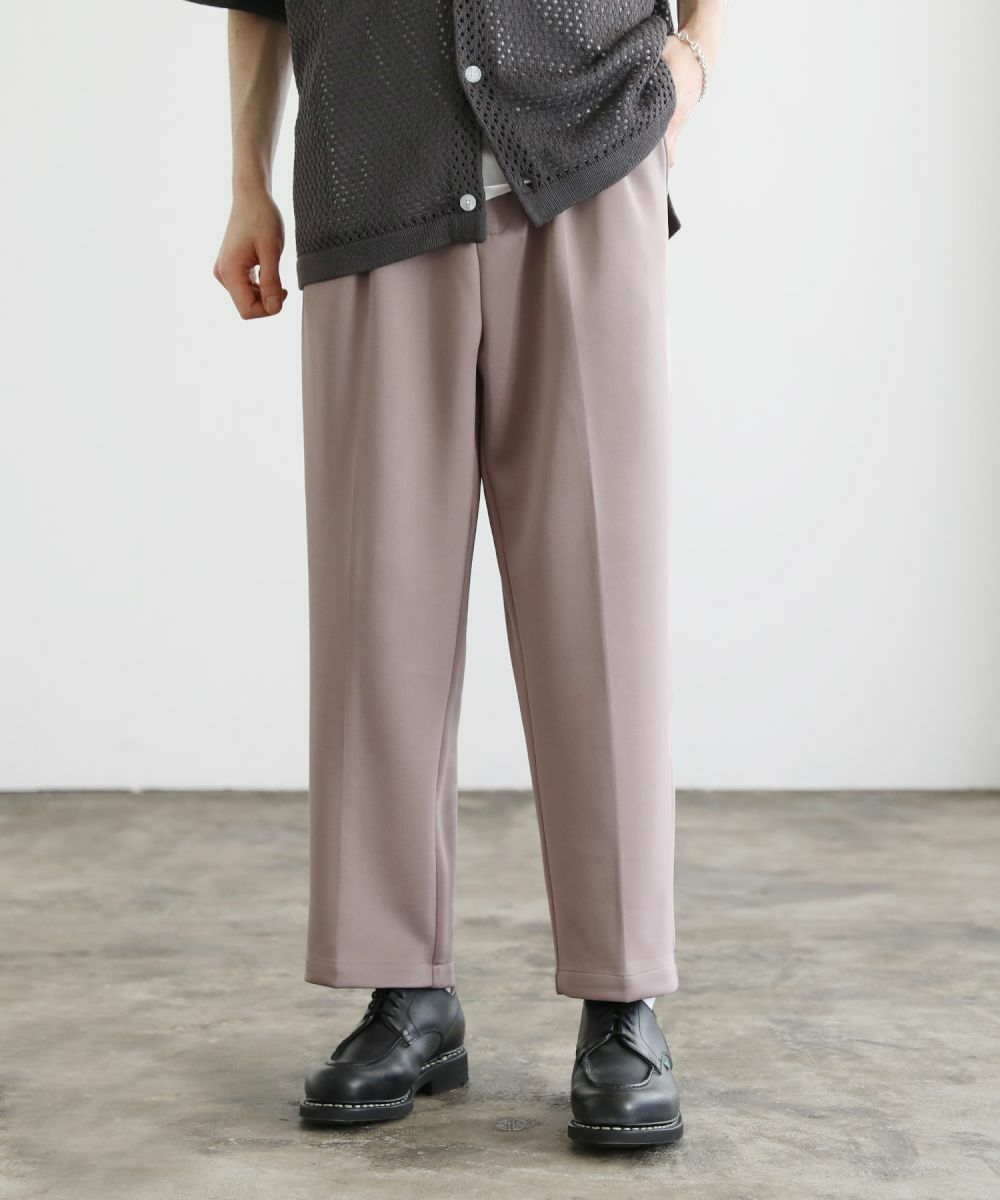 ゆったりとしたルーズシルエットが魅力のワイドスラックス。センタープレスが入っており、キレイなシルエットに仕上がっております。ウエスト後ろにゴムが入ったイージパンツ仕様。夏に嬉しいドライタッチなポンチ生地で、伸縮性に優れており楽な着心地が魅力。ほんのりと光沢感があり、シンプルなアイテムながら1枚で上品でキレイめな印象を与えてくれます。