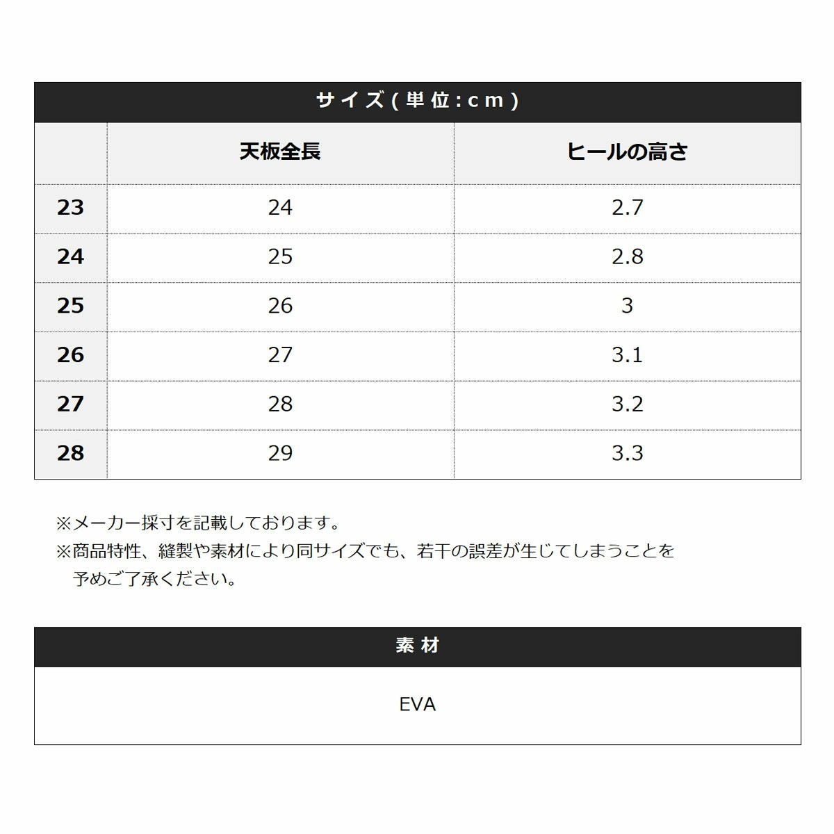 ※サイズ表はメーカー採寸数値を記載しております。