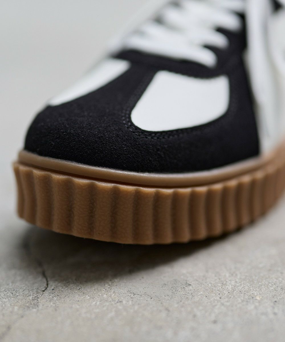 ボリューム感のあるソールが自然なスタイルアップを叶えつつ、軽量で履きやすい仕上がりです。 アッパーには異素材の切替を取り入れ、立体感のあるデザインに。 シンプルながら存在感のある一足は、カジュアルからスポーツMIXまで幅広く活躍します。