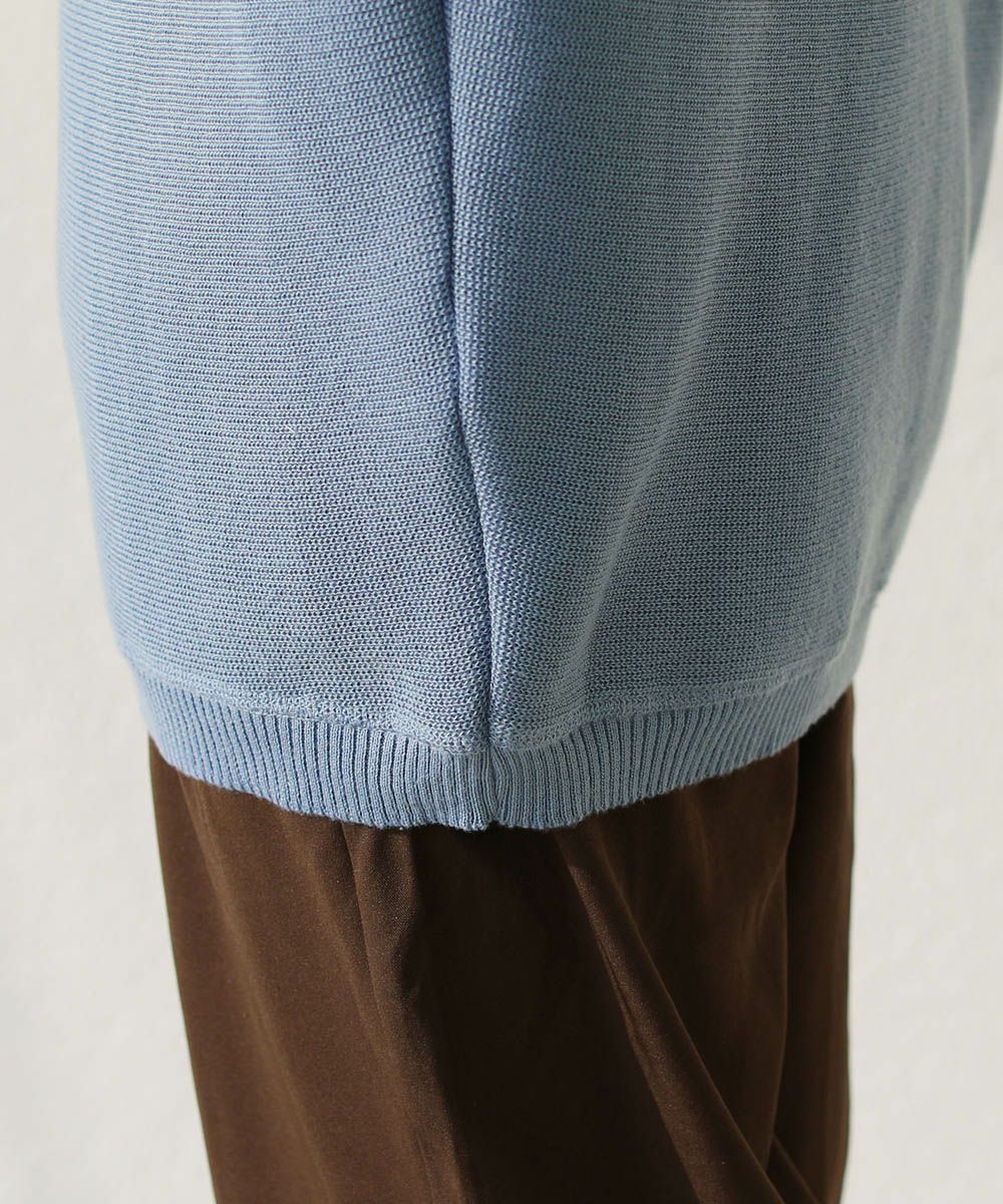 自宅での手洗いが可能なポリエステル100%ニットです。汗をかく夏の時期も使いやすい素材。生地が伸びないように平干しがおすすめです。乾燥機のご使用はお控えください。
