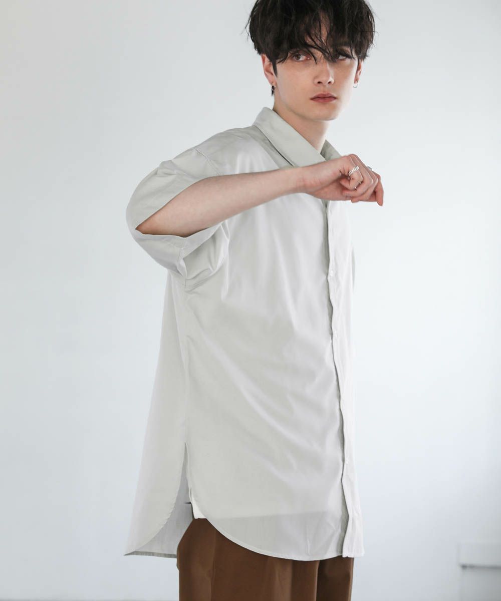 ゆったりとした身幅に着丈のバランスや袖の太さ、深めのサイドスリットなど計算されたバランスのルーズシルエットシャツ。上品な素材感とゆったりとした空気感が今の気分にぴったりな旬のアイテムです。半袖よりも袖の長い5分袖を採用した清涼感のある爽やかさが魅力。ドロップショルダーのリラックス感あるシルエットで前開けでも1枚でも決まります。爽やかな印象の5分袖ブロードシャツは初夏から秋口まで活躍します。