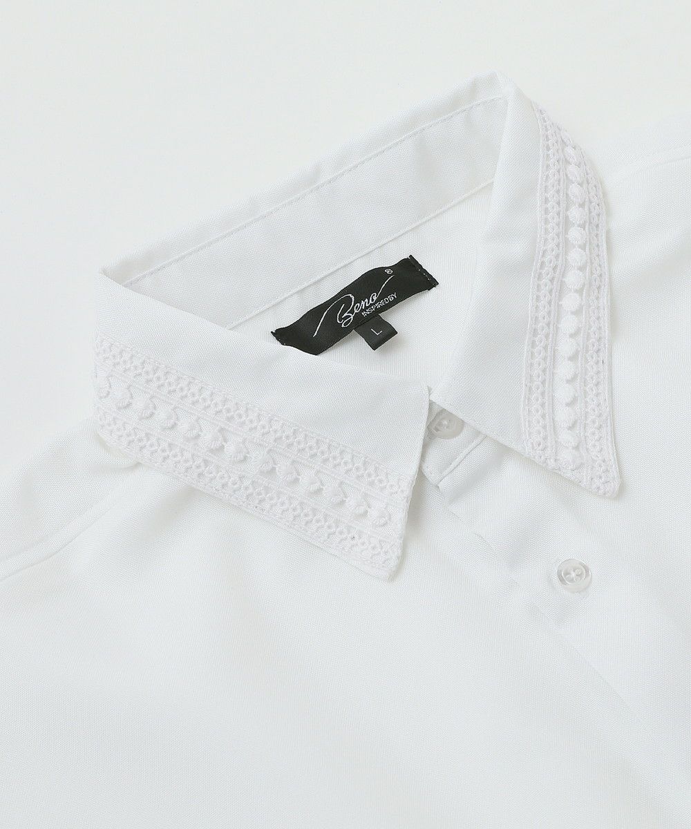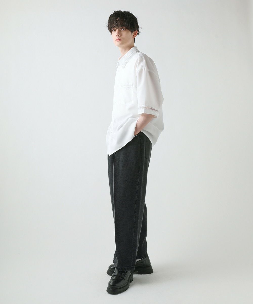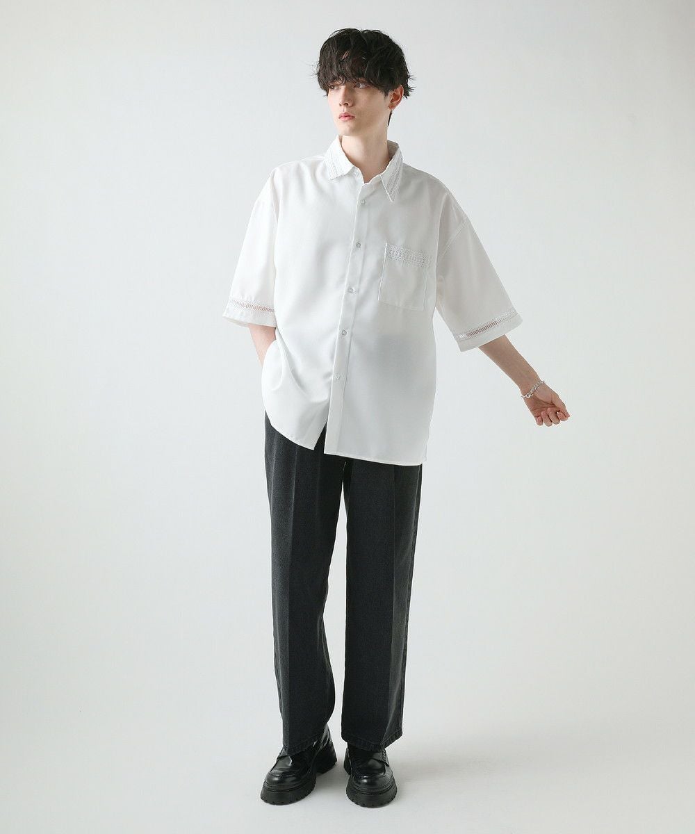 襟や裾、袖の切り替え部分にレースを施した華やかなシャツ。ワントーンに馴染みながらも、異素材のコントラストがメリハリと上品さをプラスします。袖や身幅をワイドに設定し、抜け感のある印象に仕上げました。レースのデザインと切り替え部分が異なるタイプA、Bの2種類展開。Aは襟、胸ポケット、袖口部分。Bは袖口、裾部分にレース切り替えが入っています。ホワイト、ブラックの2色展開で、お持ちのアイテムに取り入れやすくコーデを上品にまとめられます。