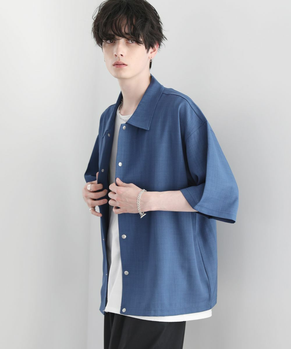 通気性も良く、夏のアウターとして最適なテックリネン半袖コーチシャツジャケット。程よくゆとりがありながらも、キレイめの印象に仕上がるシルエット。気兼ねなく羽織れるアイテムでありながら、生地には程よい光沢感があり、上品な印象で着こなしていただけます。また、スナップボタンの仕様で着脱もスムーズです。ブラック、ブルー、ブラウンのベーシックカラーをはじめ、夏らしいベージュ、グレーのくすみ系含めた6色展開。
