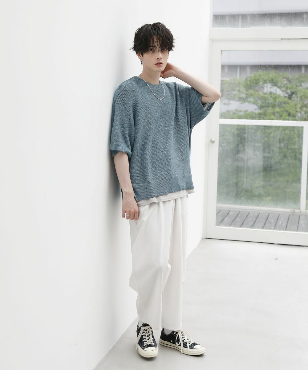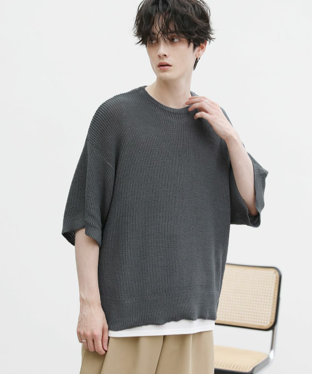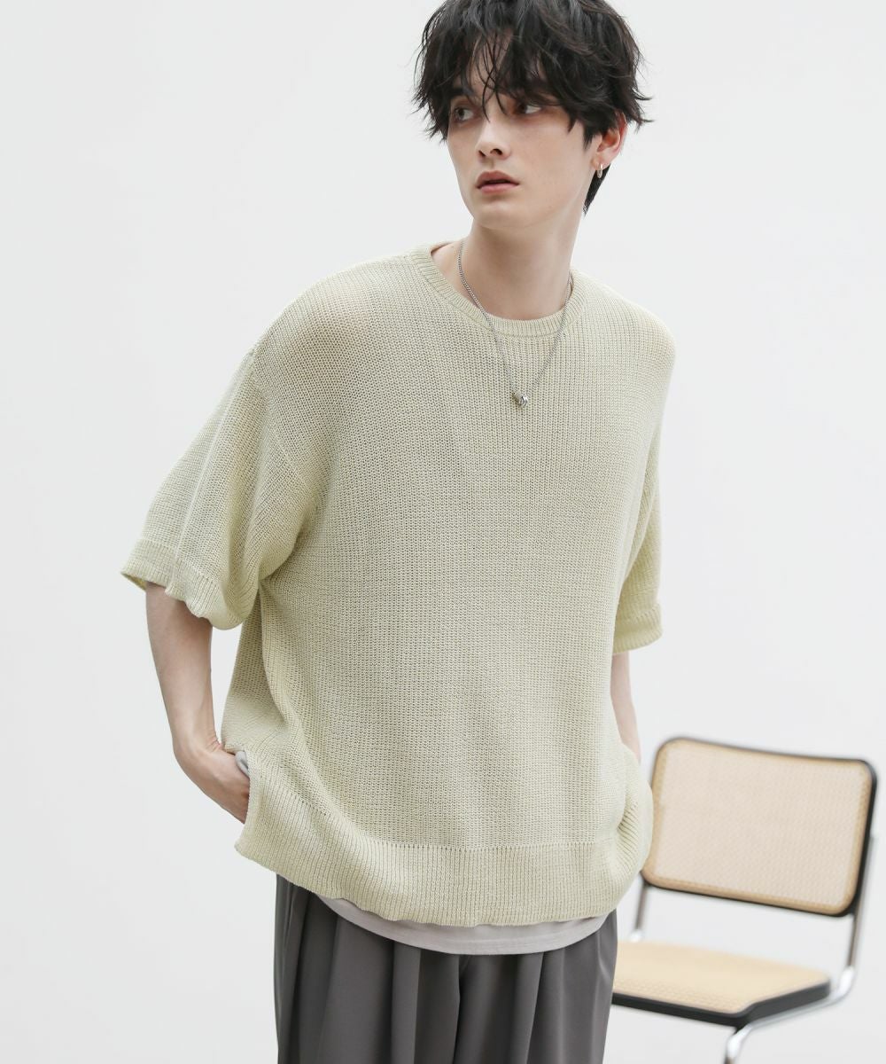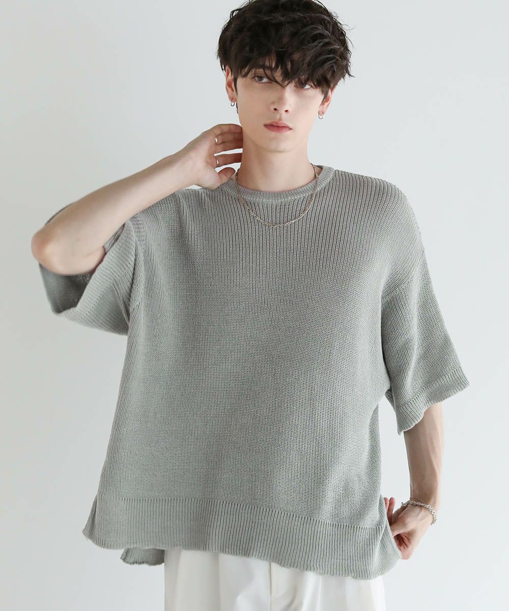 程よいルーズシルエットで上品さと抜け感のあるサマーニット。ウォッシャブルニットを使用し、ご自宅でのケアも簡単なのが夏に嬉しいポイント。ざっくり目の編み地に仕立て、カジュアルな雰囲気と柔らかな風合いが魅力です。 ルーズシルエットにドロップショルダー、浅めに入ったサイドスリットが今っぽい抜け感を演出します。Tシャツ以外の選択肢として、薄着で過ごす春夏シーズンにおすすめの一着。