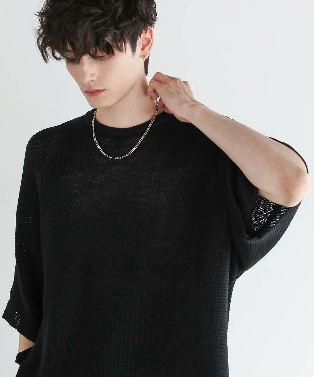 3. ウォッシャブル畔編みサイドスリット5分袖ニット