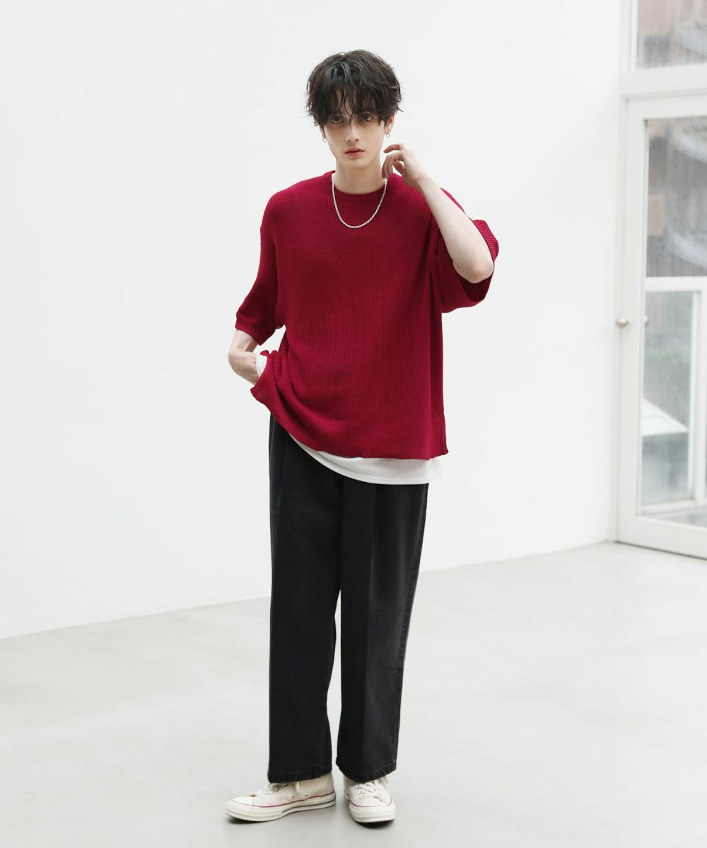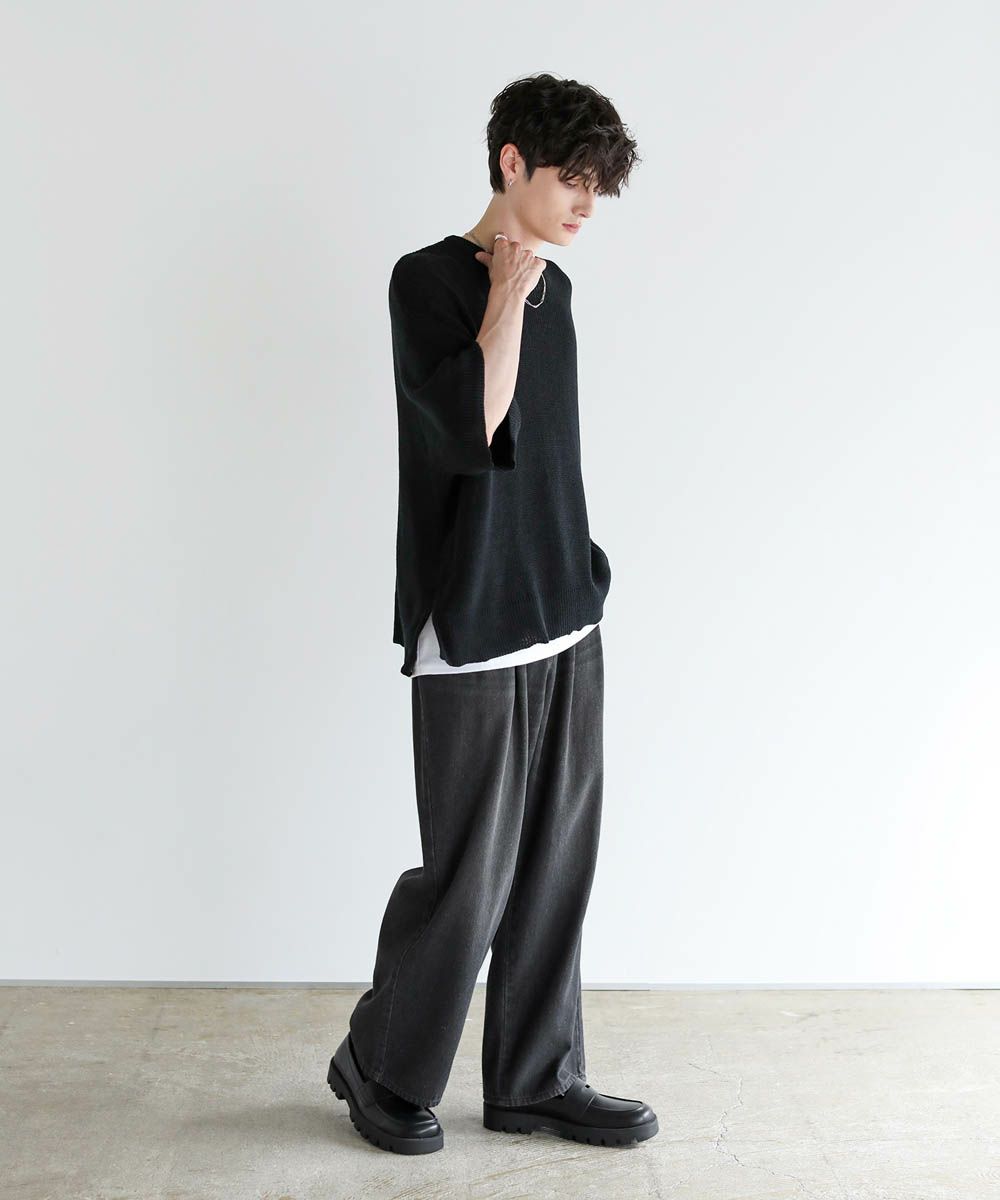 ワイドデニムやカーゴパンツ、バギーパンツなど太めのボトムと合わせてリラックス感のある着こなしがおすすめです。