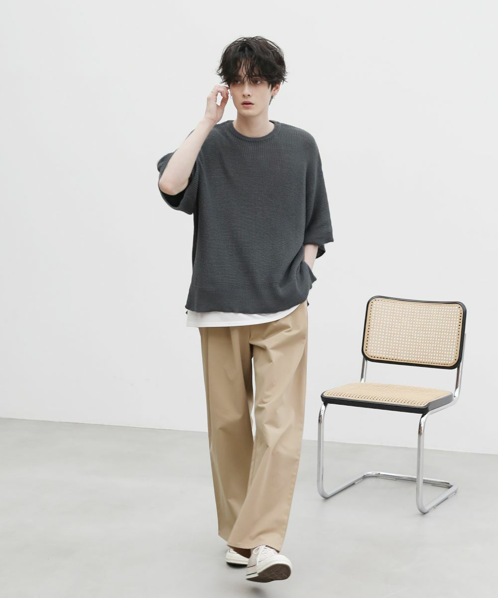 程よいルーズシルエットで上品さと抜け感のあるサマーニット。ウォッシャブルニットを使用し、ご自宅でのケアも簡単なのが夏に嬉しいポイント。ざっくり目の編み地に仕立て、カジュアルな雰囲気と柔らかな風合いが魅力です。
