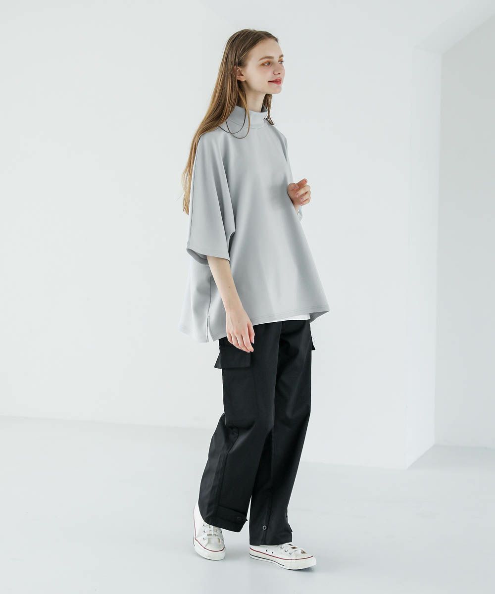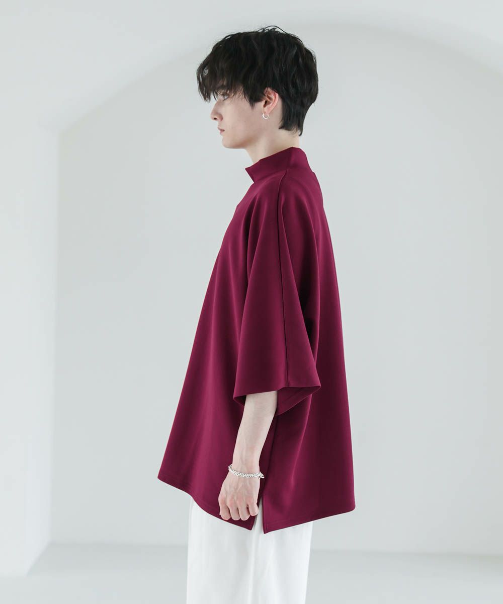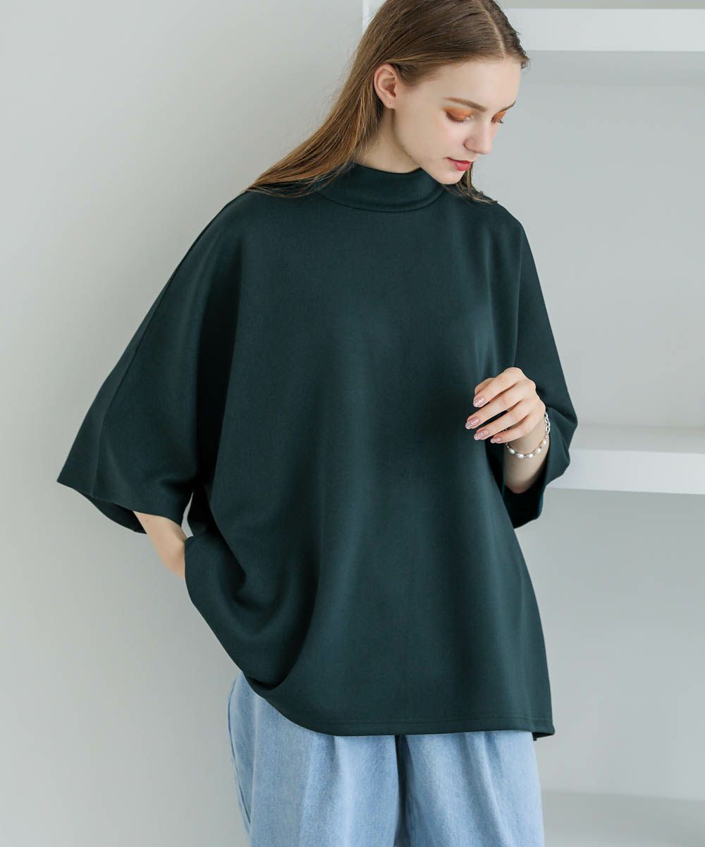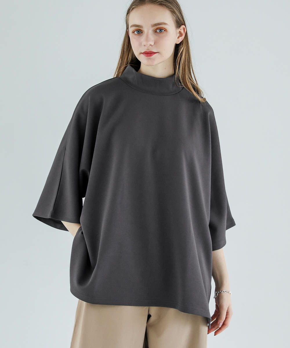 モックネック半袖ポンチドルマンプルオーバー