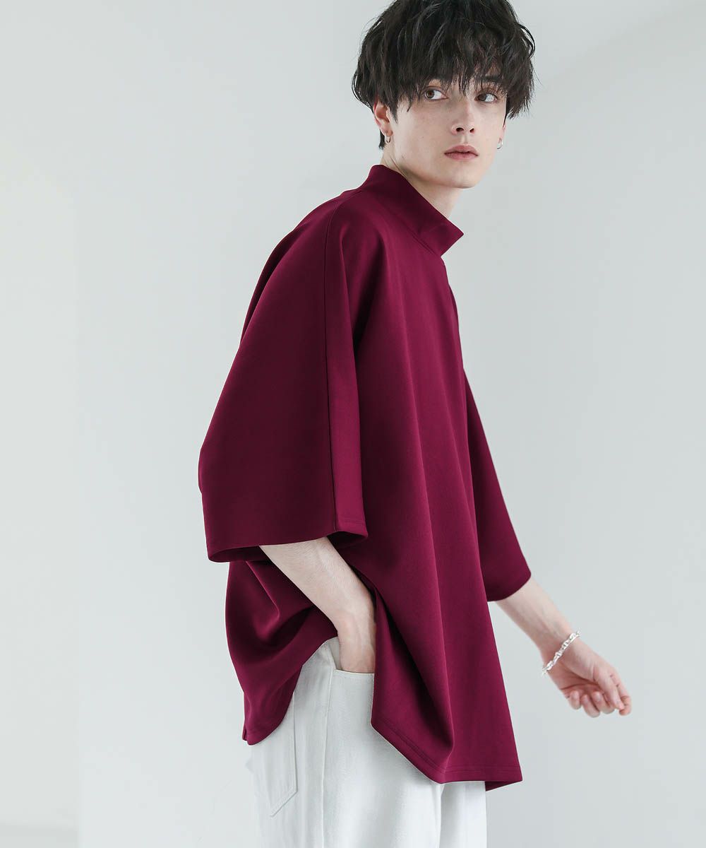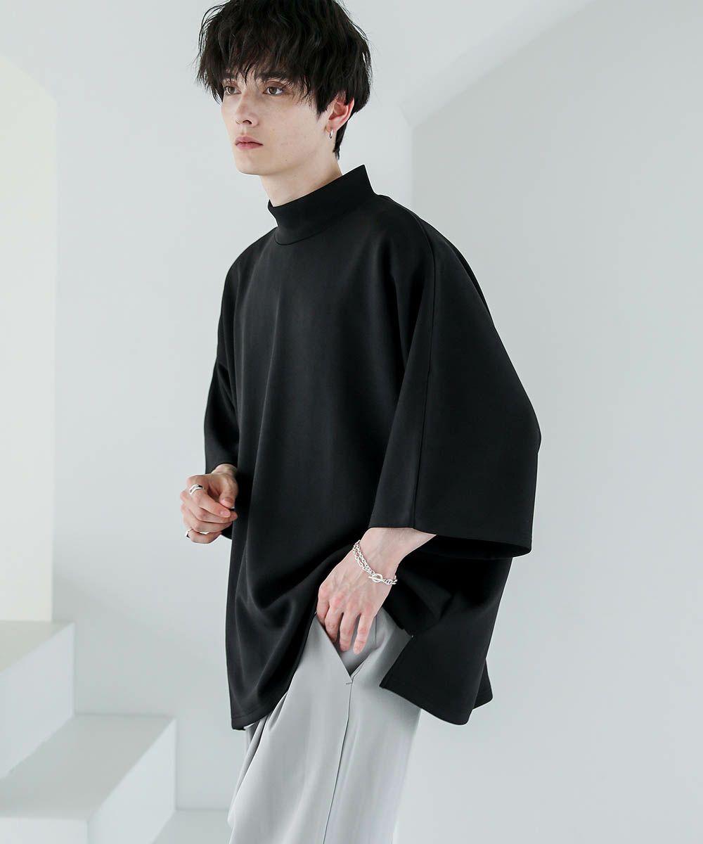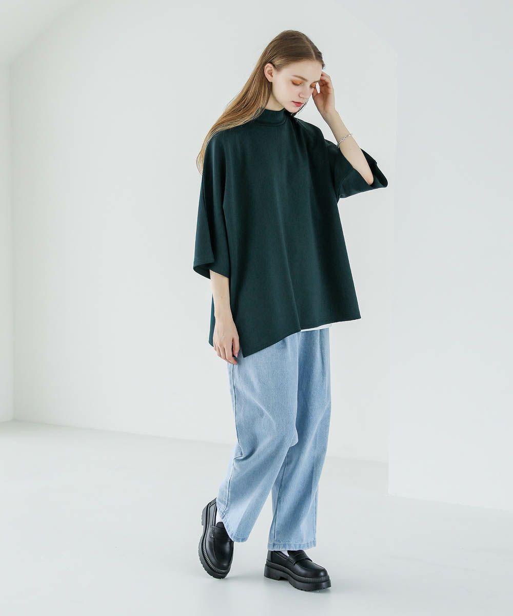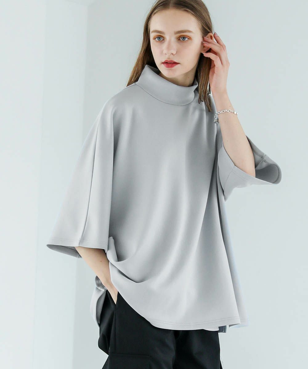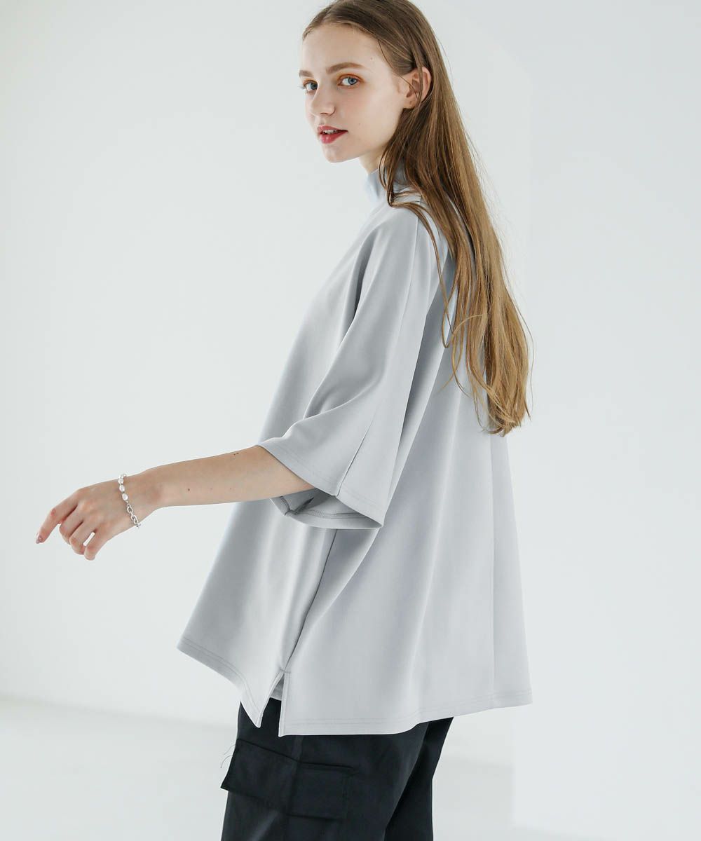 モックネック半袖ポンチドルマンプルオーバー