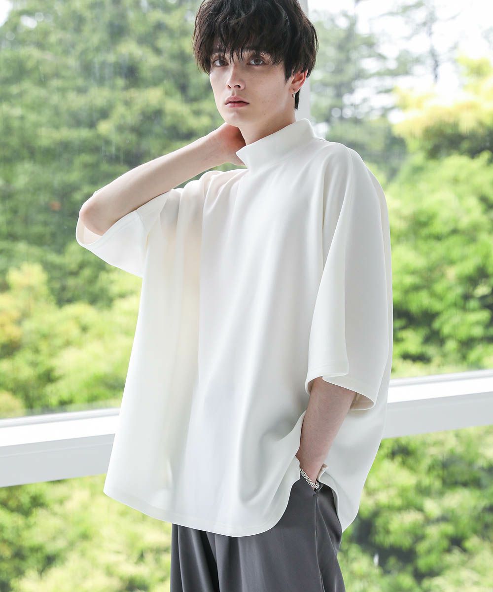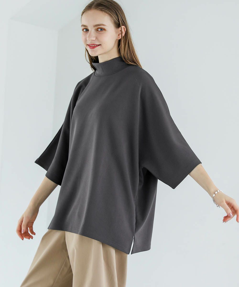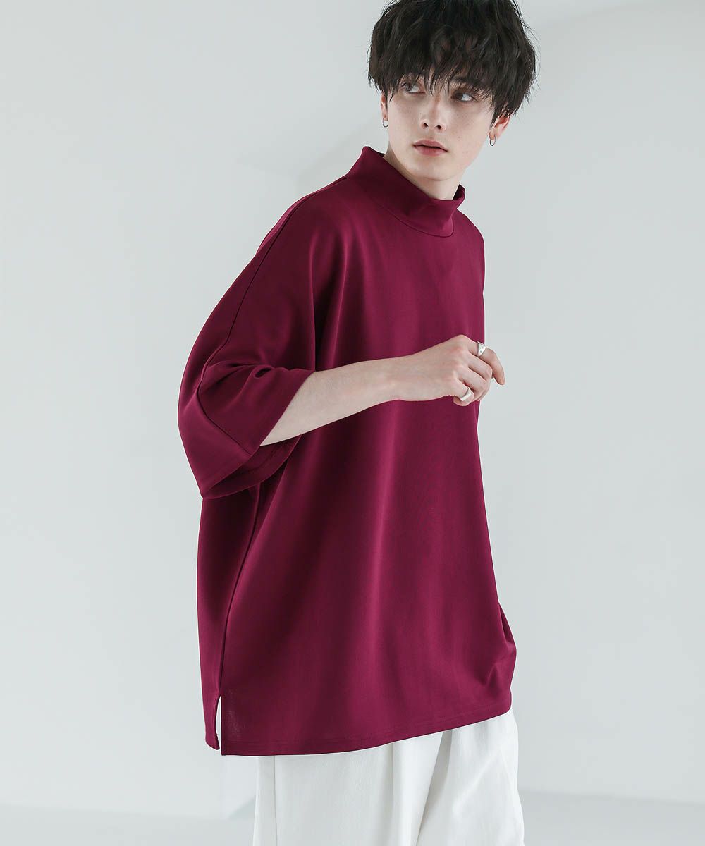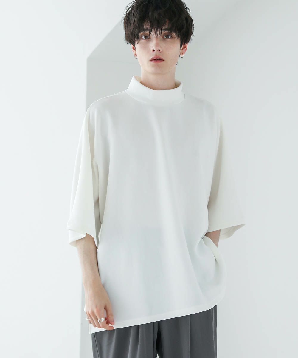 モックネック半袖ポンチドルマンプルオーバー