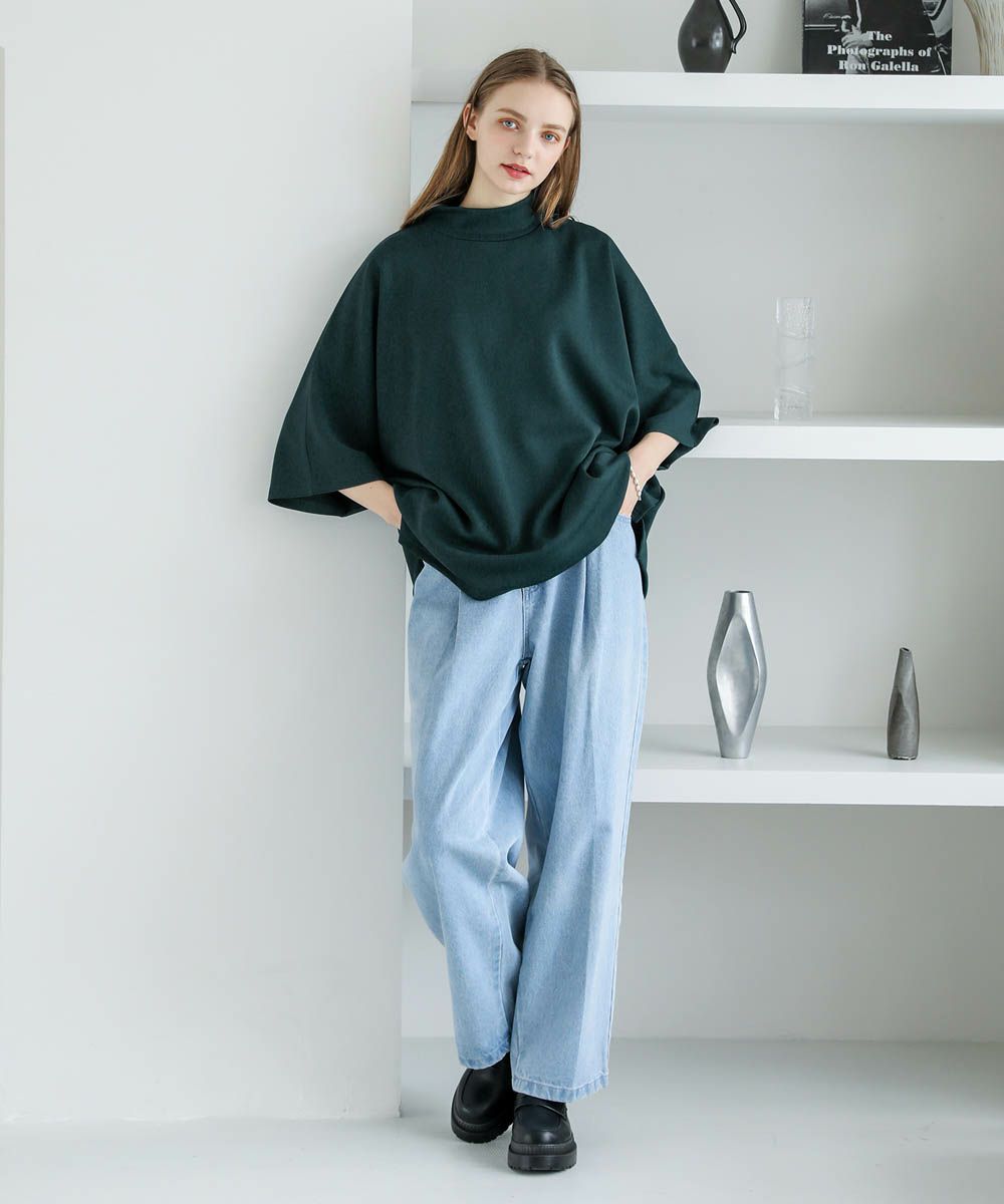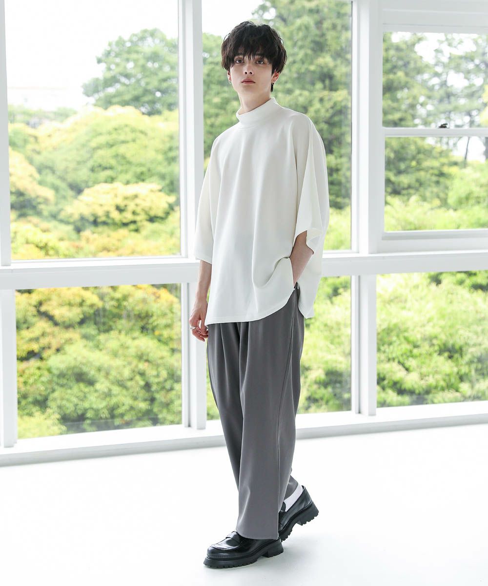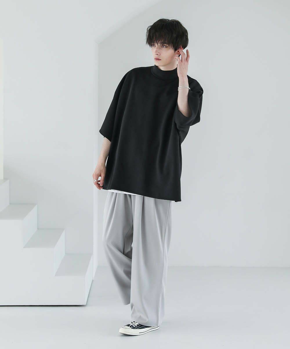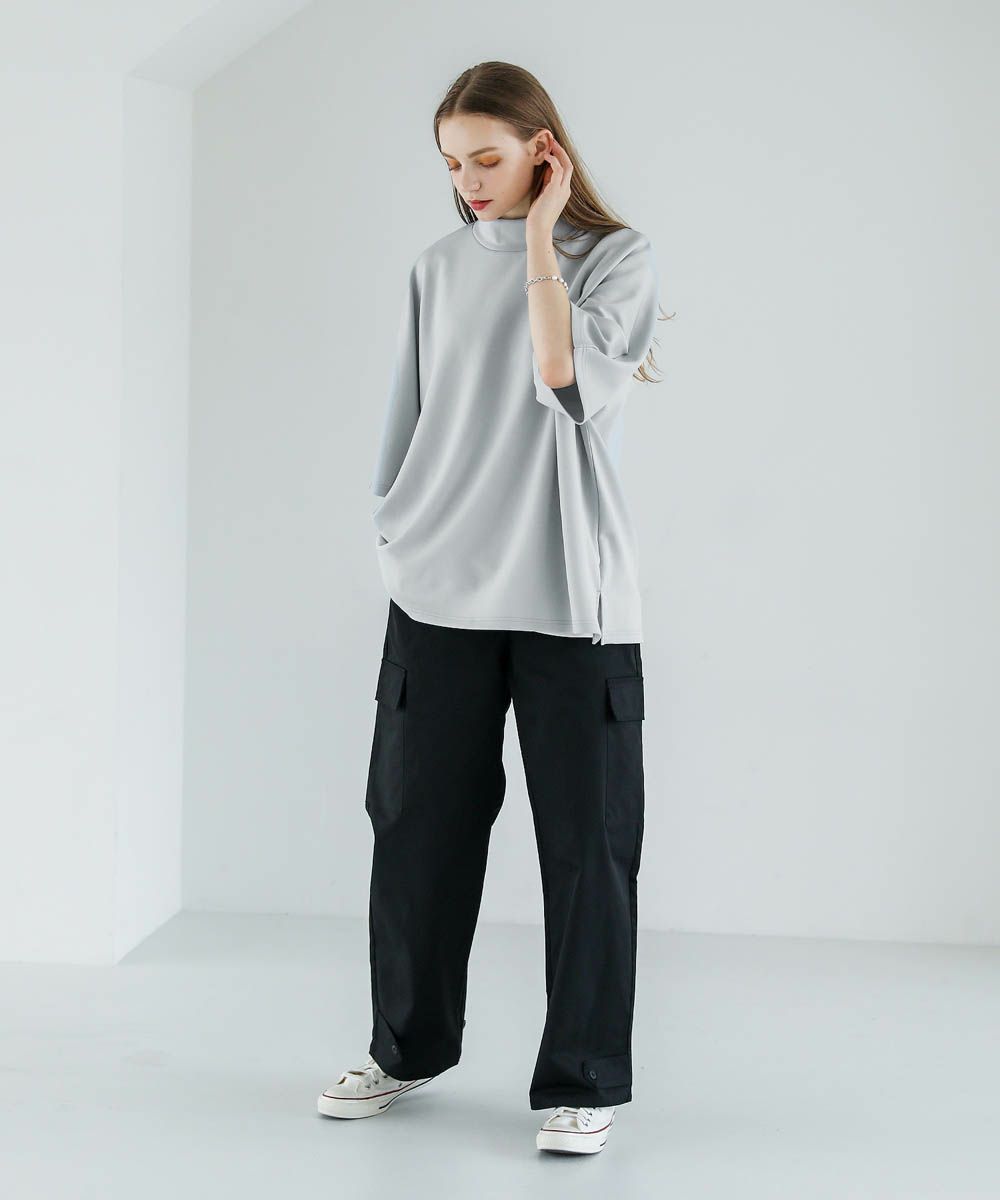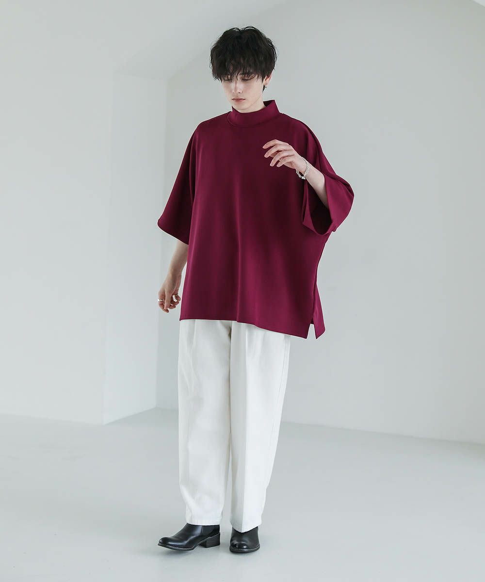 モックネック半袖ポンチドルマンプルオーバー
