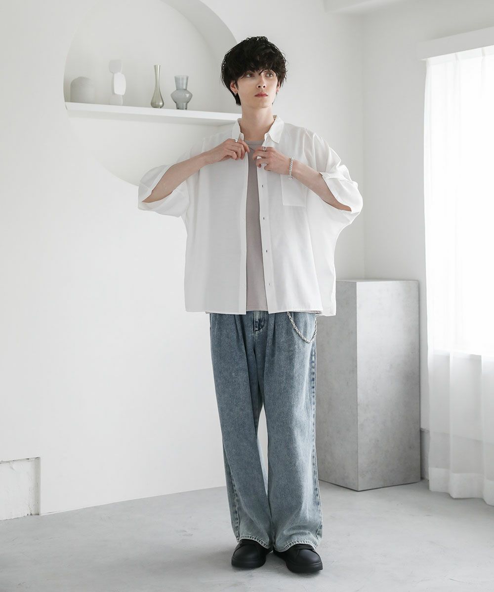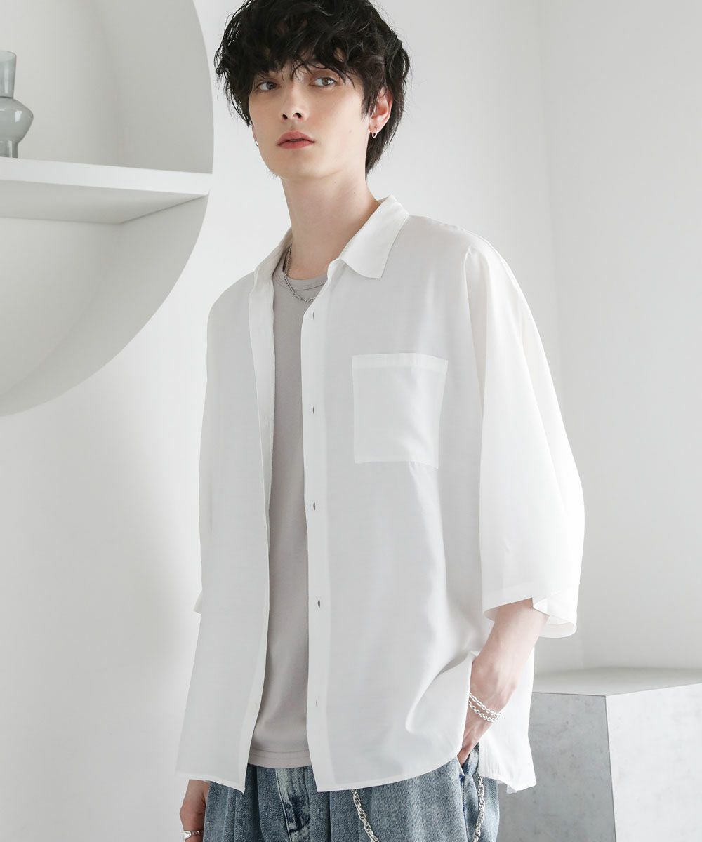 スタイリングに抜け感を漂わせるトレンドのシアーシャツ。程よい透け感なのでメンズも取り入れやすく、取り入れるだけで今年らしいスタイルに。ゆったりとしたオーバーサイズとドルマンスリーブがリラックスした雰囲気をプラス。動きの出る落ち感のある薄手の素材で、夏にぴったりの涼しく軽い着心地です。