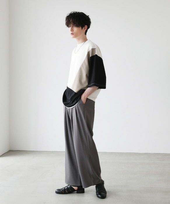 ゆったりとしたシルエットにとろみのあるダンボール生地で動くたびに品の良いシワが生まれ、シンプルなのにこなれ感のあるカットソースタイルが出来上がります。