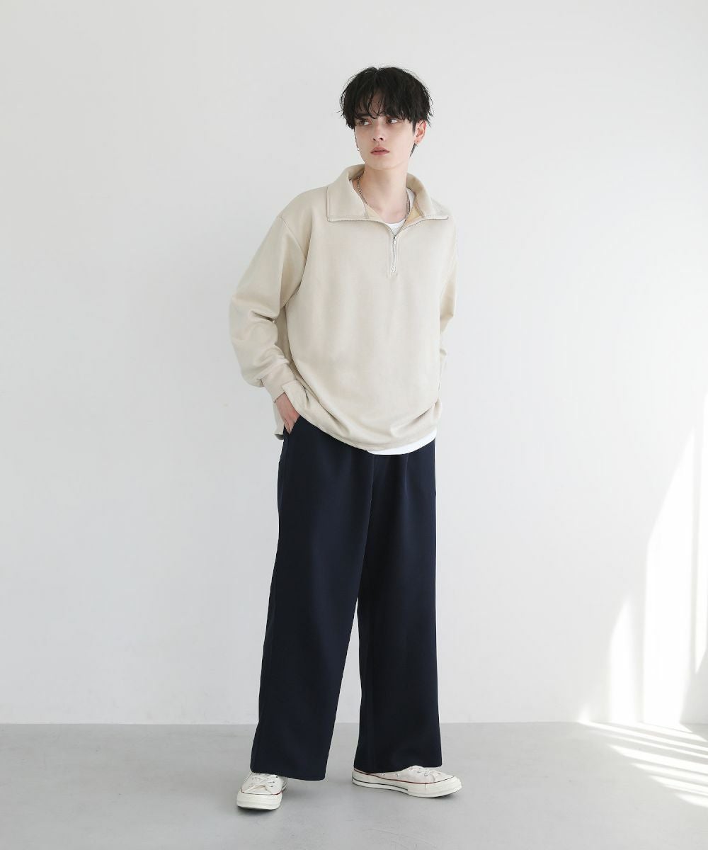 フェイクスウェード素材を採用したハーフジッププルオーバー。ゆったりとした絶妙なルーズさで、着こなすだけでトレンド感のあるコーデが完成します。襟が通常よりも大きいビッグカラーデザインでジップを上げると首元が冷えず、防寒対策に。裾の両サイドにはスリットが入っており、抜け感を出してくれます。着回ししやすいブラック、ブラウン、チャコール、ブルー、ライトベージュ、ワインの6色展開。