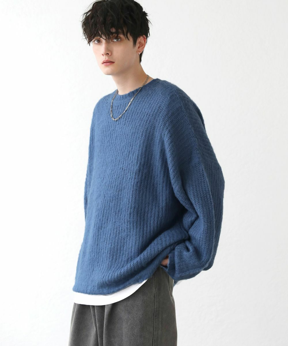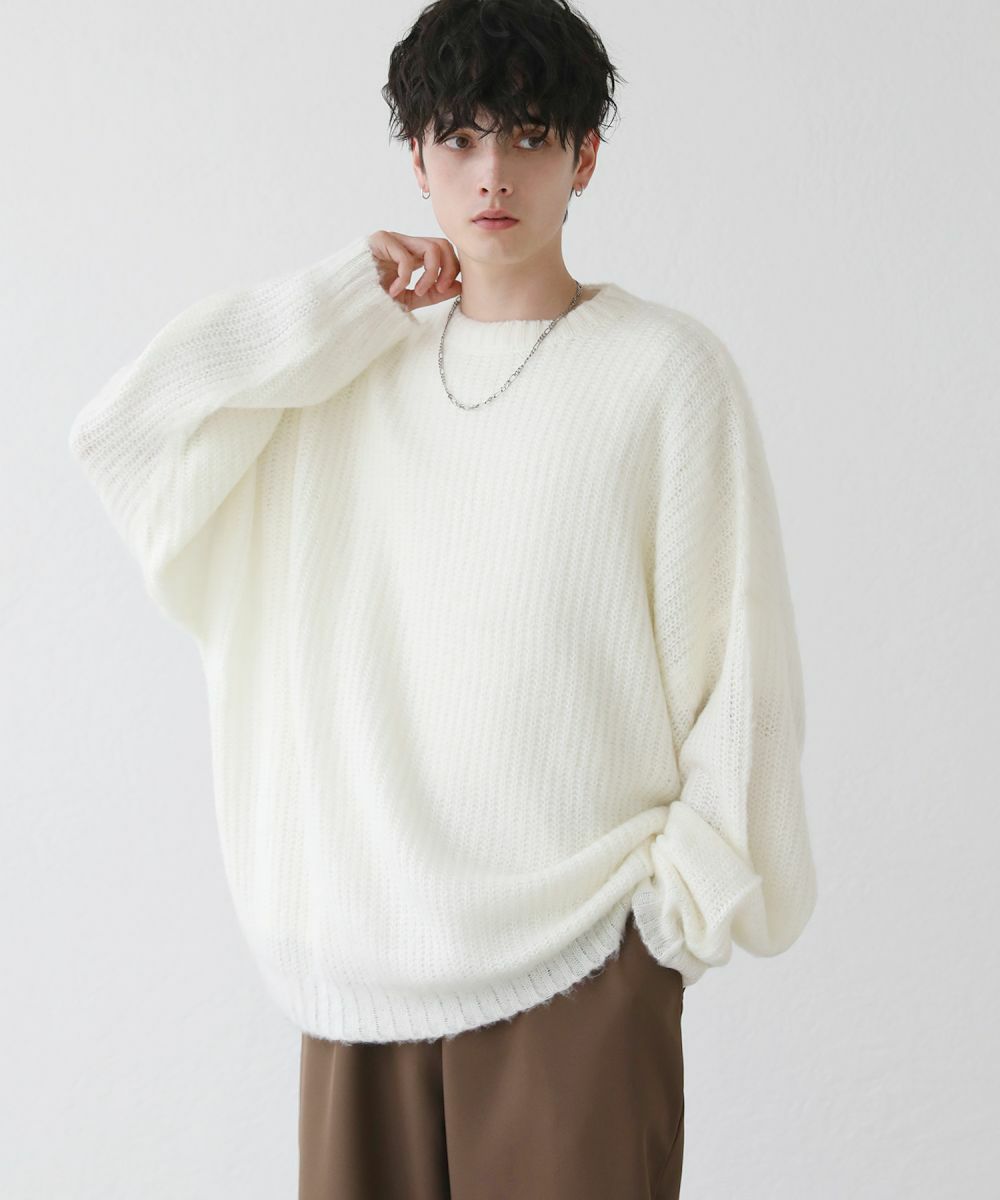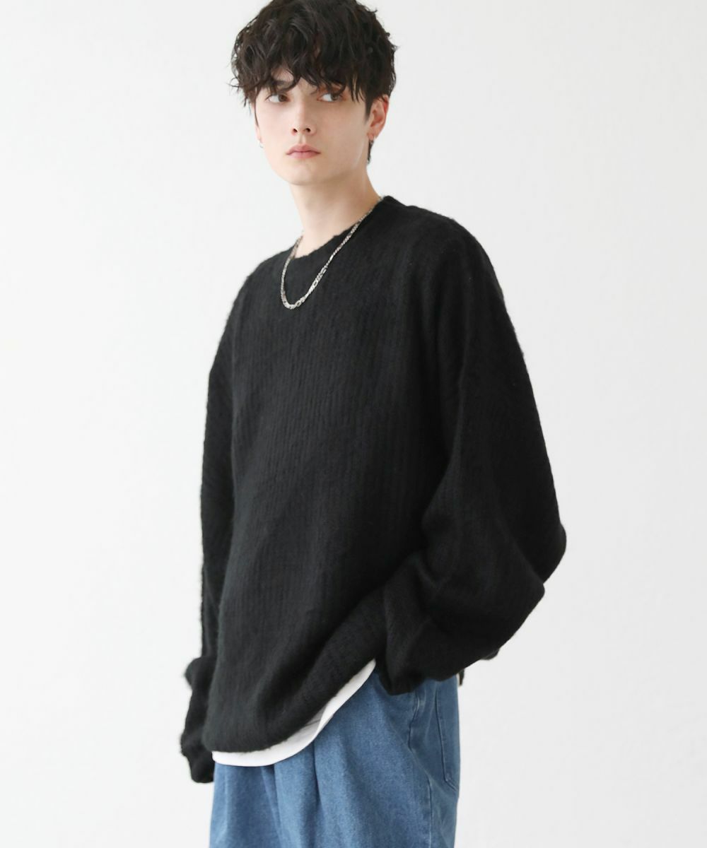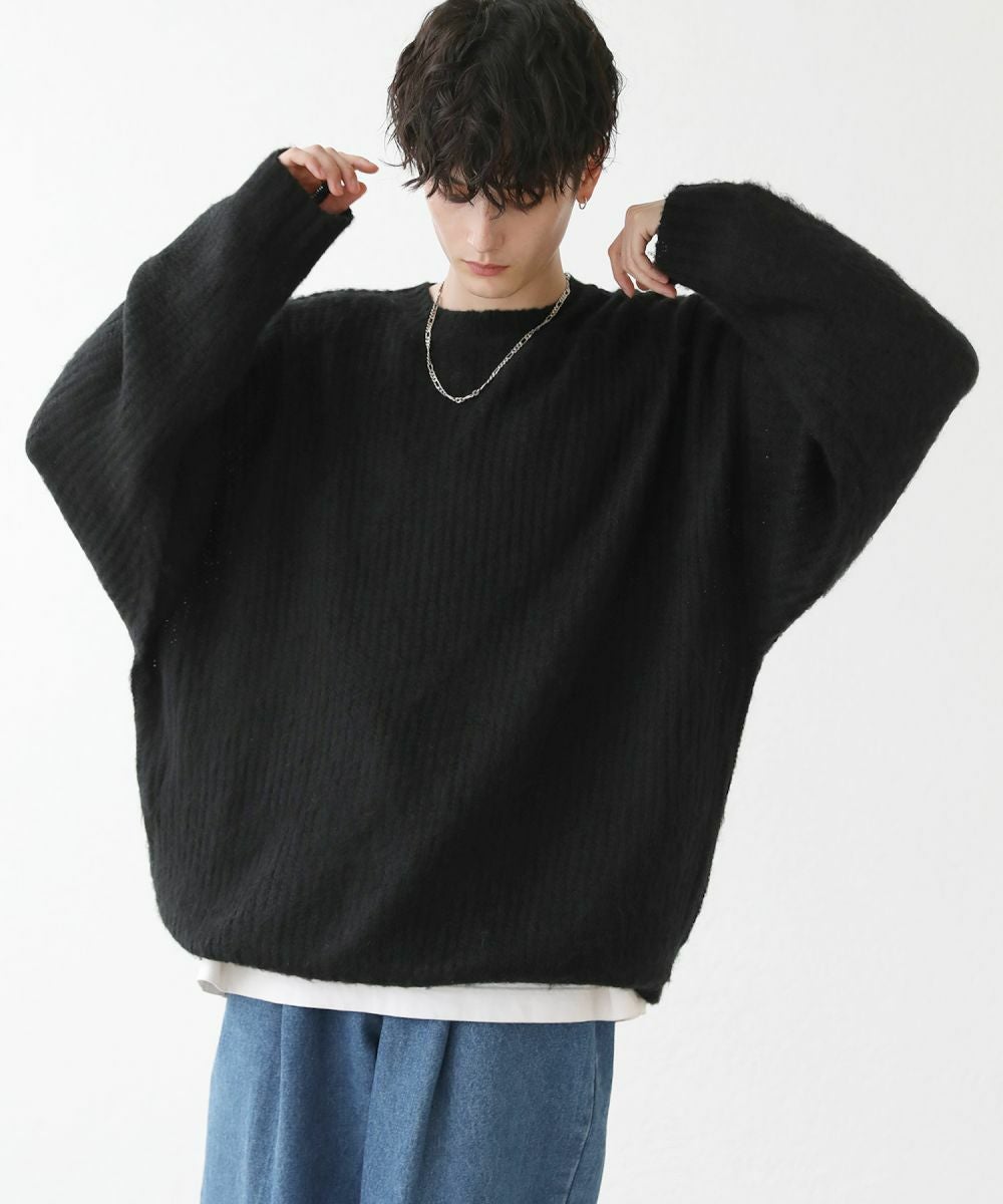 モヘアライクオーバーサイズドルマン風クルーネックニット長袖