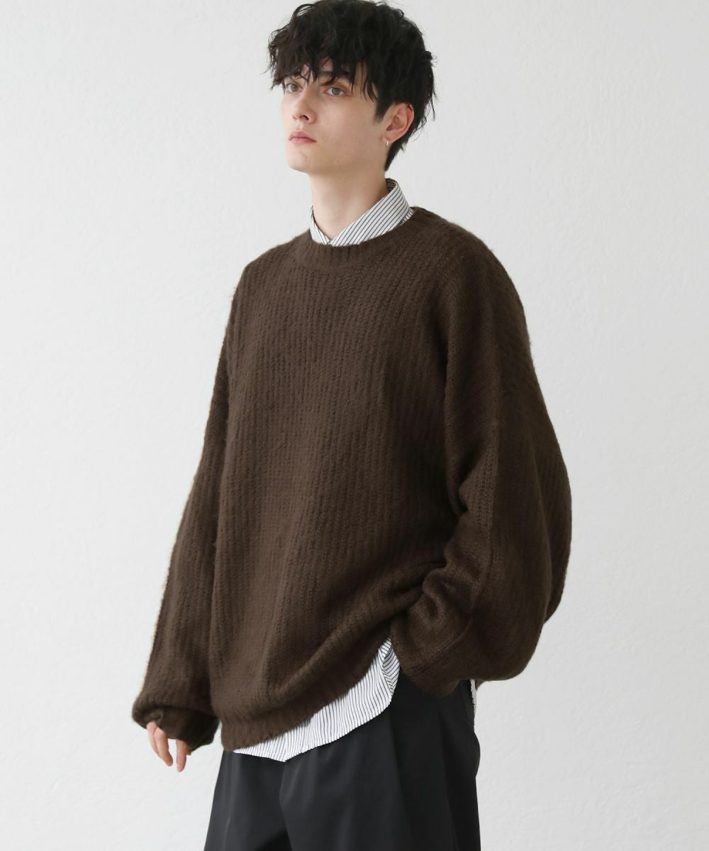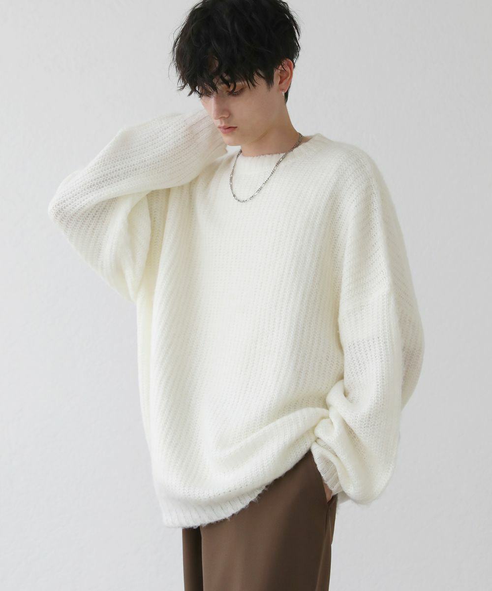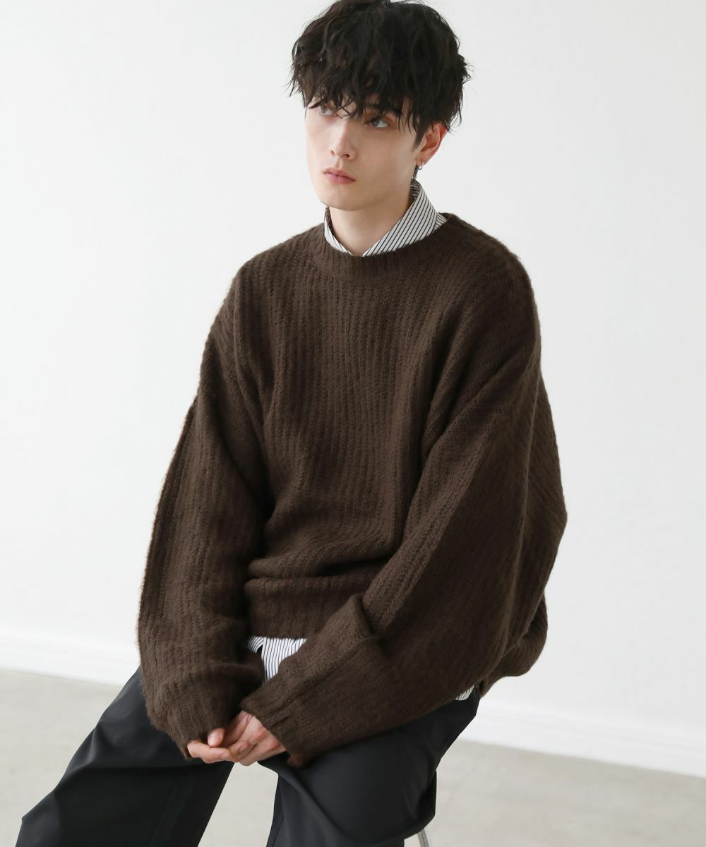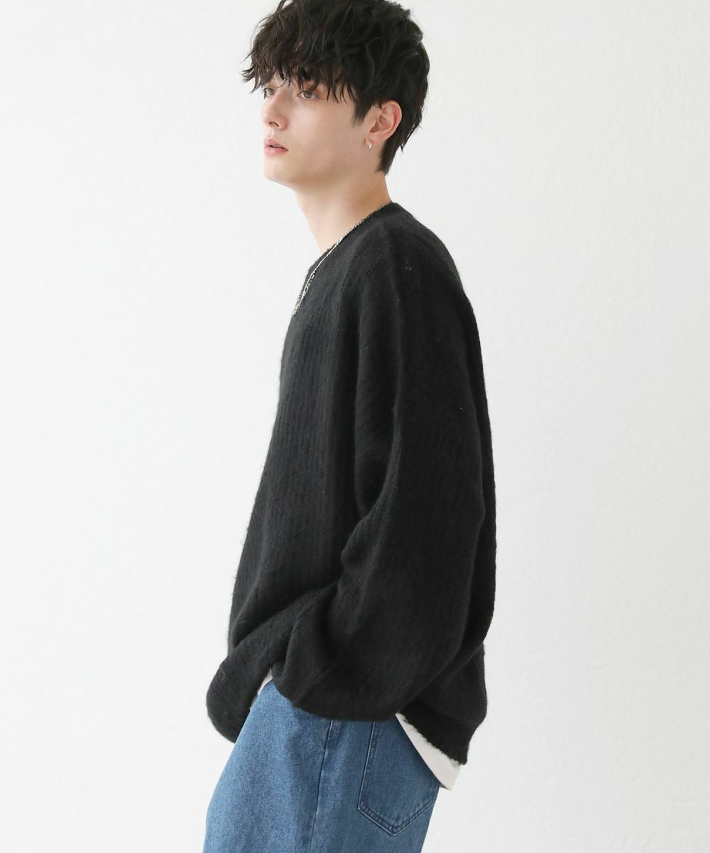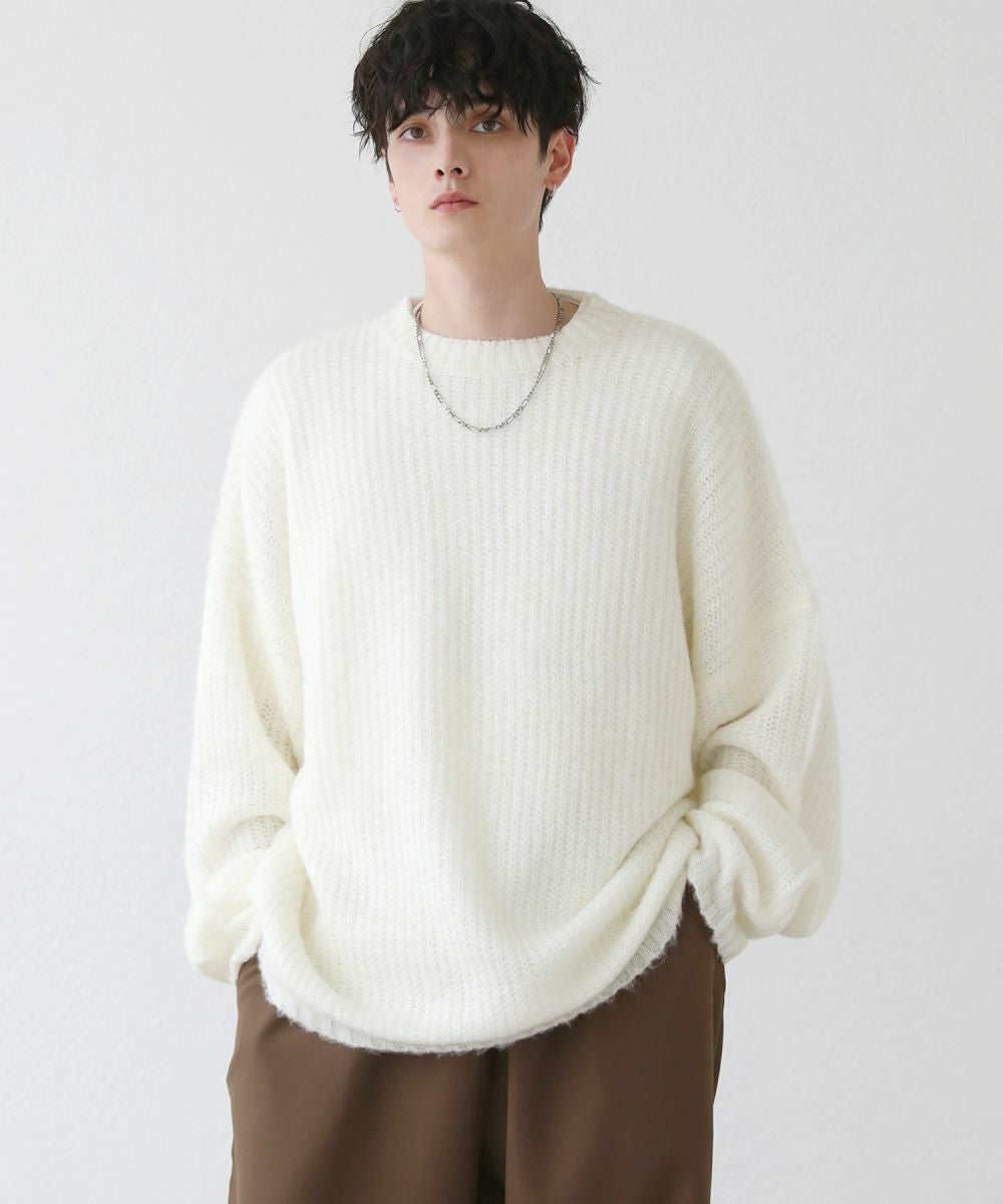 モヘアライクオーバーサイズドルマン風クルーネックニット長袖