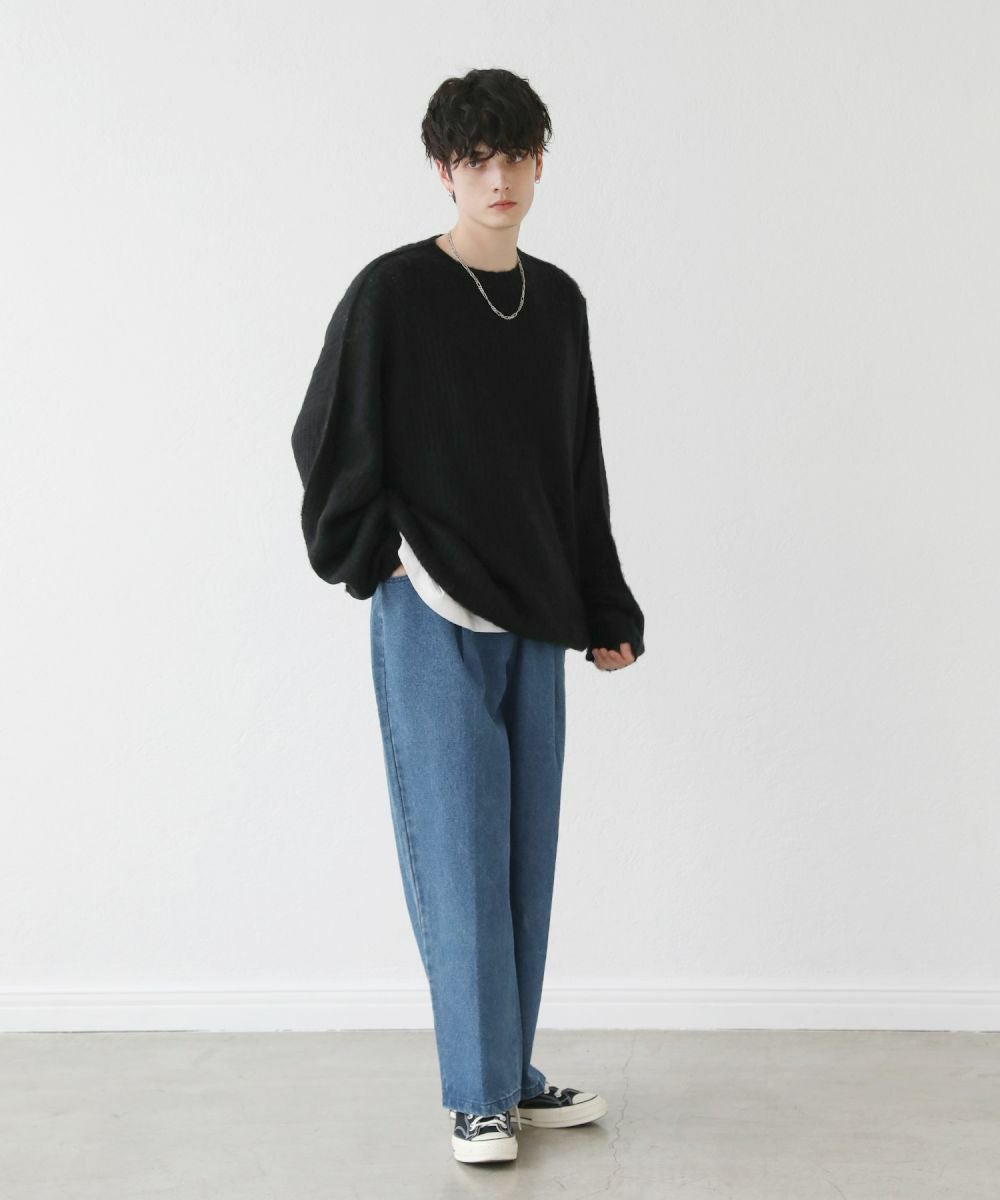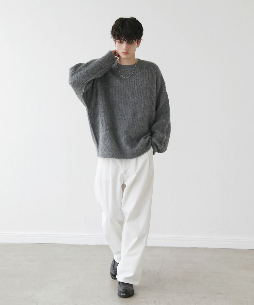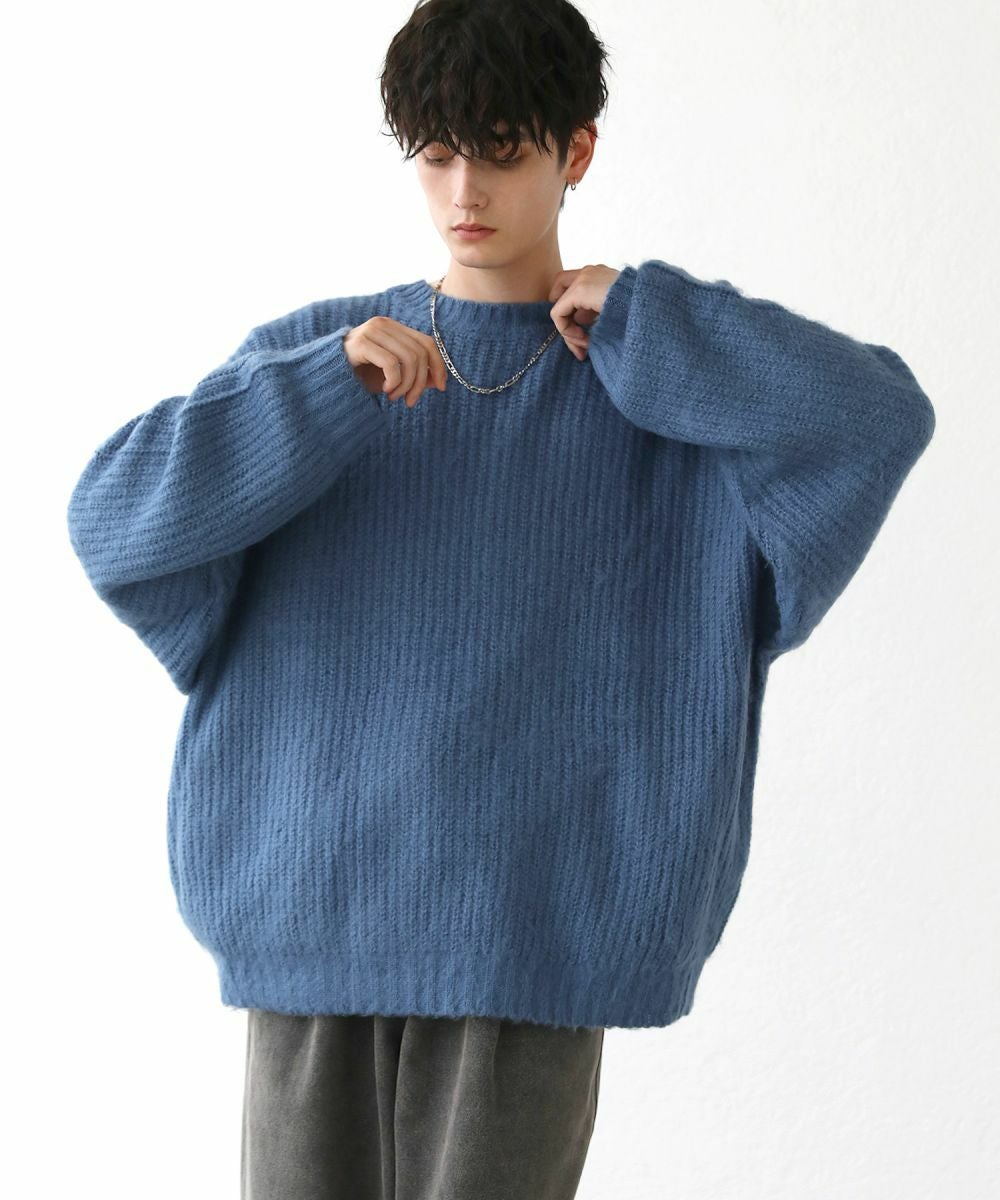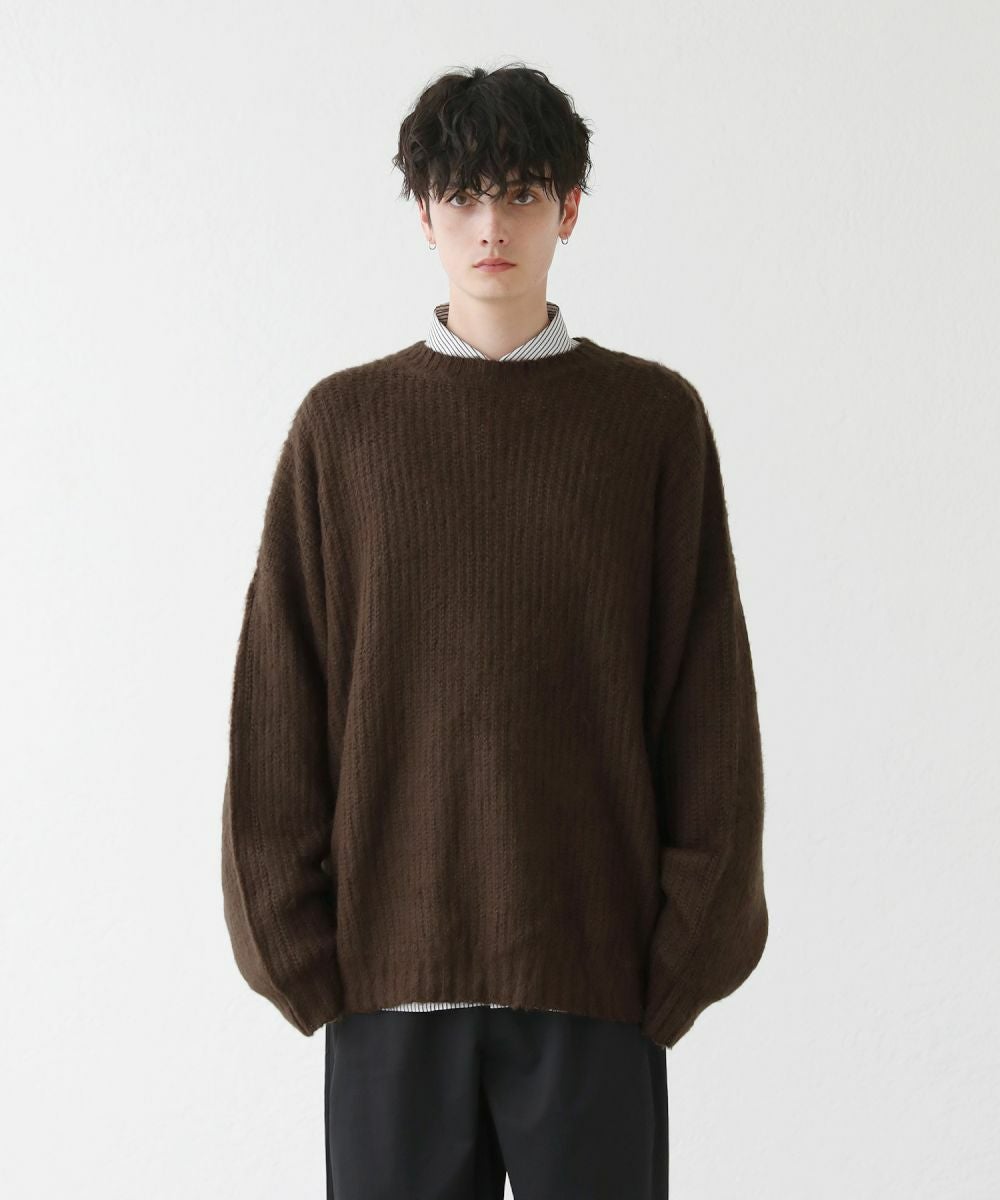 モヘアライクオーバーサイズドルマン風クルーネックニット長袖