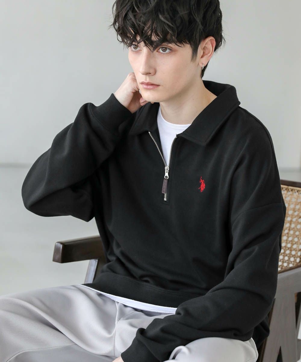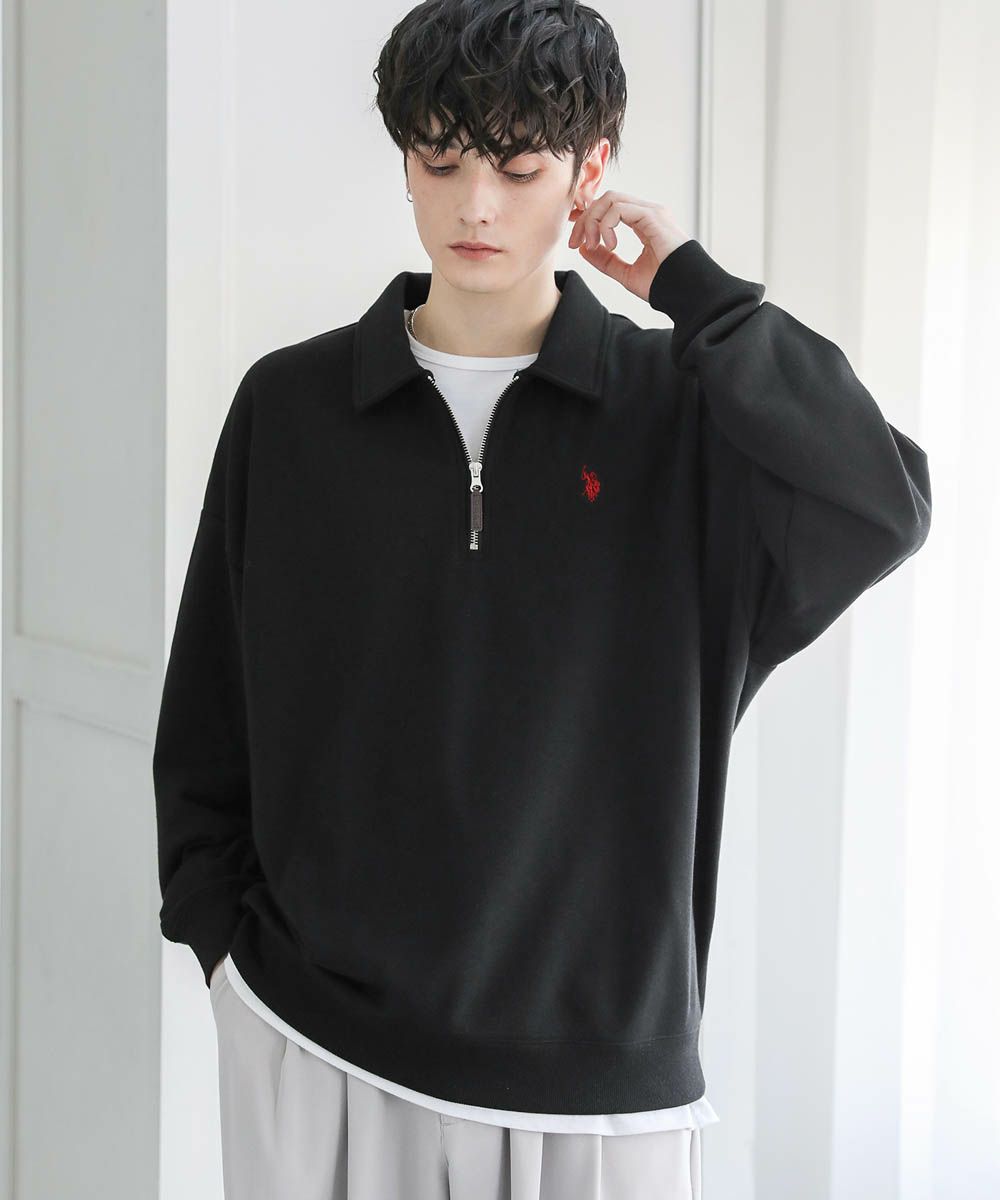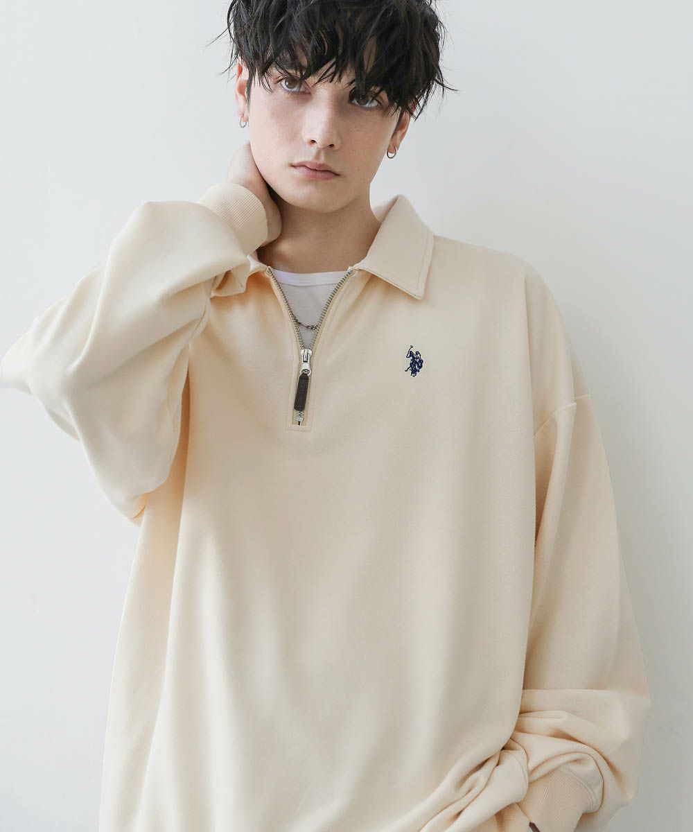 U.S. POLO ASSN. 別注 ワンポイントロゴ刺繍ポロビッグシルエットハーフジップスウェット