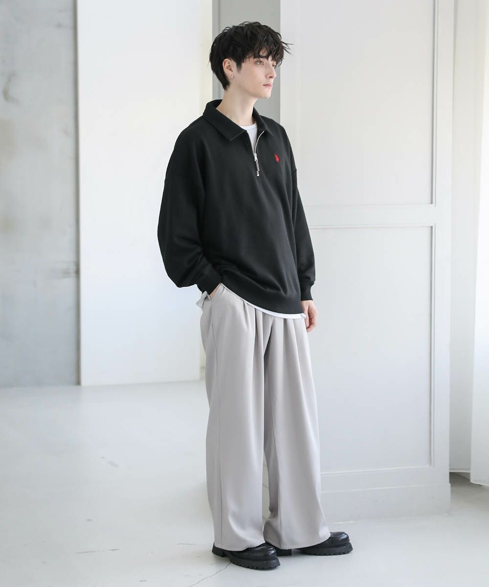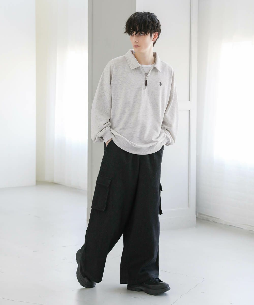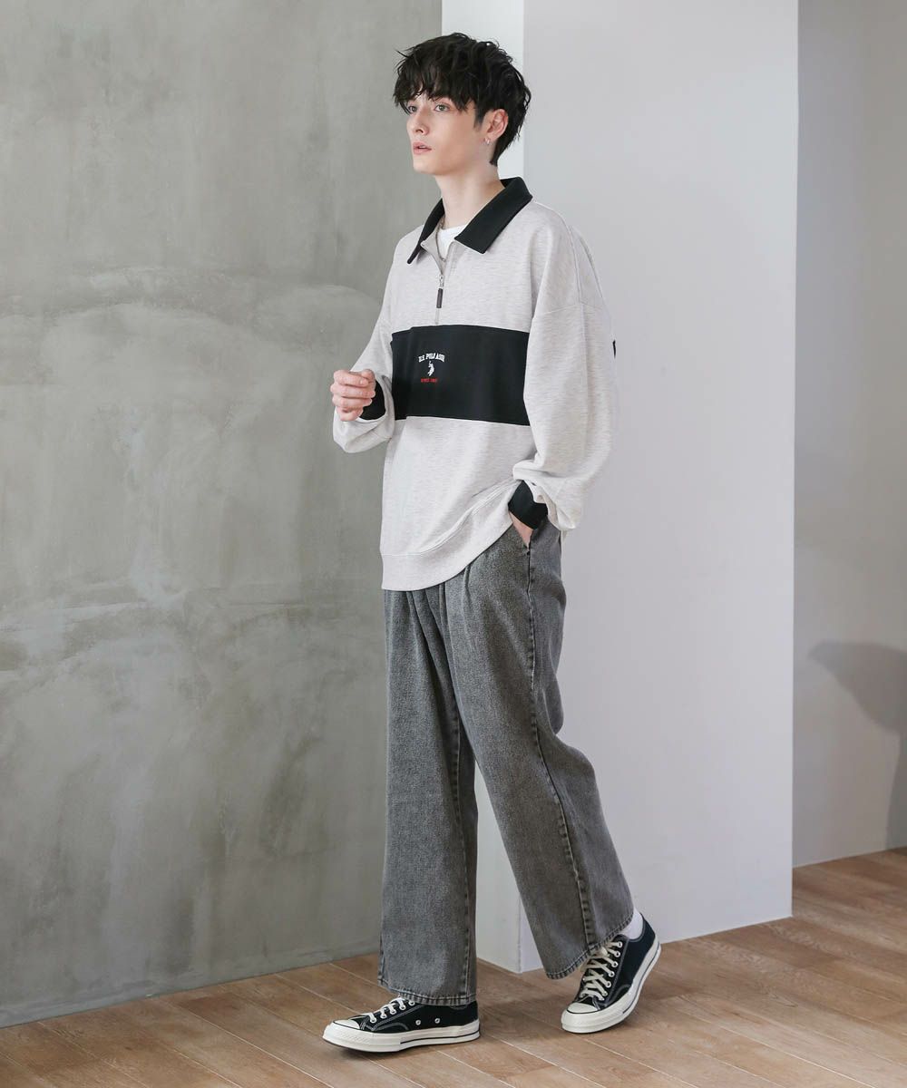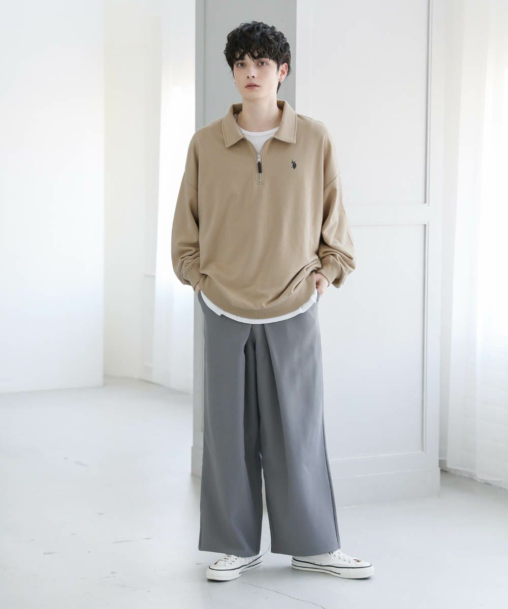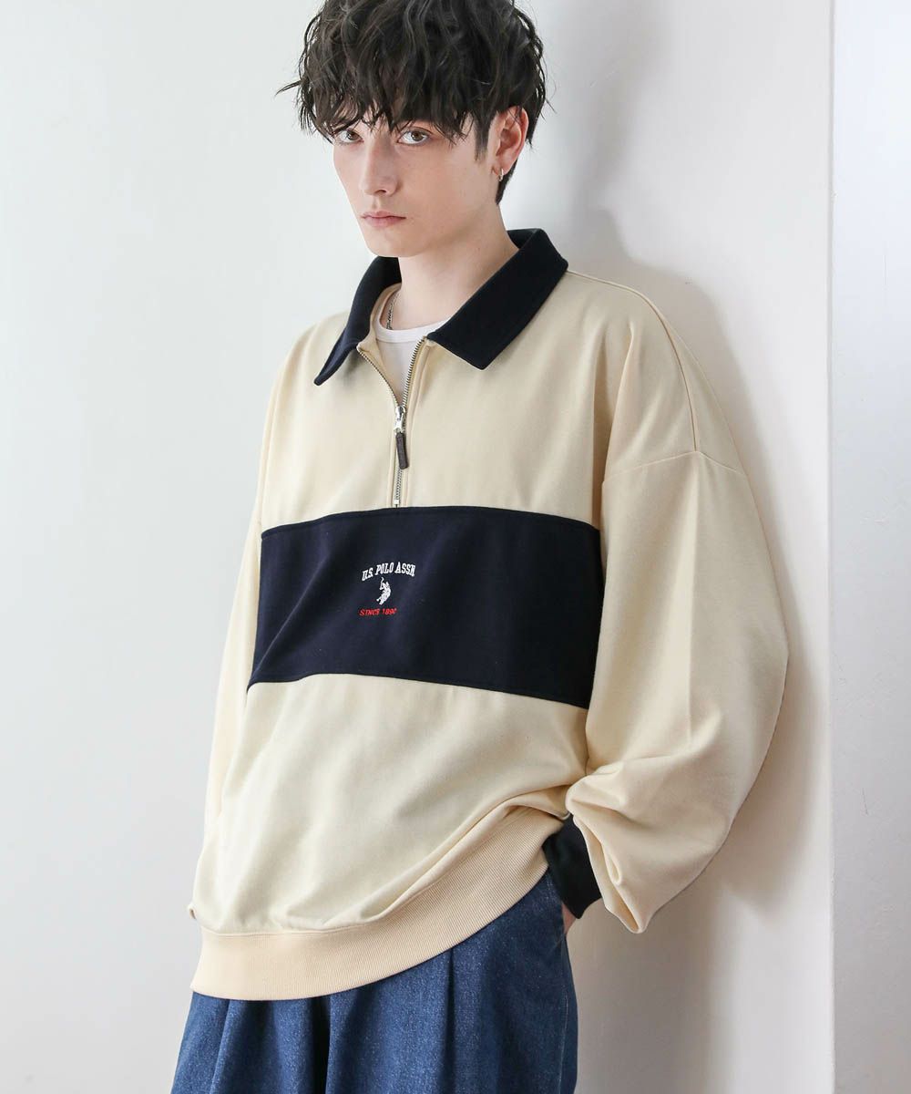 3. U.S. POLO ASSN. 別注 ワンポイントロゴ刺繍ポロビッグシルエットハーフジップスウェット