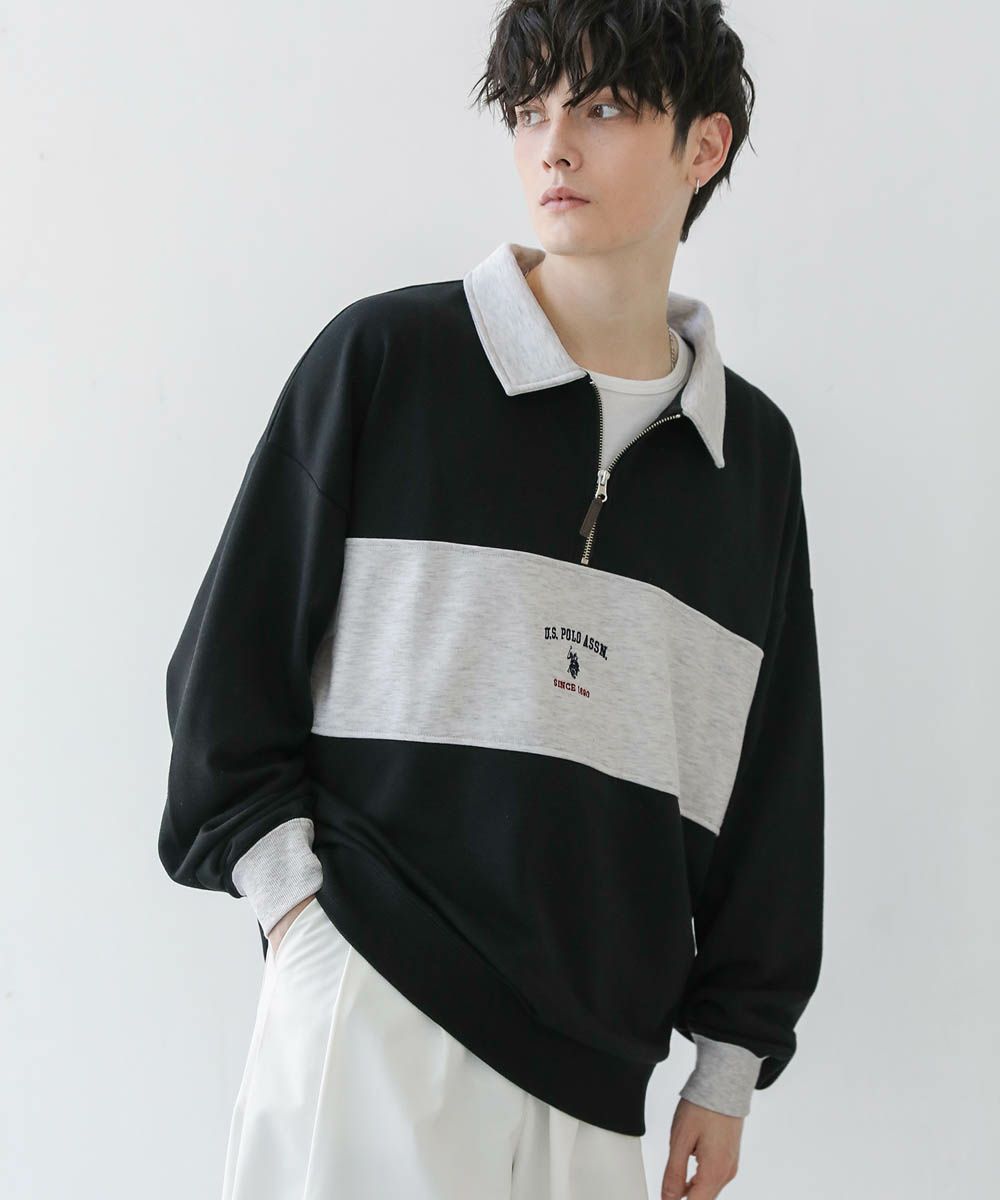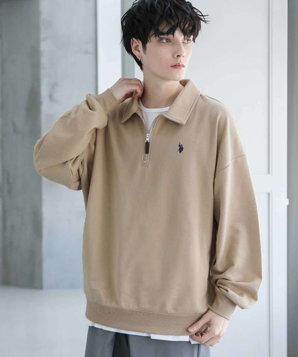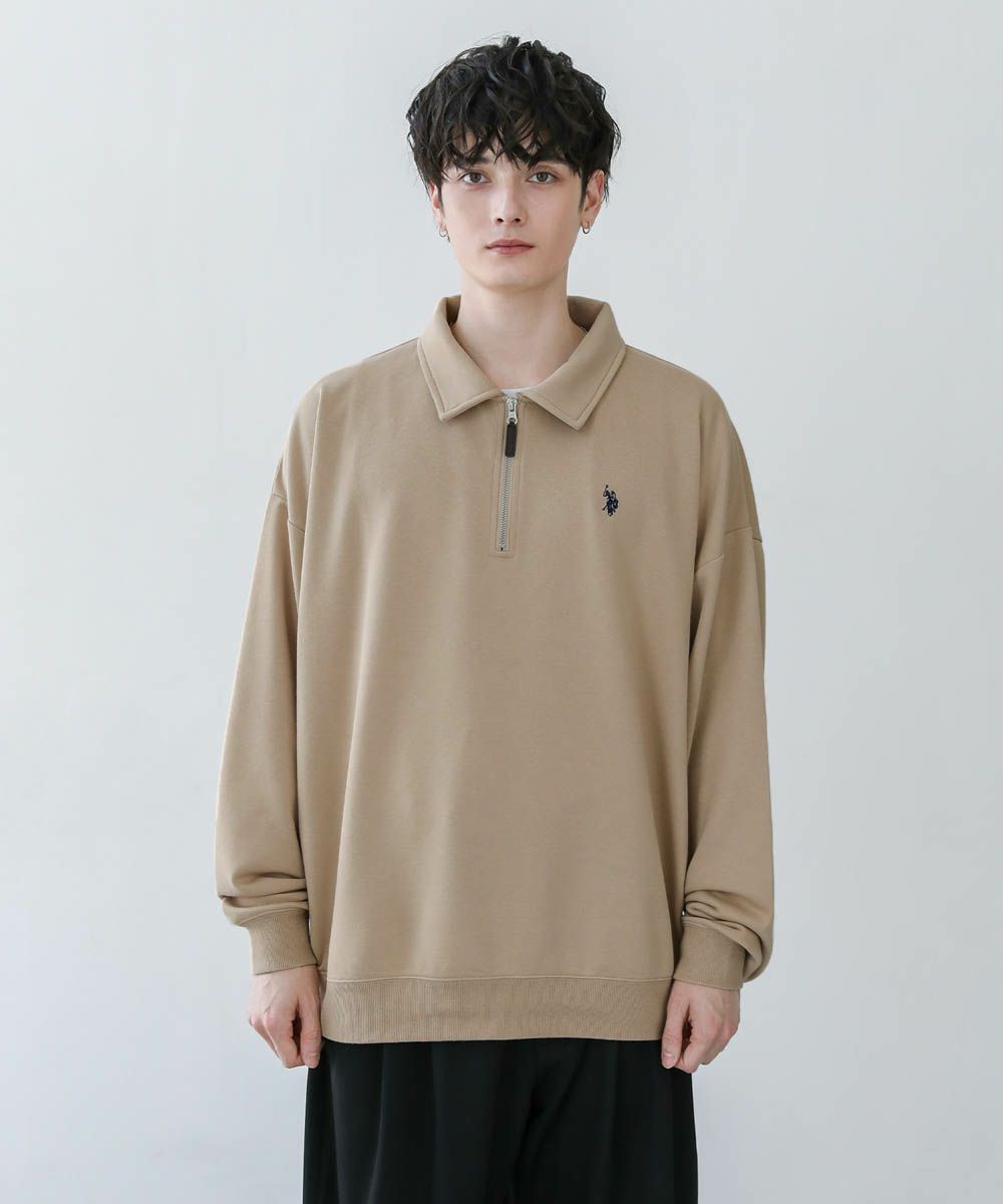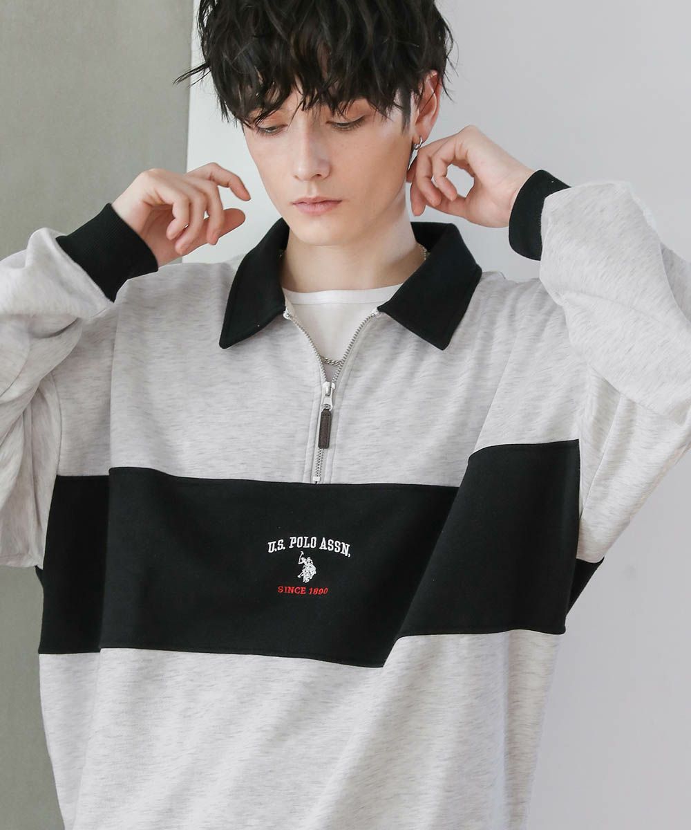 U.S. POLO ASSN. U.S. POLO ASSN. 別注 ワンポイントロゴ刺繍ポロビッグシルエットハーフジップスウェット