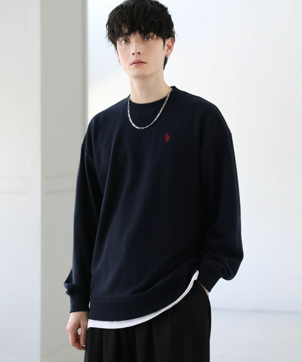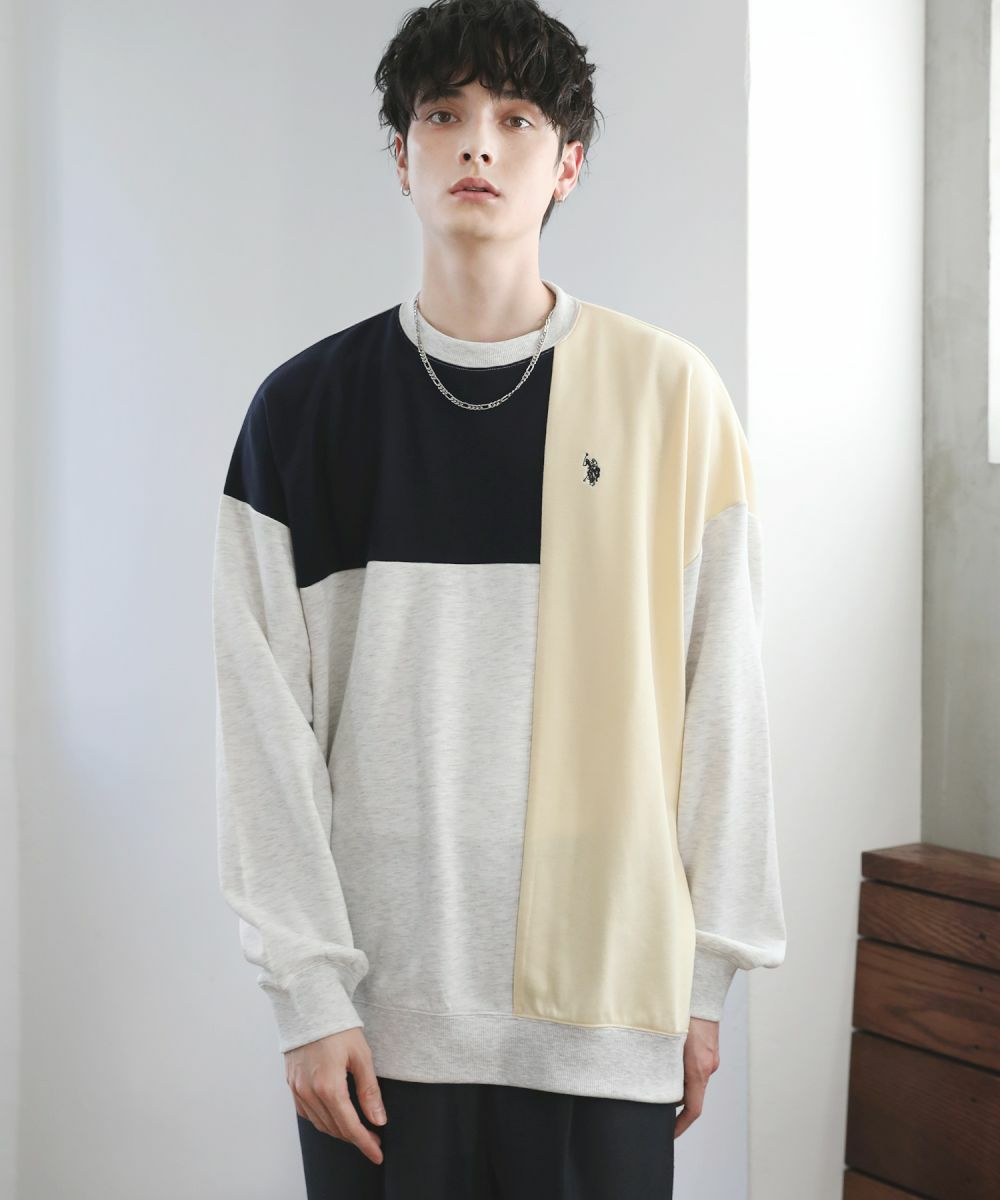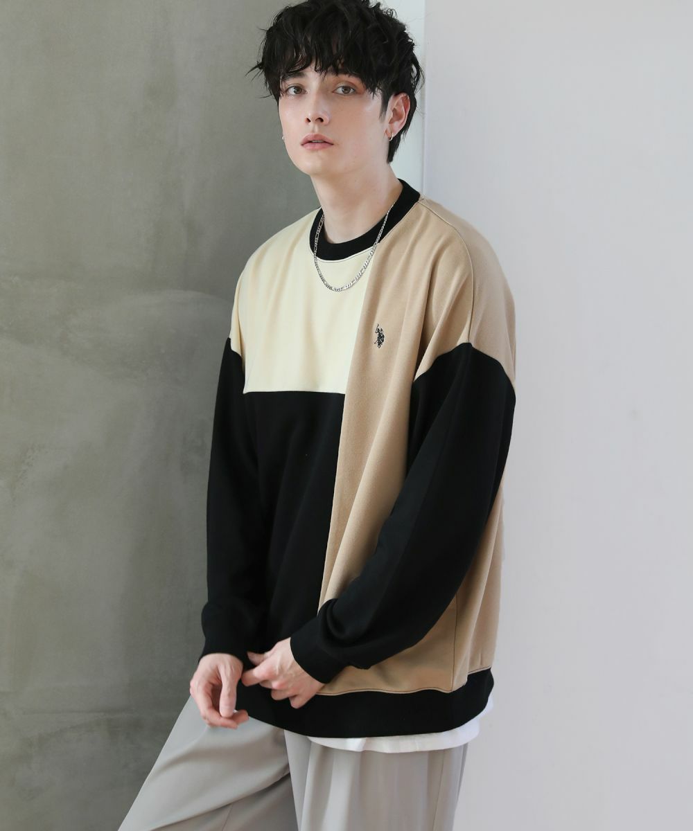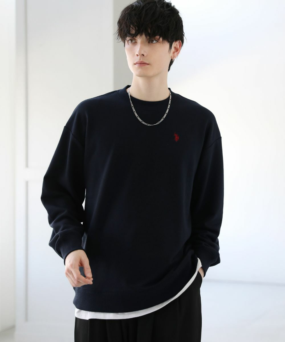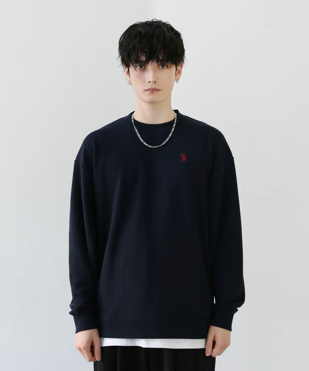 U.S. POLO ASSN. 別注 裏毛ワンポイントロゴクルーネックスウェット 配色