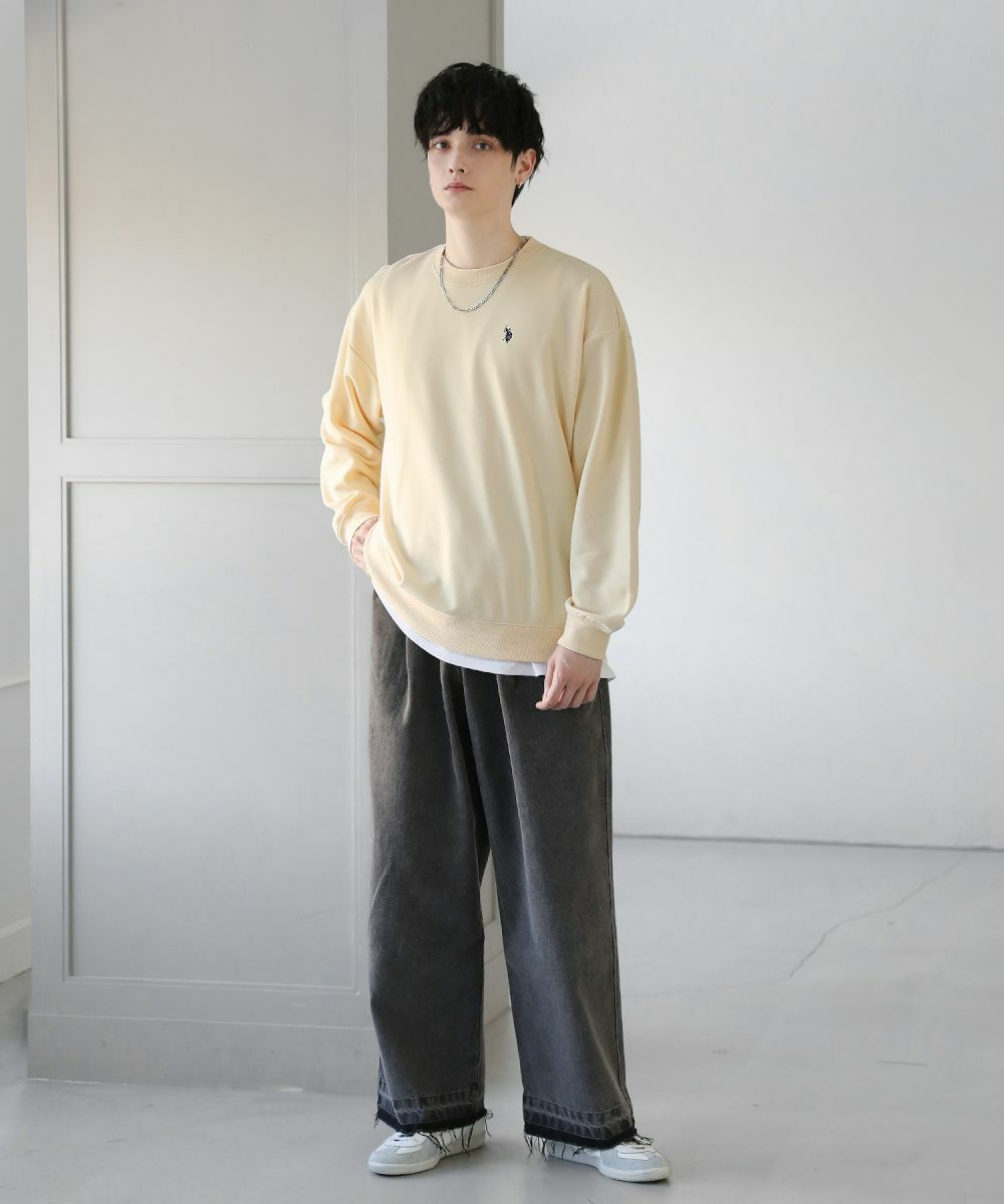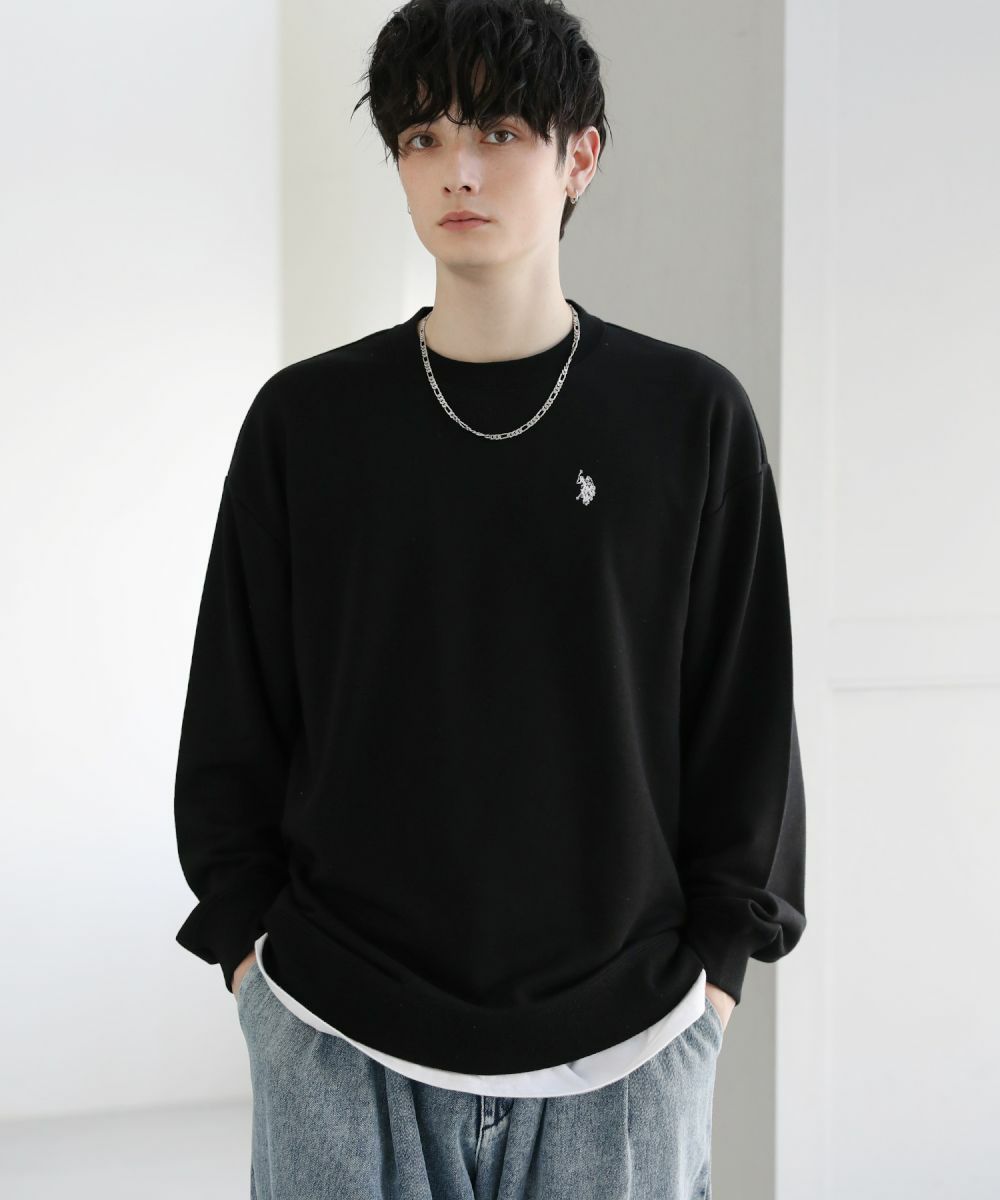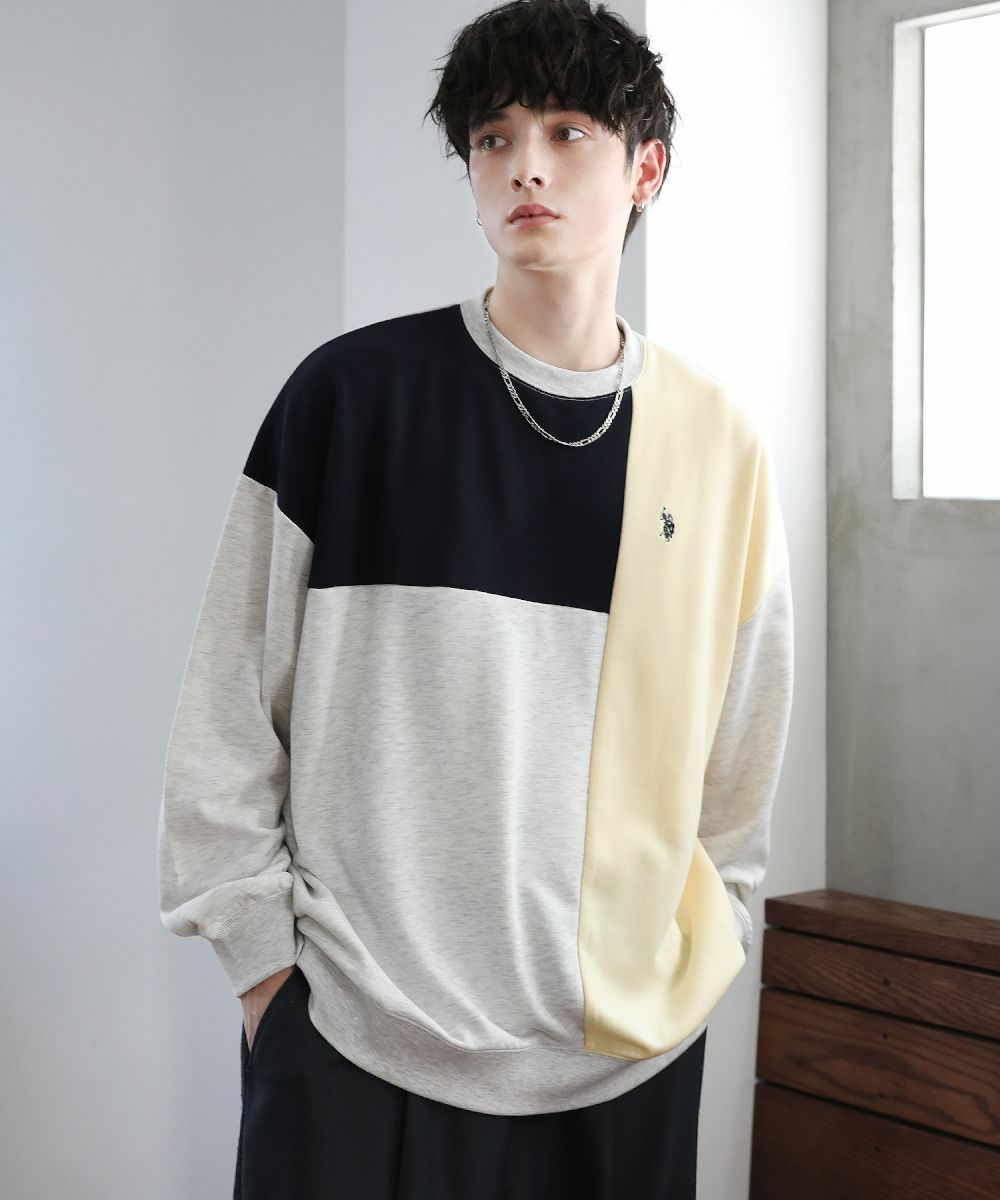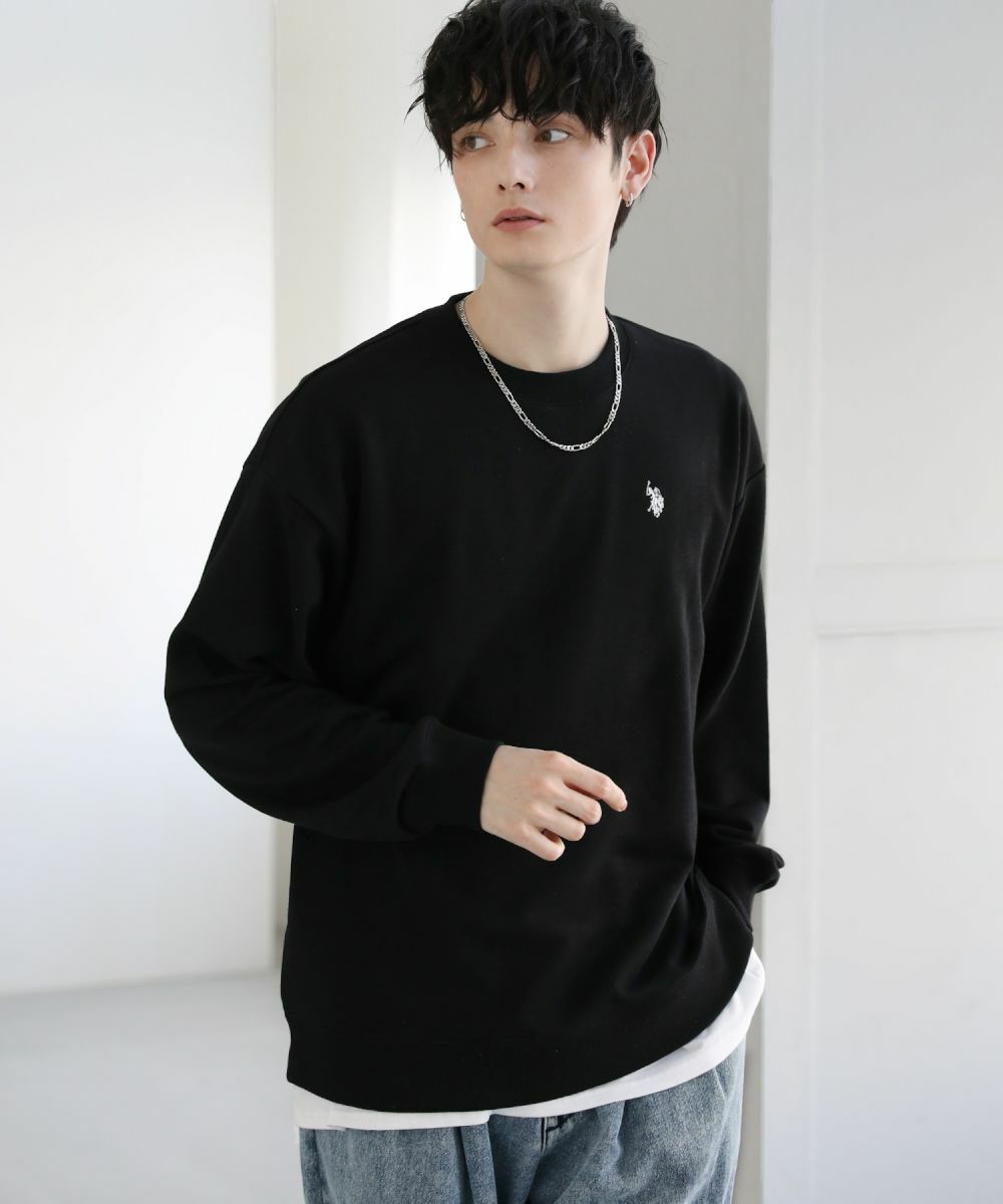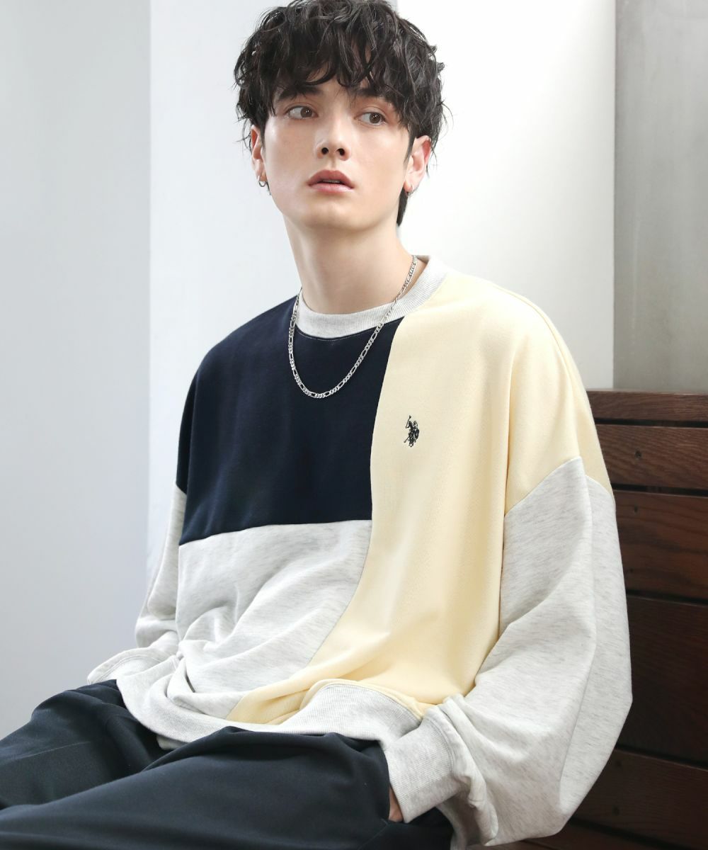 U.S. POLO ASSN. 別注 裏毛ワンポイントロゴクルーネックスウェット 配色