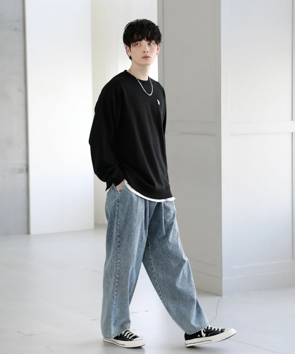 1枚での着用はもちろん、インナーにシャツやカットソーを合わせたレイヤードの着こなしもおすすめです。デニムパンツやワイドパンツなど、合わせるボトムを選ばずお使いいただけます。