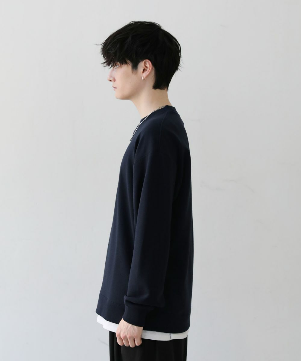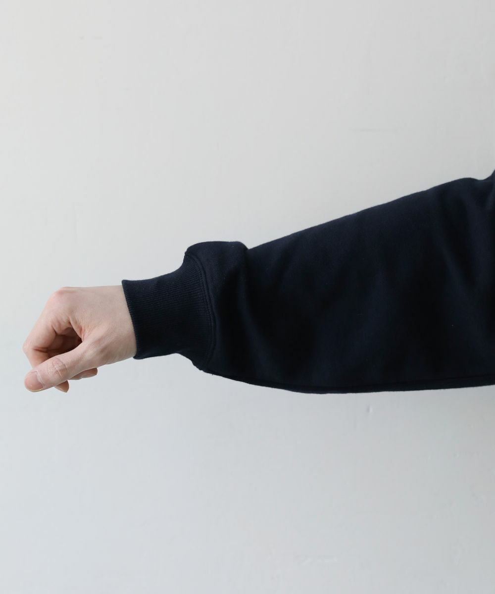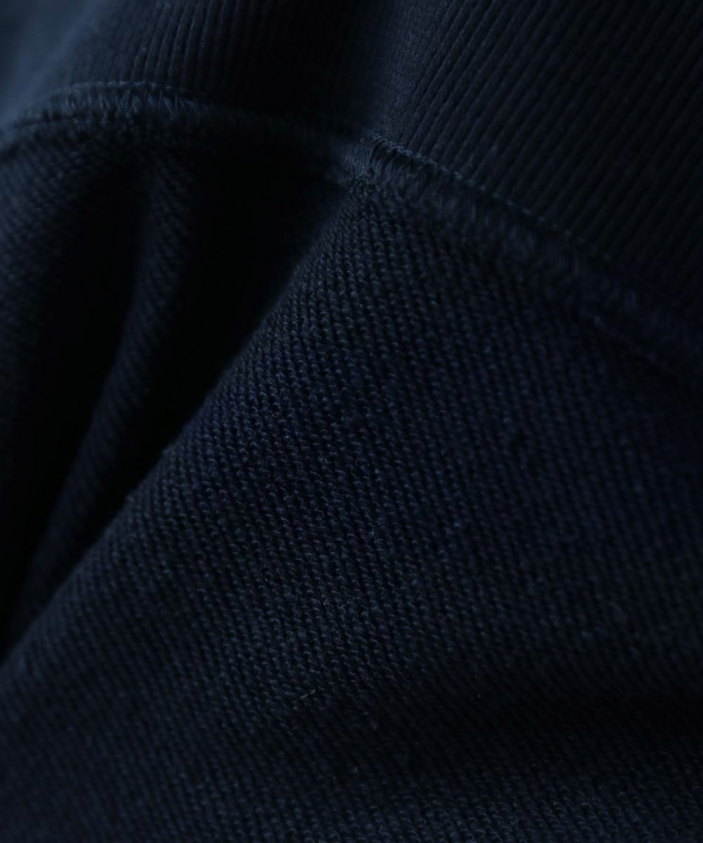 綿とポリエステルを混紡した軽い着心地の裏毛スウェットを使用しています。柔らかい肌触りで、肌馴染みの良い快適な着心地です。デイリーユースはもちろんルームウェアにも最適です。