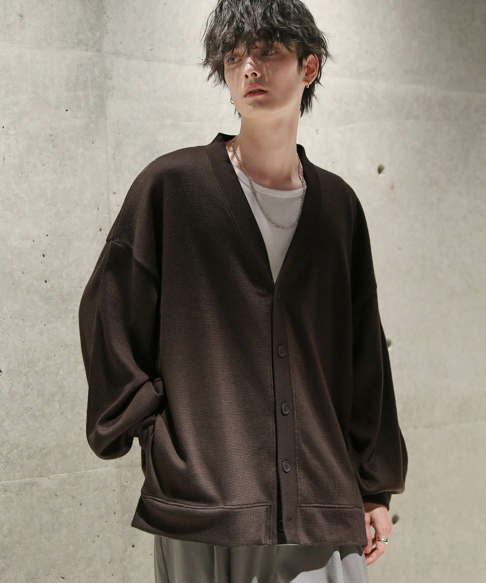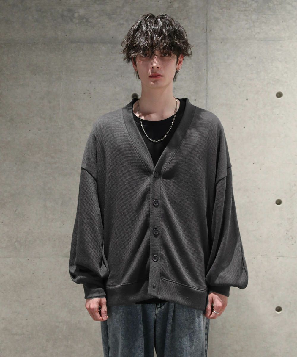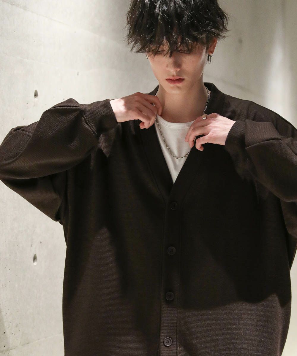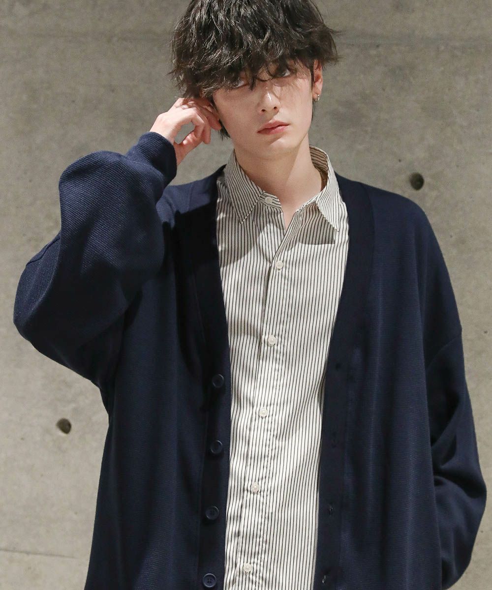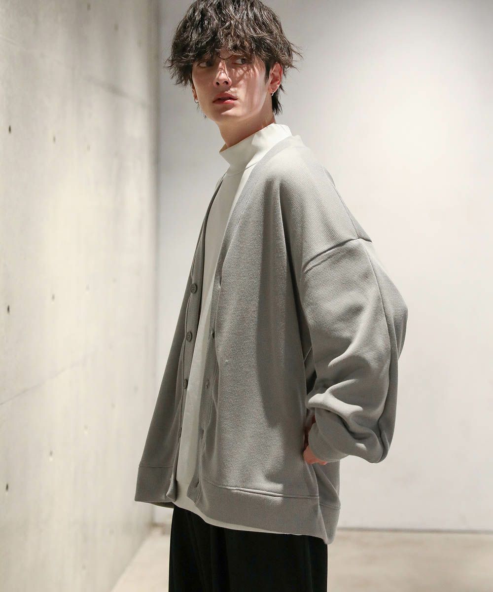 落ち感とドレープ感が醸し出すこなれた雰囲気が魅力のカーディガン。ハイゲージで編んだミラノリブを使用ししており、生地表面の微光沢が上品な印象をプラスします。ゆったりとした身幅とドロップショルダーに、たまり袖がアクセントになった1着。また、顔周りをスッキリと見せるVネックを採用。インナーとのレイヤードも楽しめ、着回し力の高いアイテムです。
