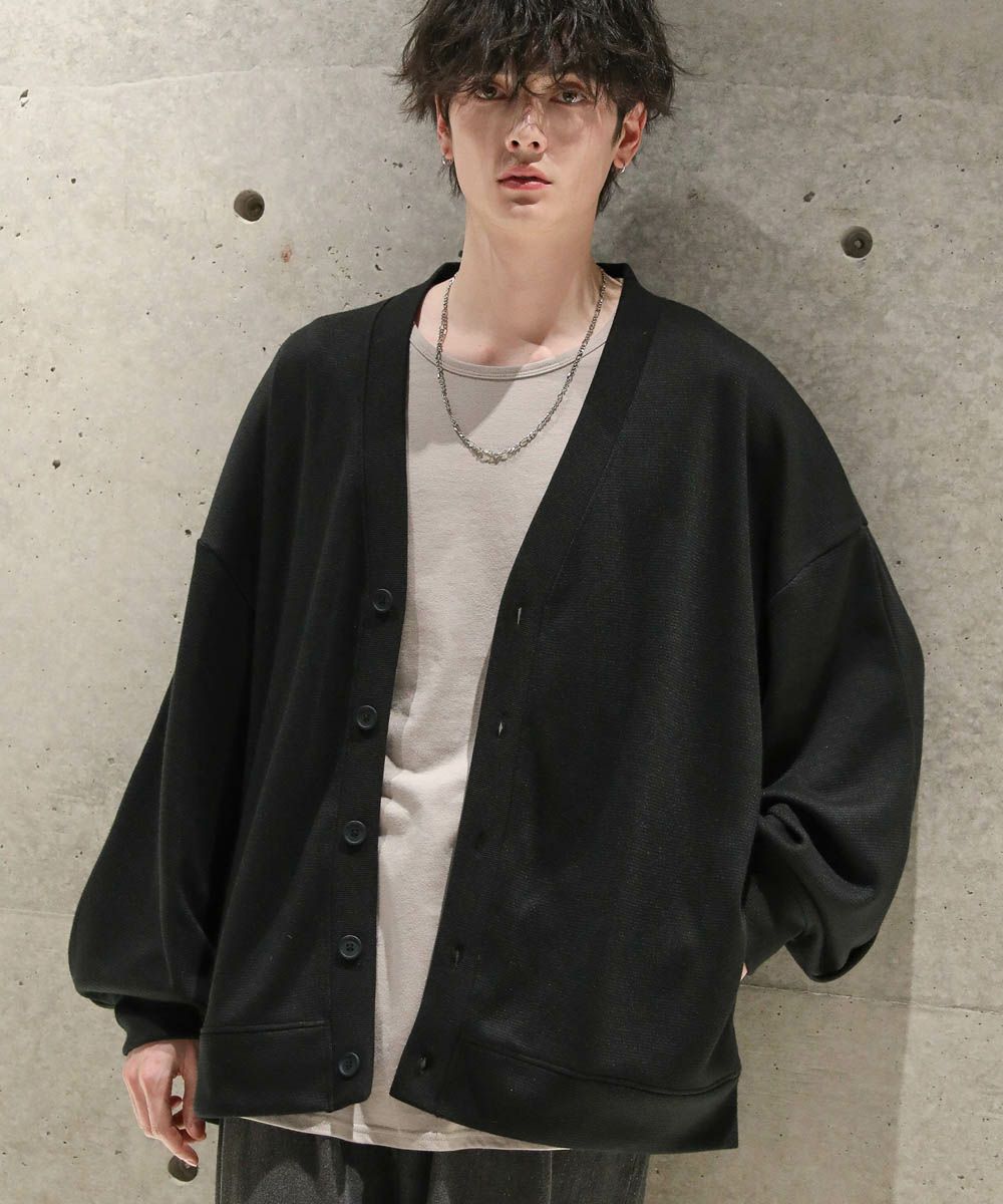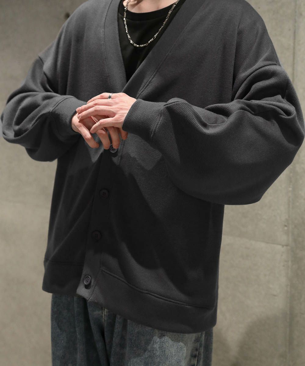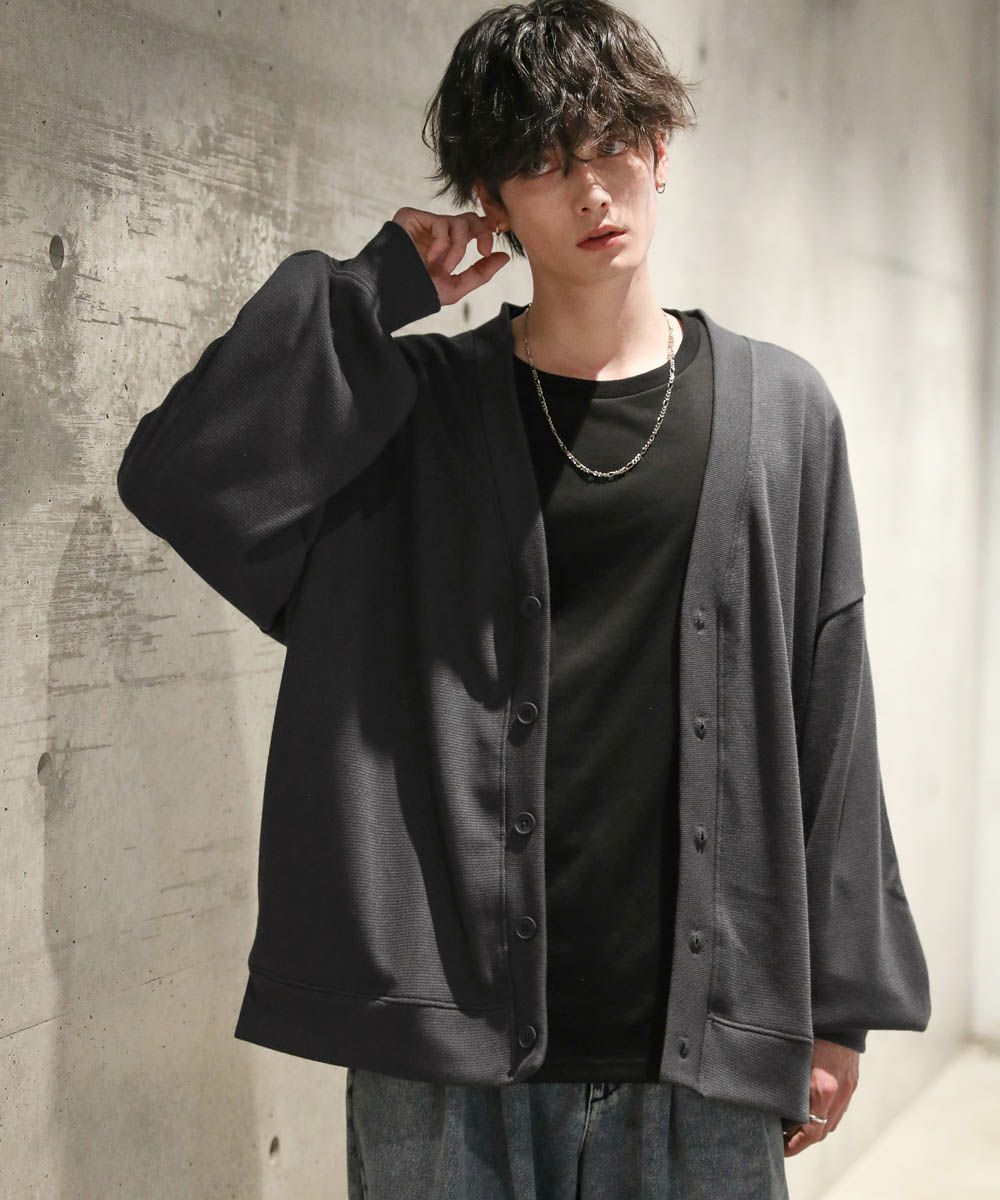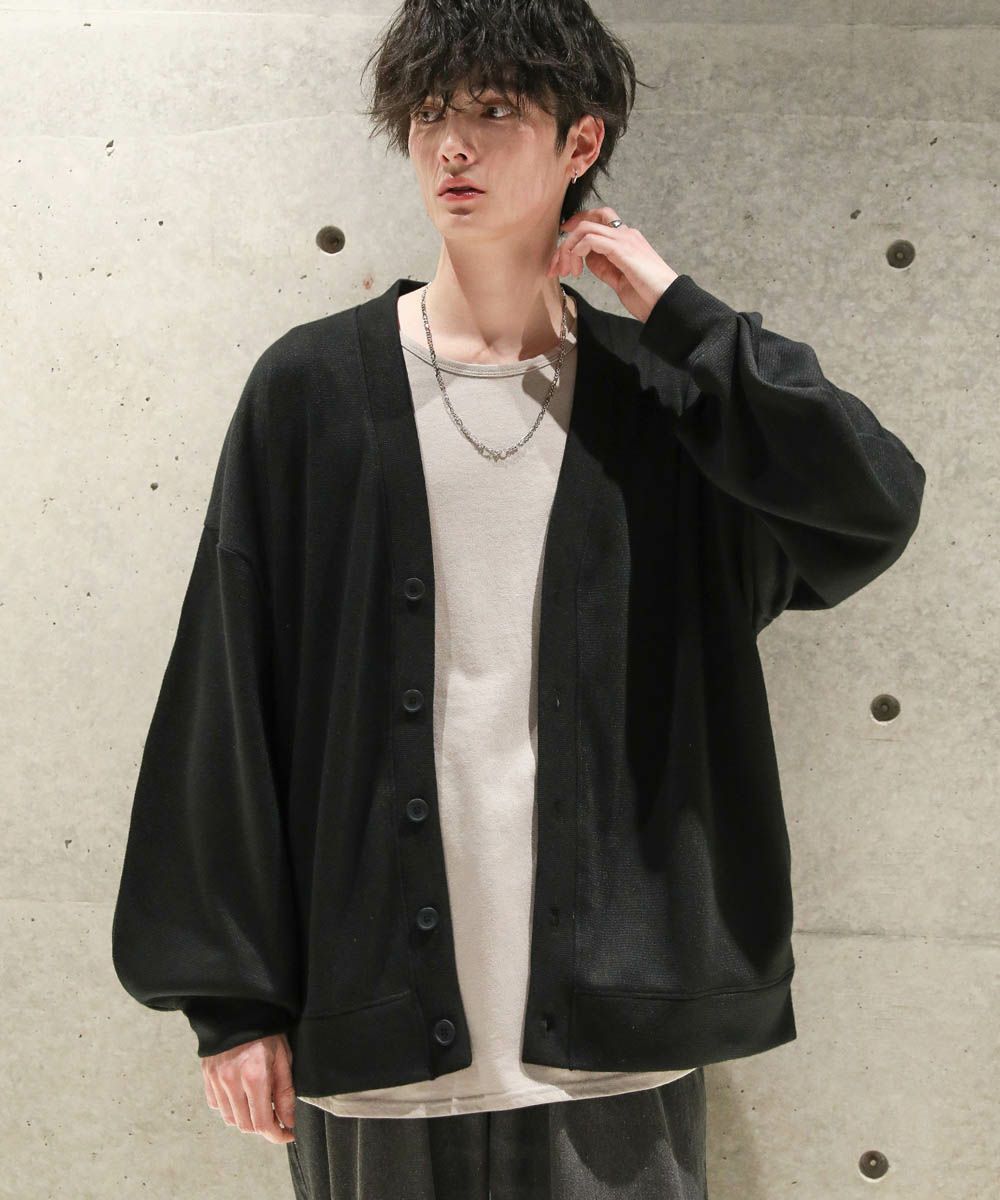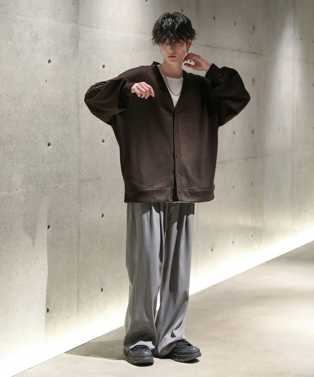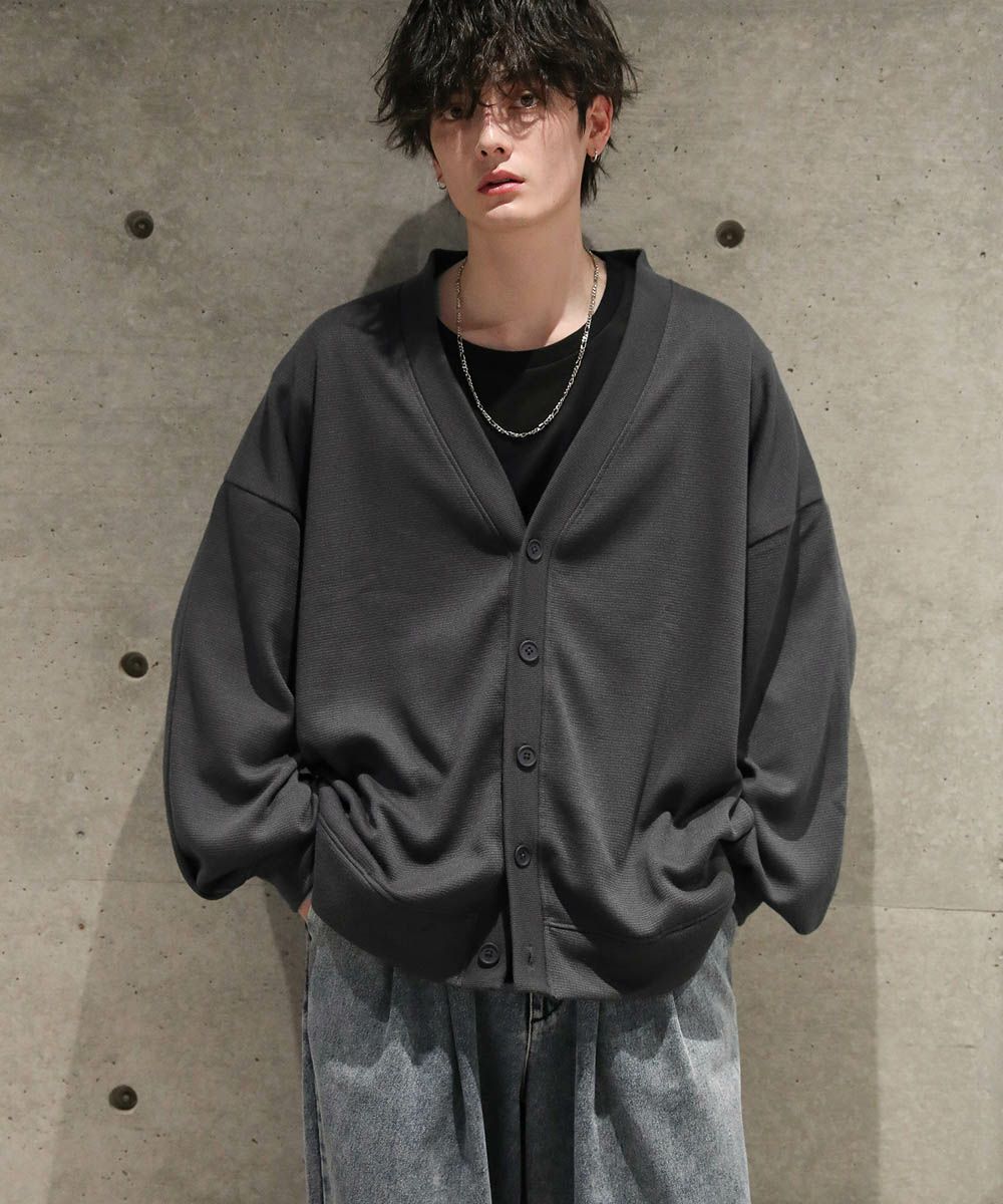 落ち感とドレープ感が醸し出すこなれた雰囲気が魅力のカーディガン。ハイゲージで編んだミラノリブを使用ししており、生地表面の微光沢が上品な印象をプラスします。ゆったりとした身幅とドロップショルダーに、たまり袖がアクセントになった1着。また、顔周りをスッキリと見せるVネックを採用。インナーとのレイヤードも楽しめ、着回し力の高いアイテムです。