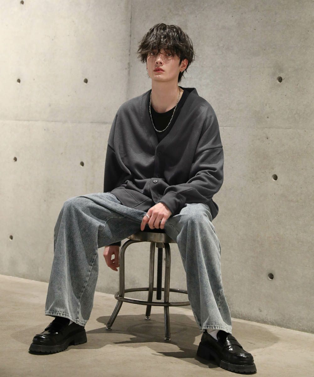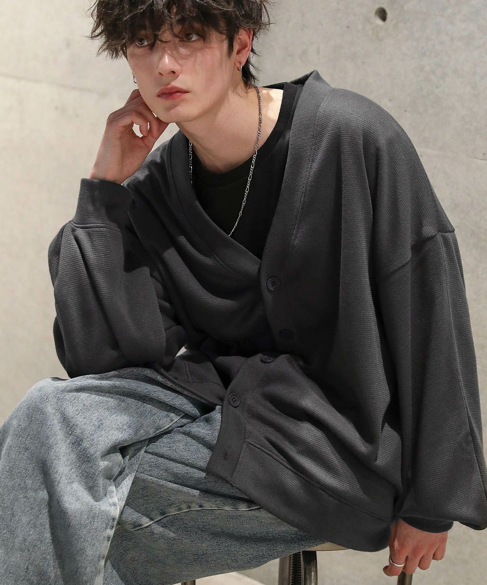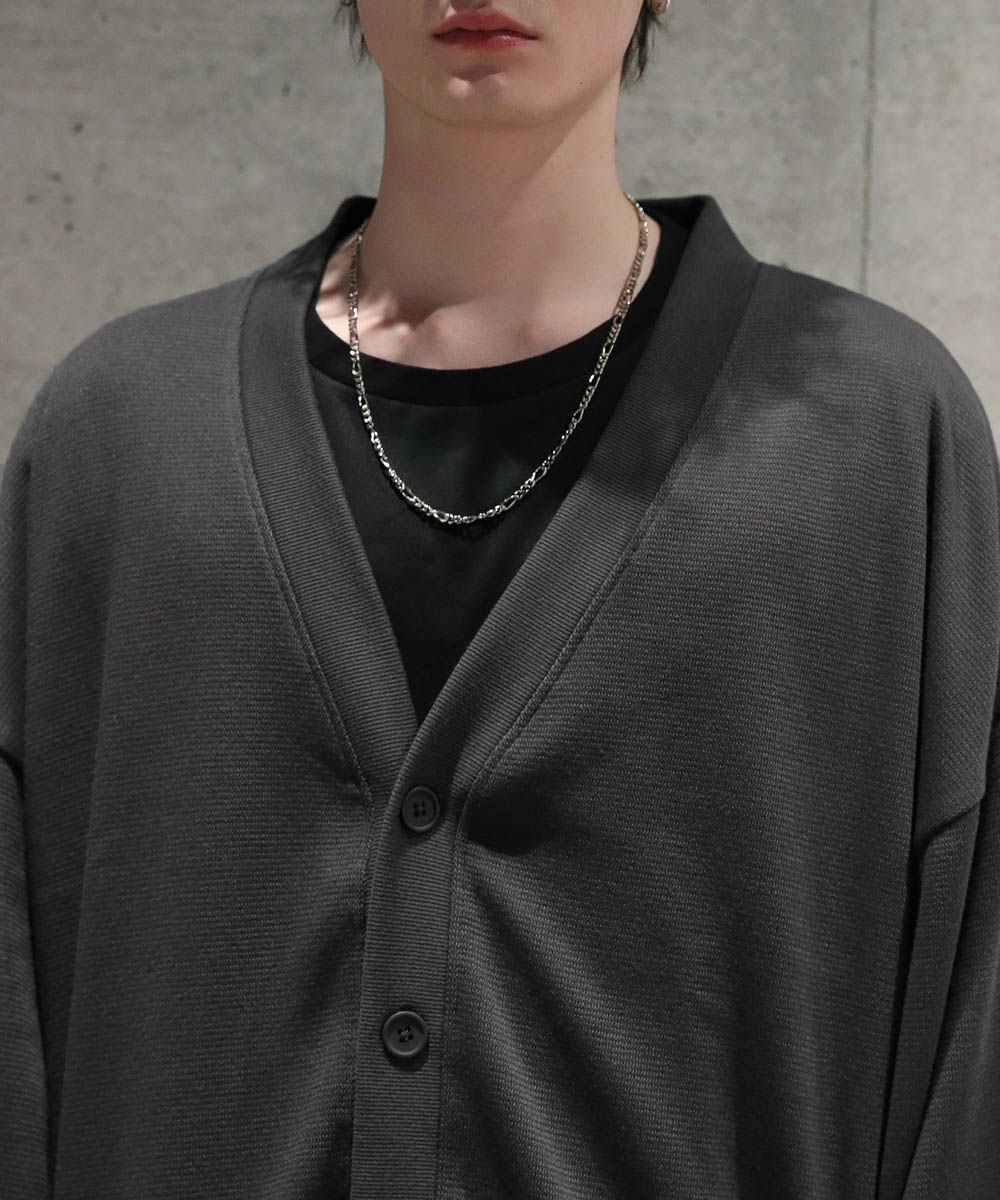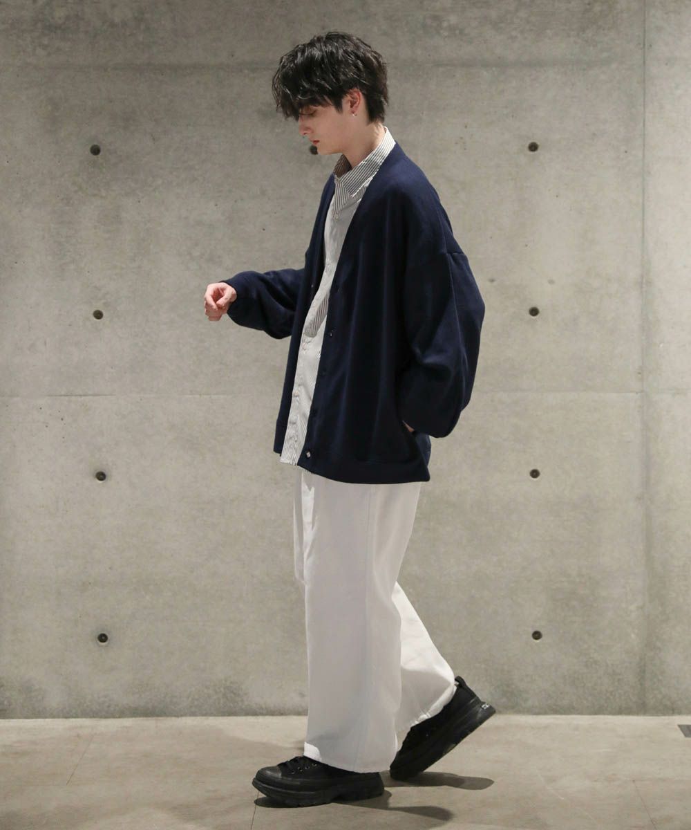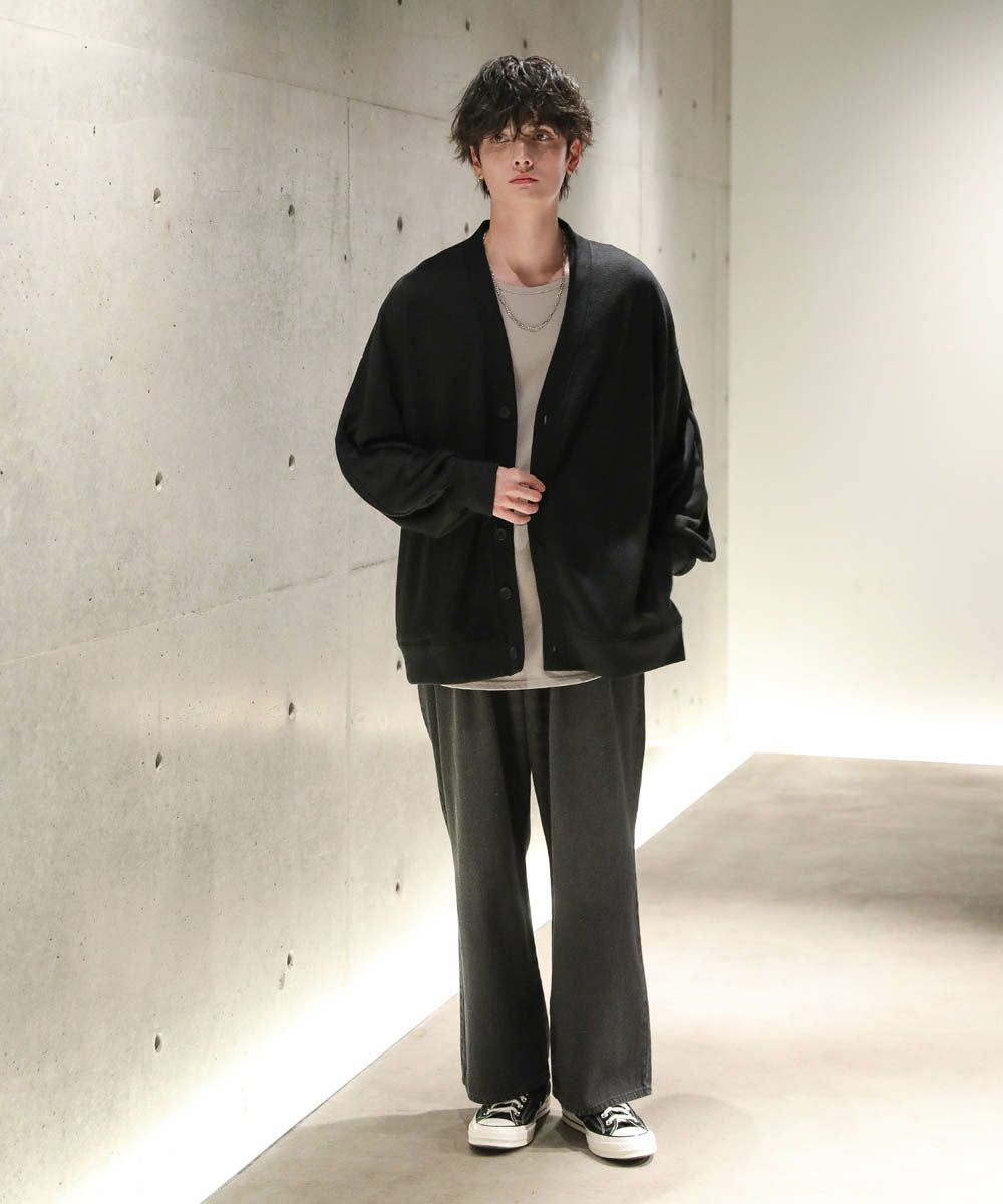 落ち感とドレープ感が醸し出すこなれた雰囲気が魅力のカーディガン。ハイゲージで編んだミラノリブを使用ししており、生地表面の微光沢が上品な印象をプラスします。ゆったりとした身幅とドロップショルダーに、たまり袖がアクセントになった1着。また、顔周りをスッキリと見せるVネックを採用。インナーとのレイヤードも楽しめ、着回し力の高いアイテムです。