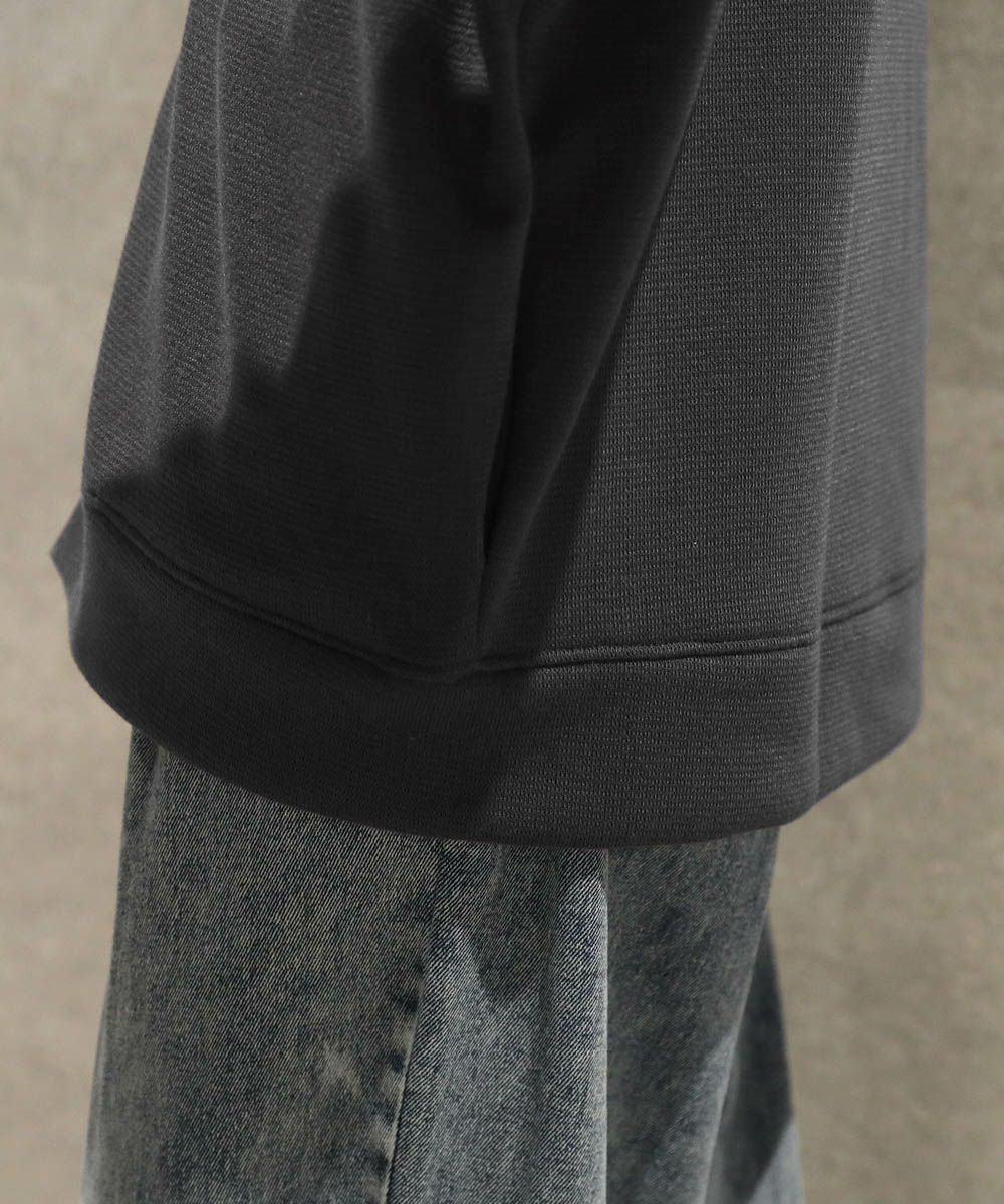 目の詰まったミラノリブニット素材を使用。表面にはややハリとツヤ感があり、きれいめな印象で着用できます。さらっとした肌触りで、春や秋など季節の変わり目に活躍します。