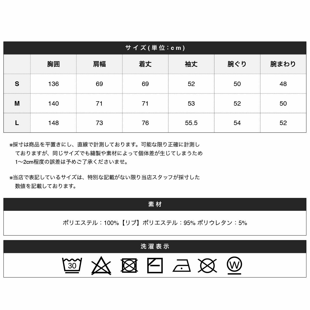 ※商品特性、縫製や素材により同サイズでも、若干の誤差が生じてしまうことを予めご了承ください。
