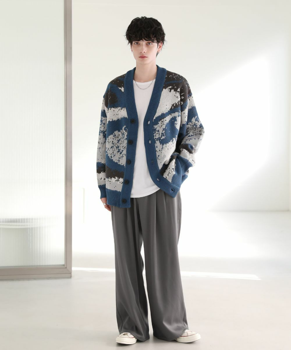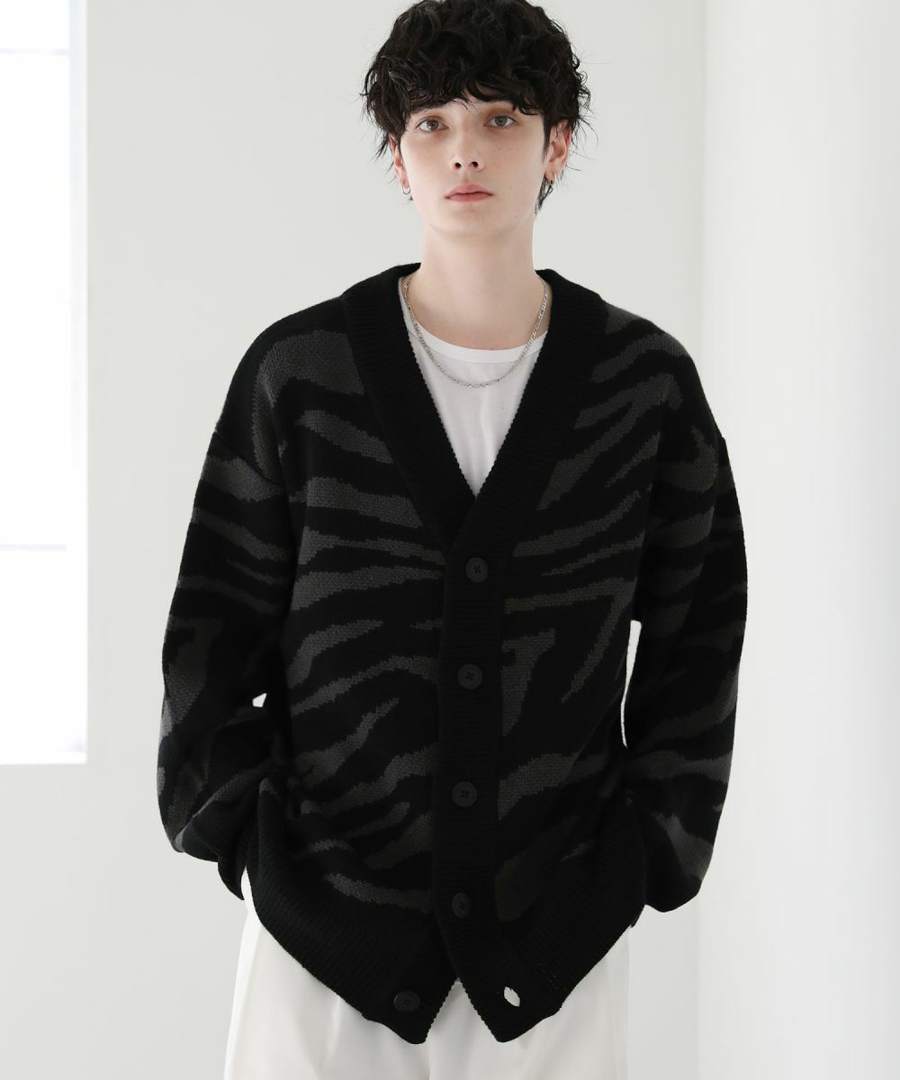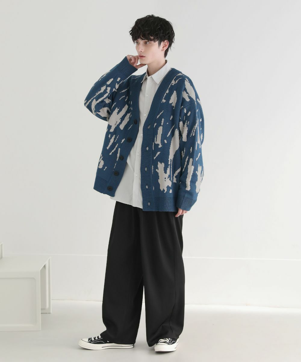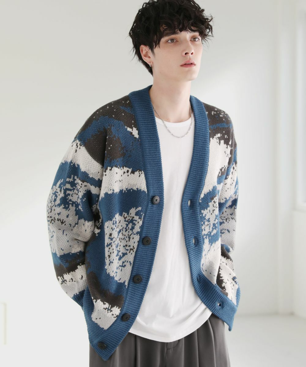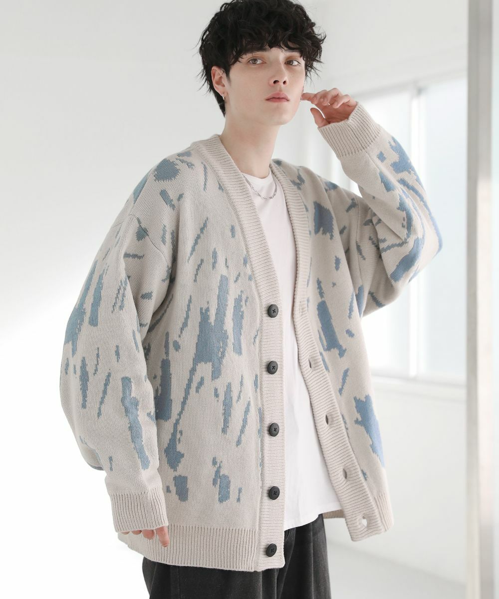Buyer's select/オーバーサイズVネックカーディガン スプラッシュ柄/配色スプラッシュ柄/ゼブラ柄/スモーク柄