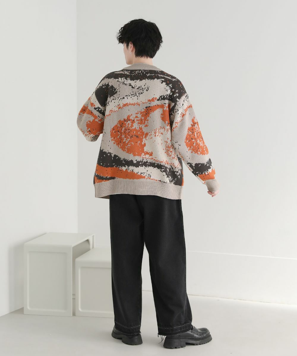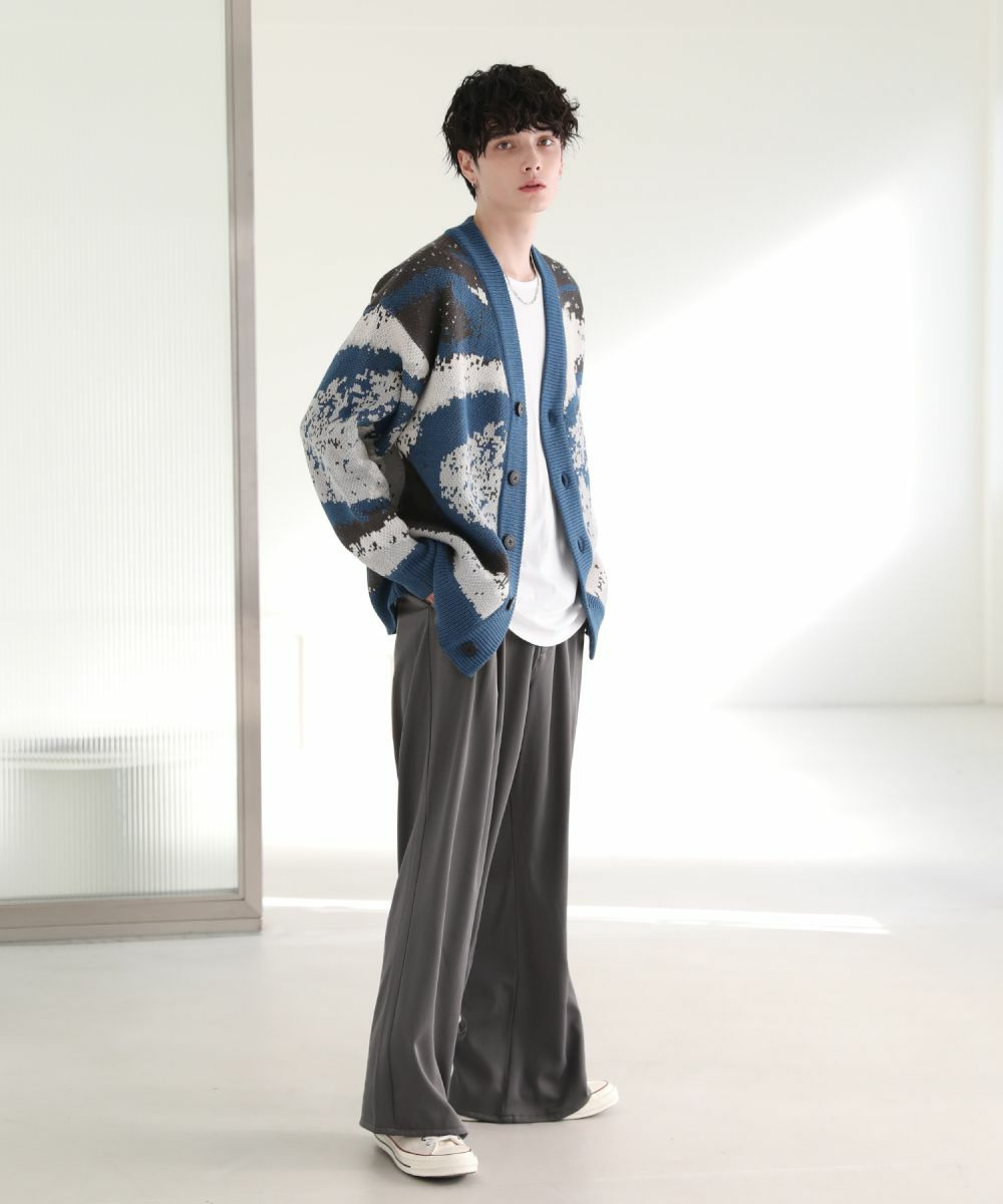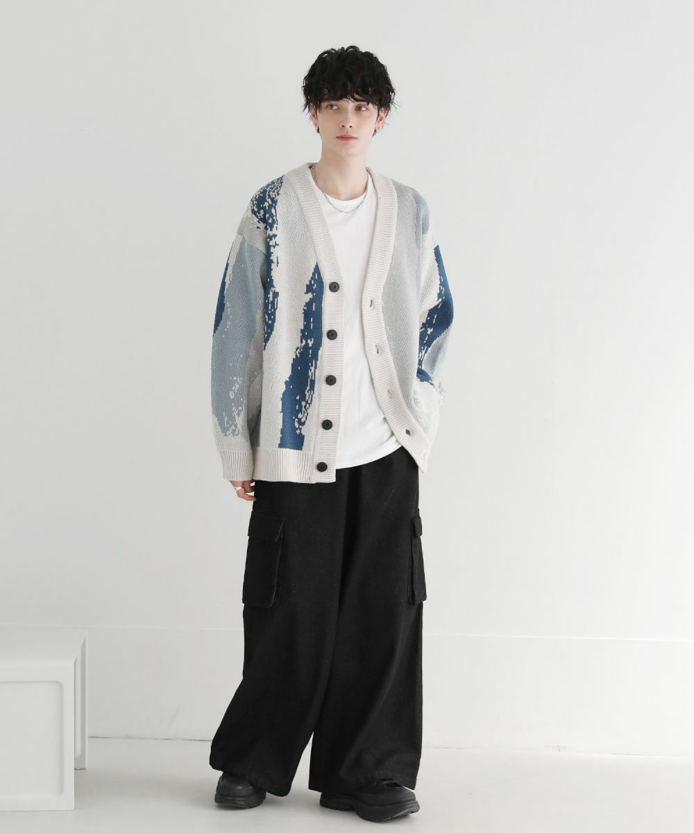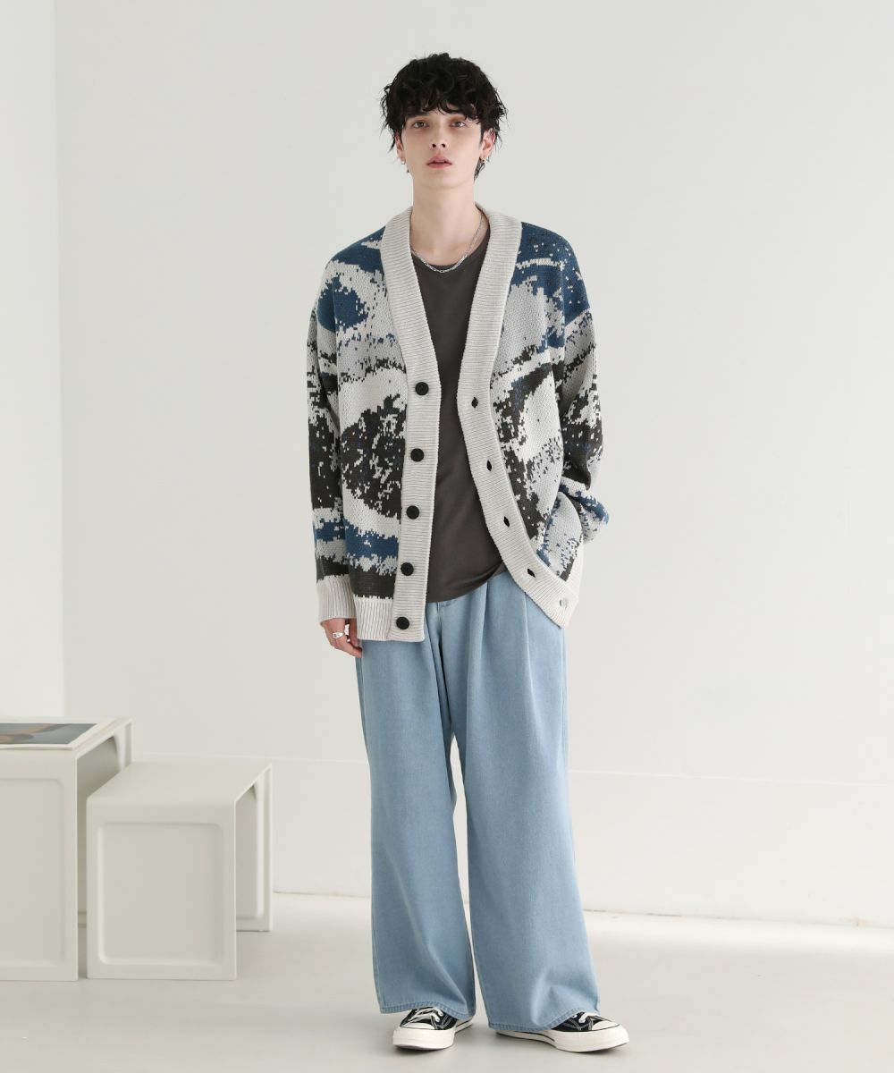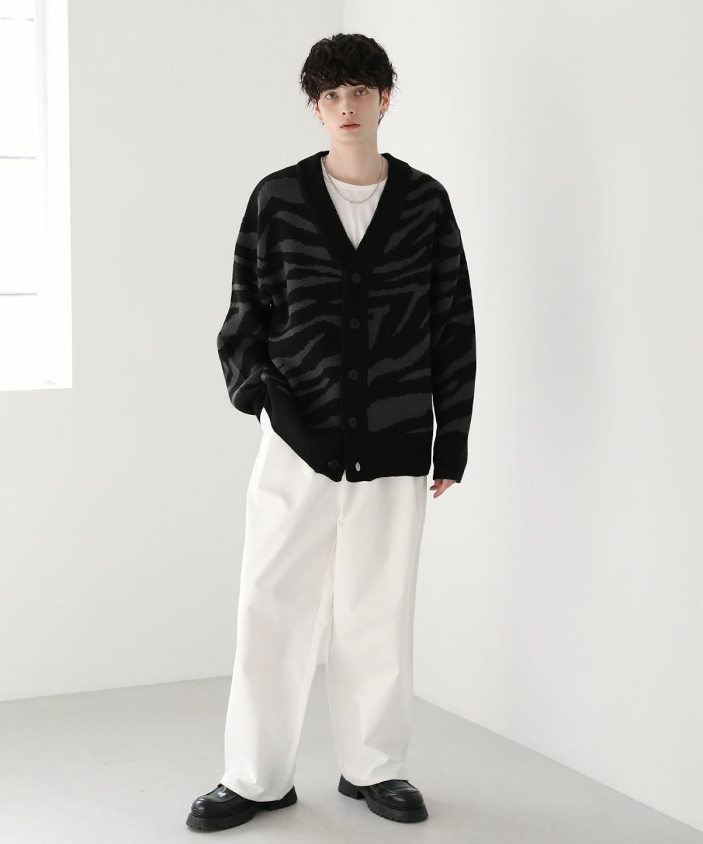 Buyer's select/オーバーサイズVネックカーディガン スプラッシュ柄/配色スプラッシュ柄/ゼブラ柄/スモーク柄