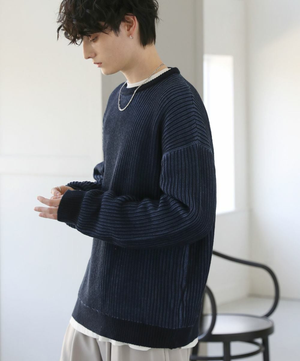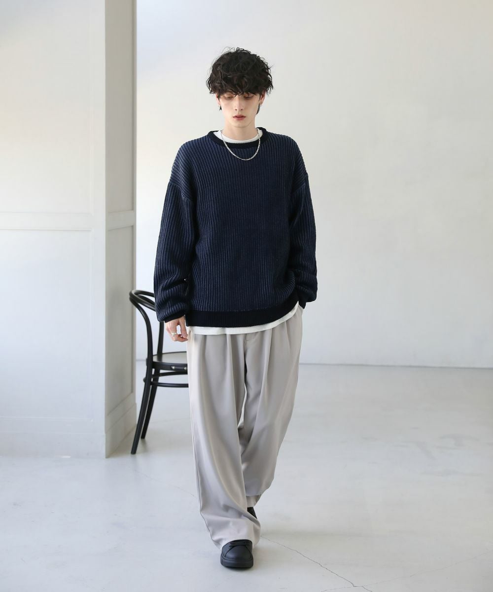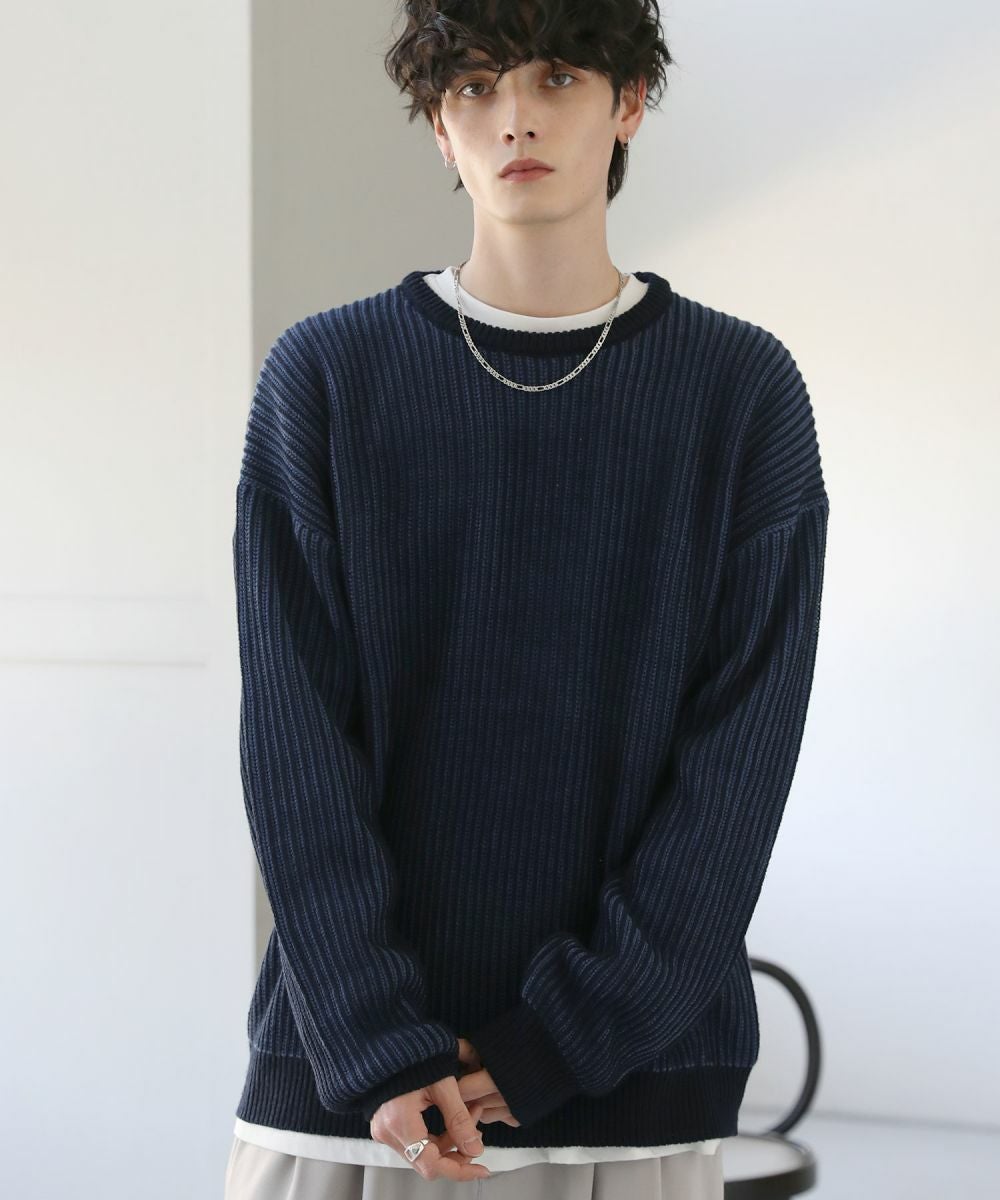 ビッグシルエット二重臼クルーネックニット
