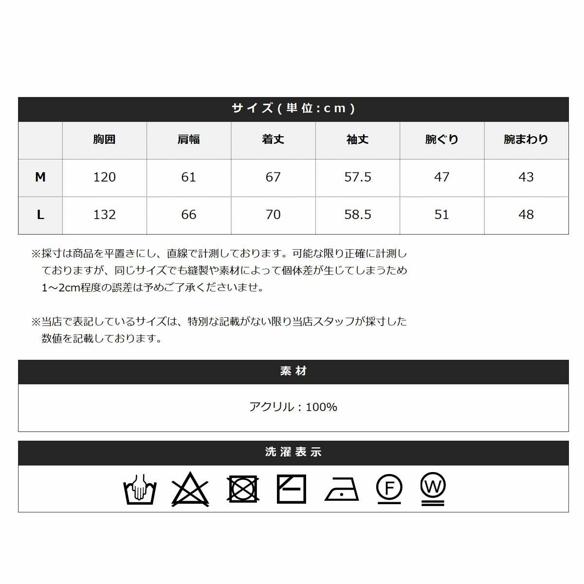※商品特性、縫製や素材により同サイズでも、若干の誤差が生じてしまうことを予めご了承ください。