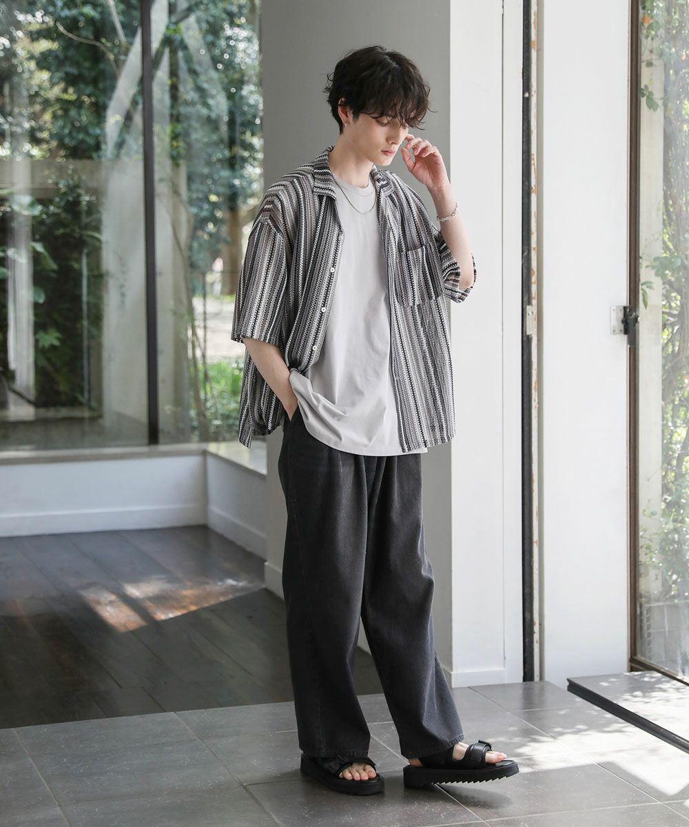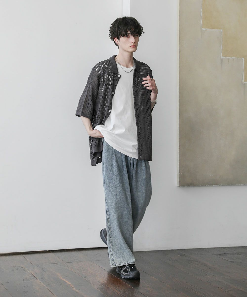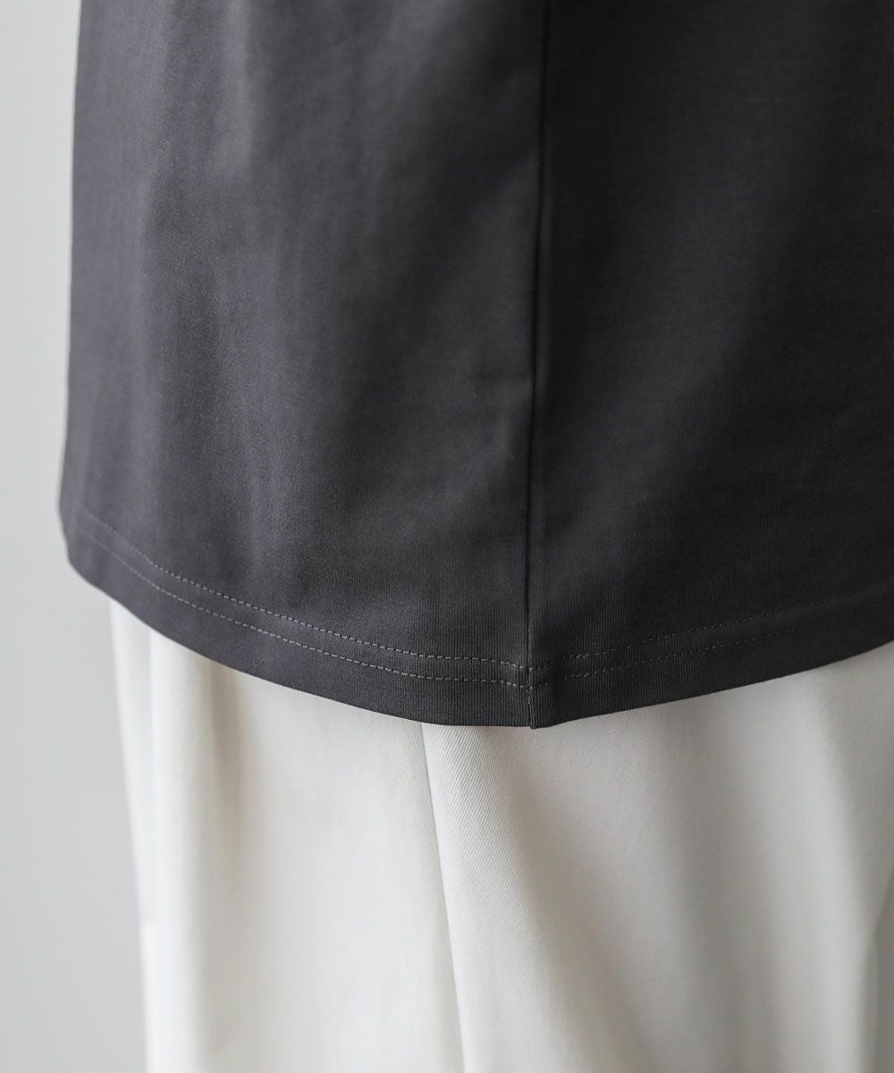 緩めのボトムと合わせた、ラフな着こなしがおすすめです。単色のシンプルなデザインなので、スラックスやデニム、ワイドパンツなど合わせるアイテムを選ばず活躍。1枚で、またシャツやカーディガンのインナーとして、様々な着こなしを楽しめます。