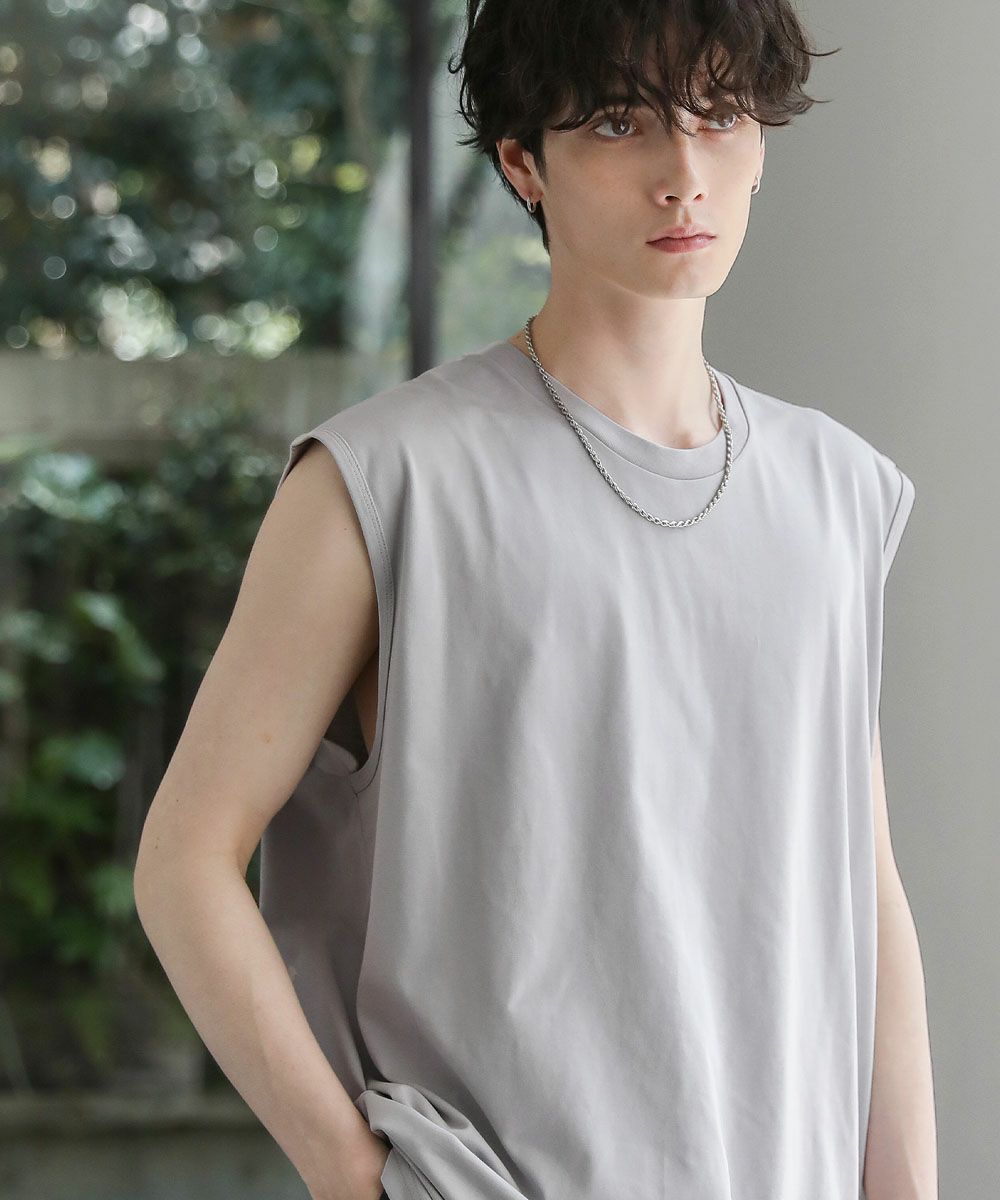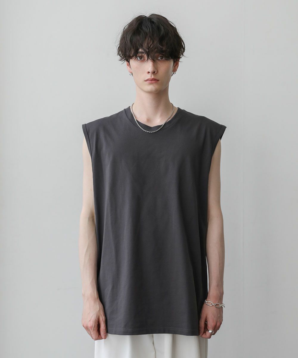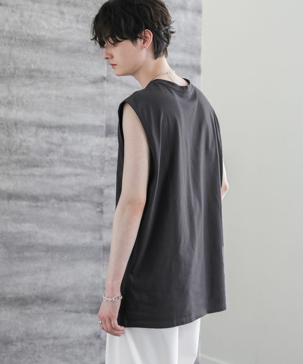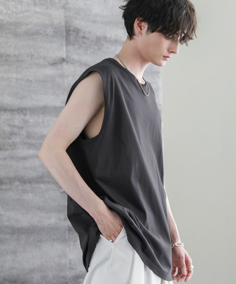 ゆとりのあるビッグシルエットに、ノースリーブデザインが半袖Tシャツとは一味違うスタイルを楽しめます。1枚での着用はもちろん、インナーとしても活躍するアイテム。どんな着こなしにも合わせやすい、ホワイト、ブラック、ライトグレー、チャコールの4色展開。デザイン性と機能性を兼ね備えた、夏に1枚は欲しいおすすめのアイテムです。