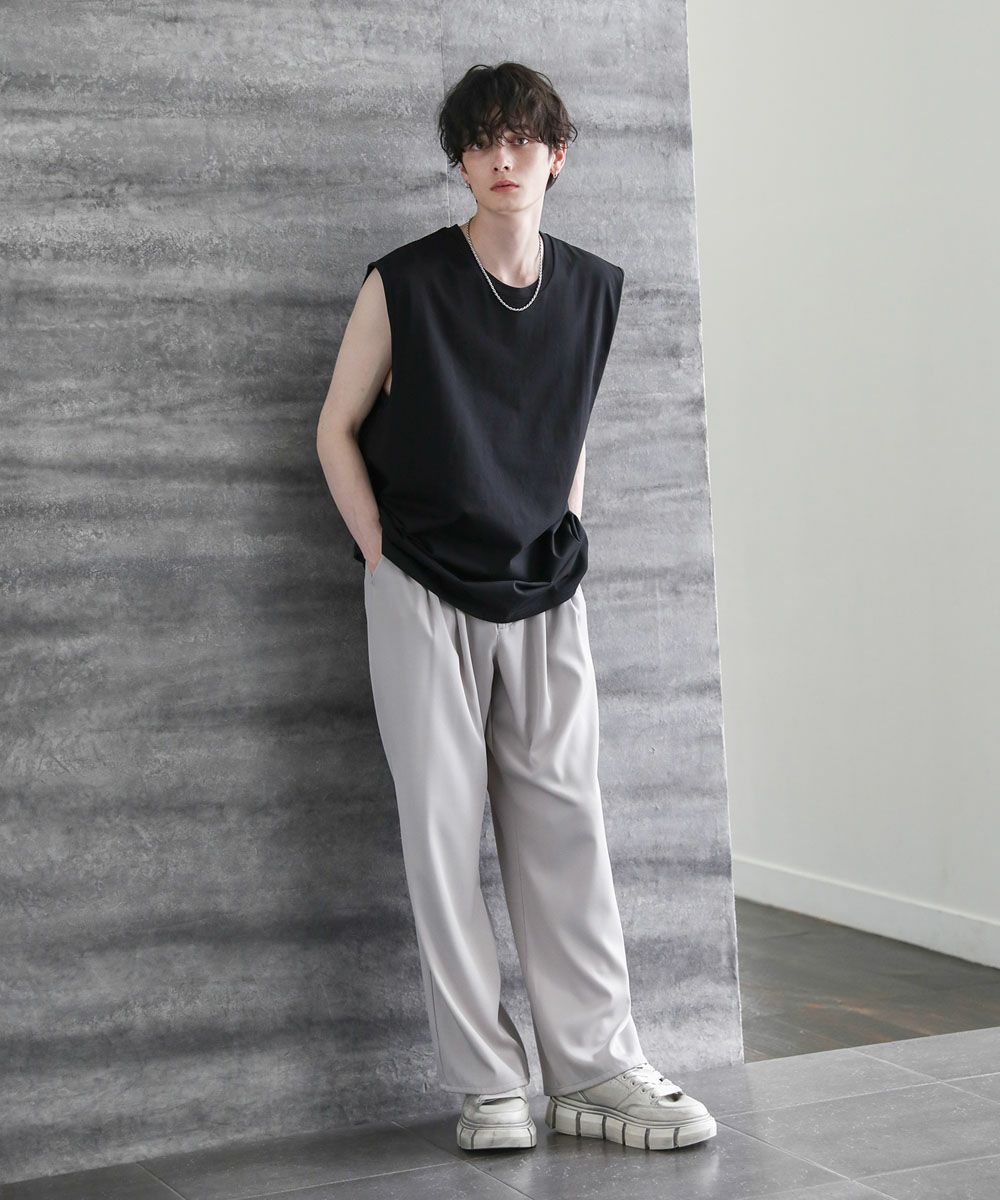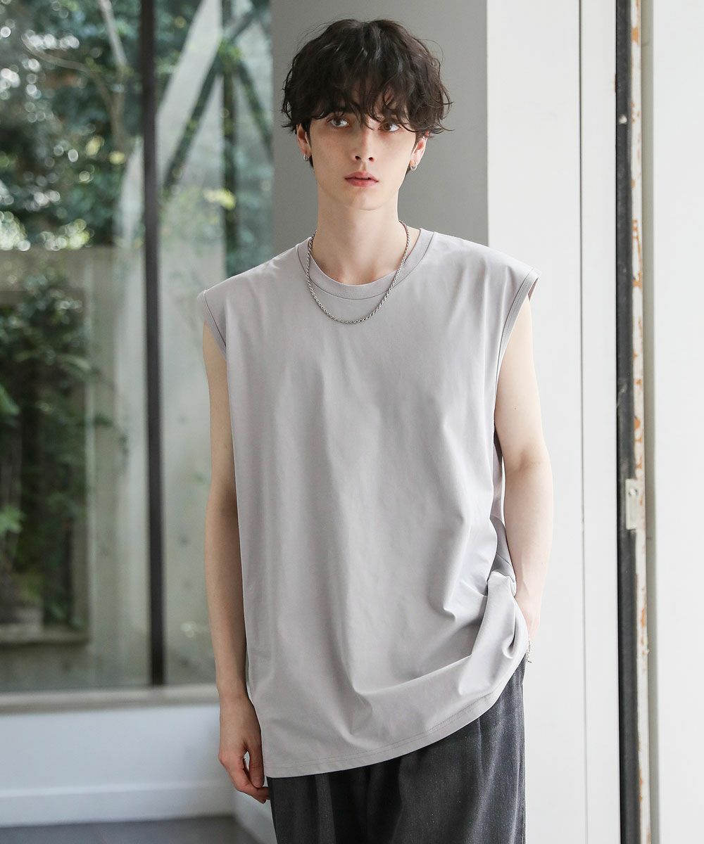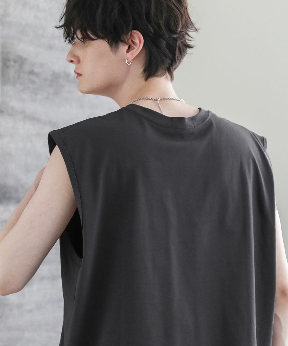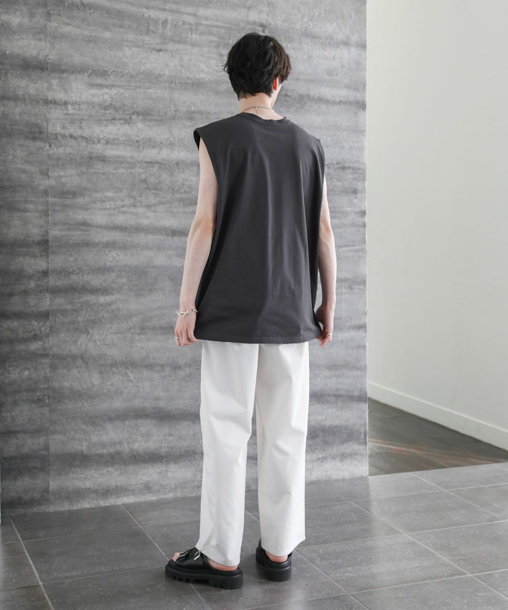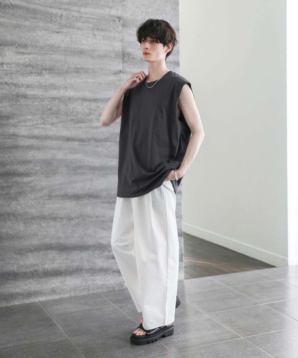 ゆとりのあるビッグシルエットに、ノースリーブデザインが半袖Tシャツとは一味違うスタイルを楽しめます。1枚での着用はもちろん、インナーとしても活躍するアイテム。どんな着こなしにも合わせやすい、ホワイト、ブラック、ライトグレー、チャコールの4色展開。デザイン性と機能性を兼ね備えた、夏に1枚は欲しいおすすめのアイテムです。