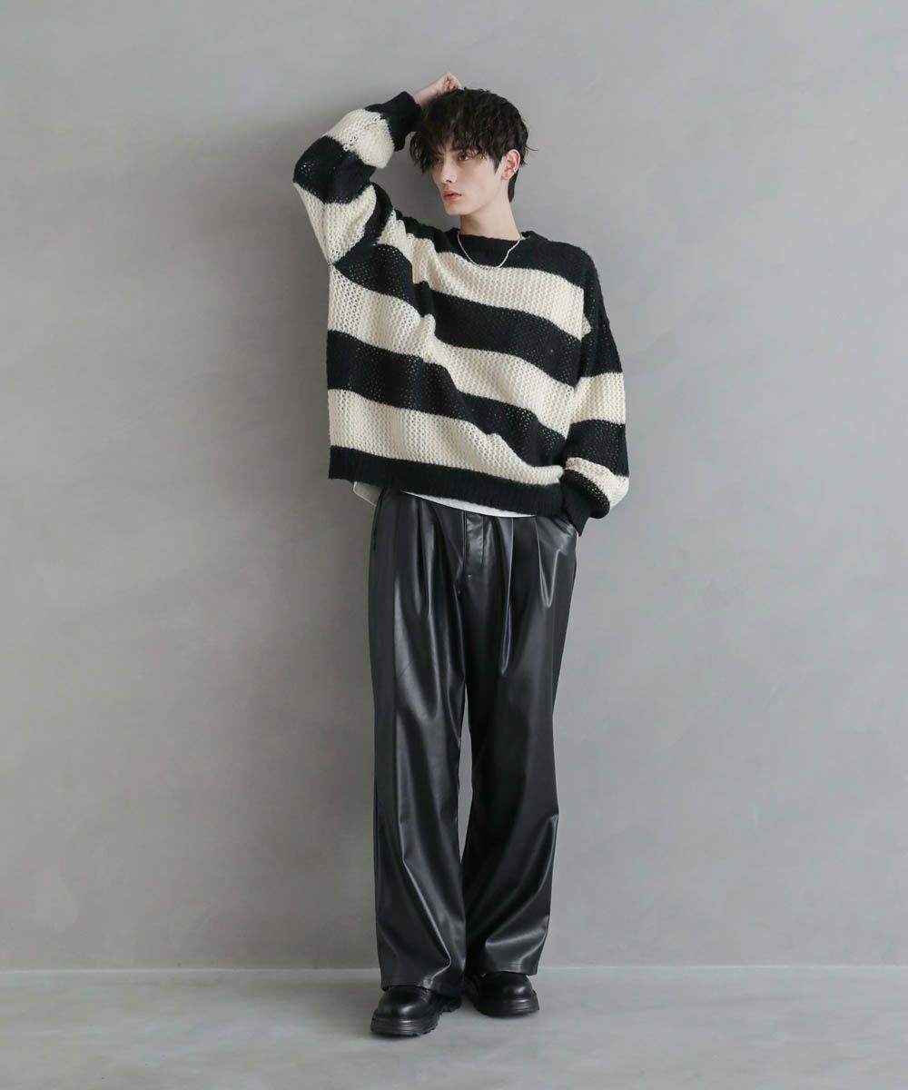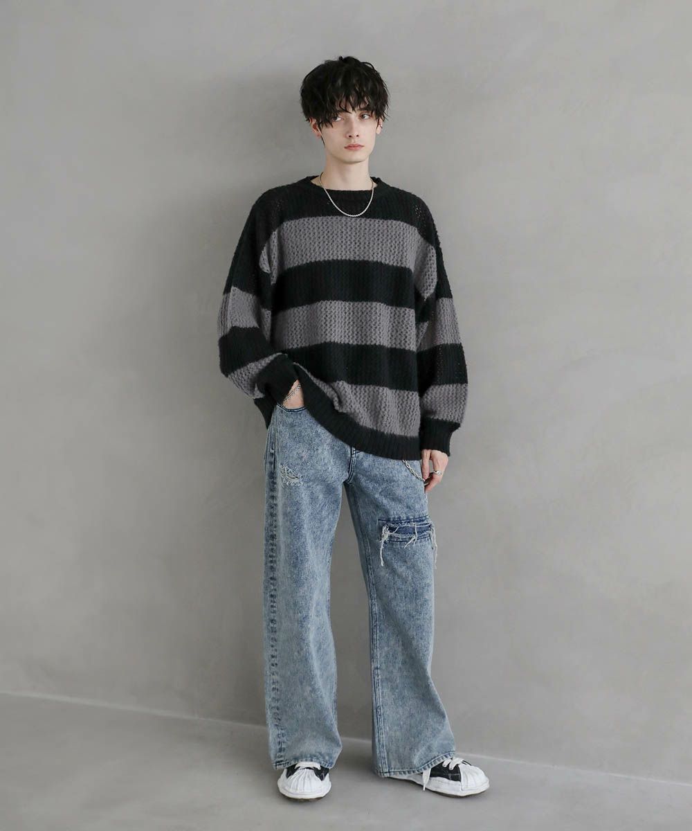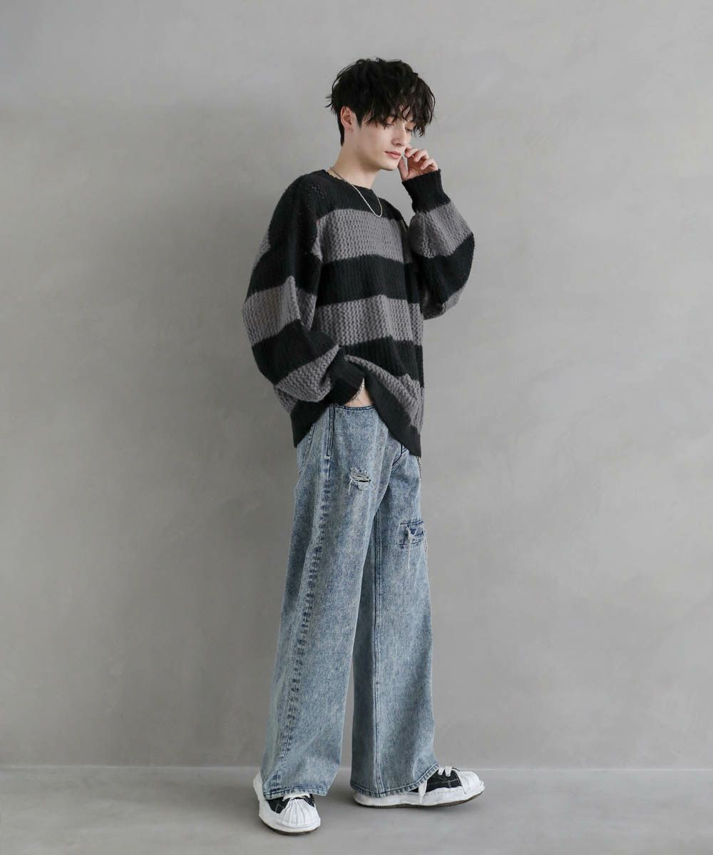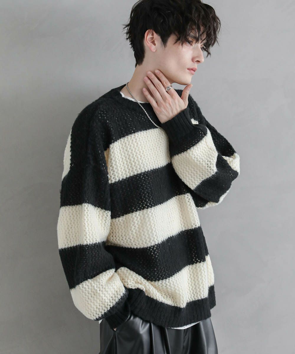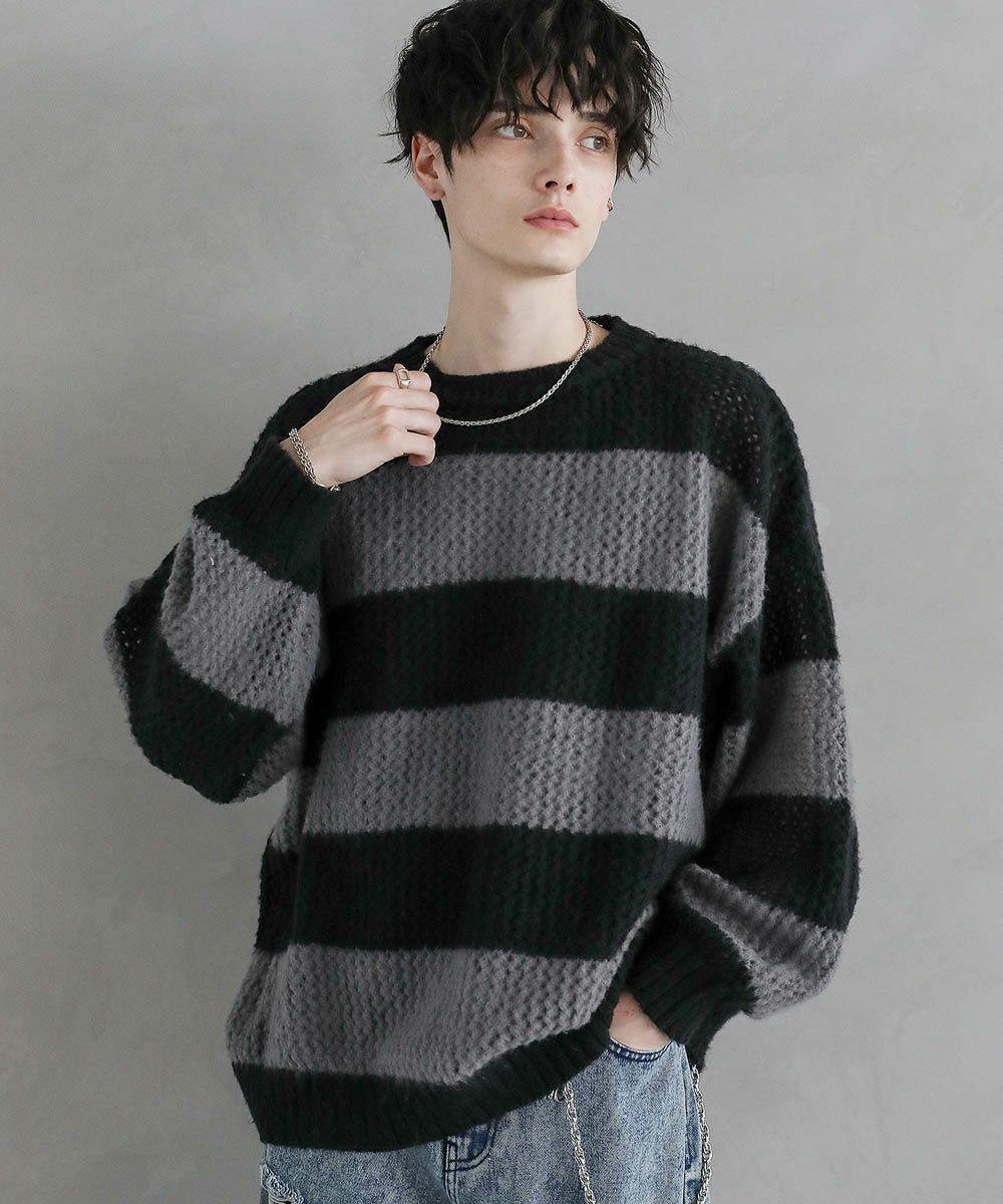 カラー糸をMIXした表情のあるメランジニットのブラックに、着こなしのメインになるボーダー2色を加えた3色展開。秋冬のスタイリングにラフな抜け感をプラスする、おすすめのアイテムです。