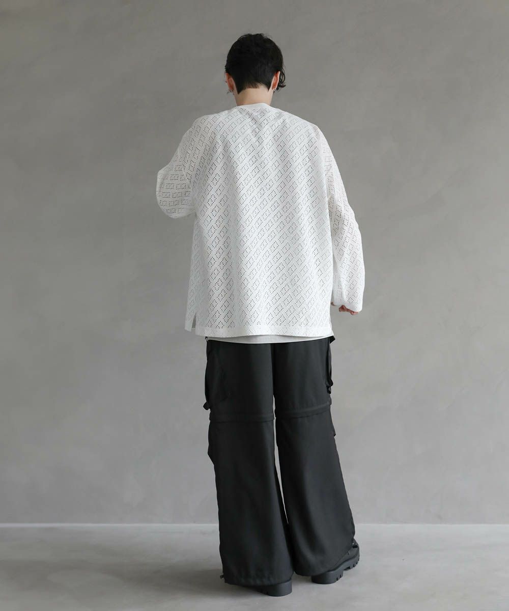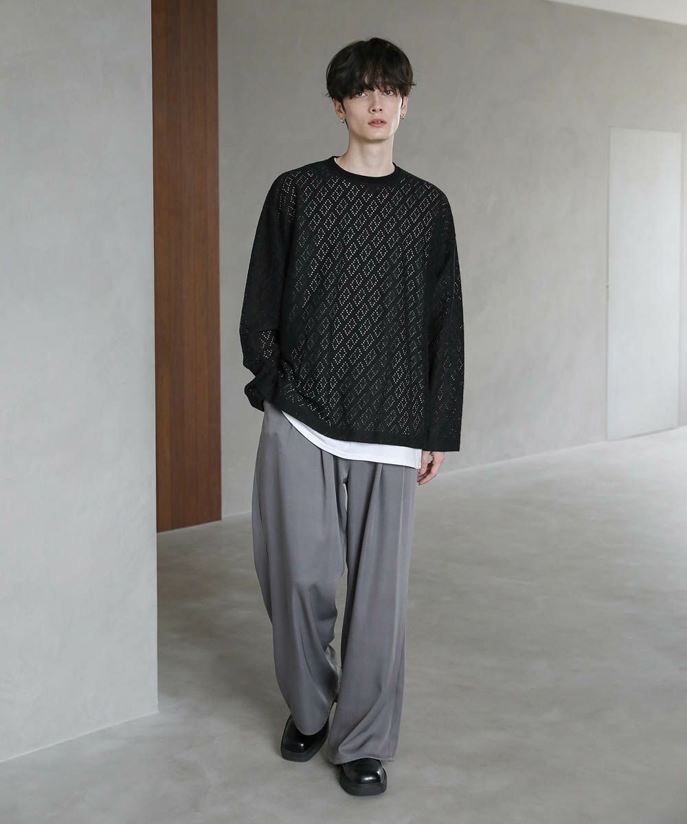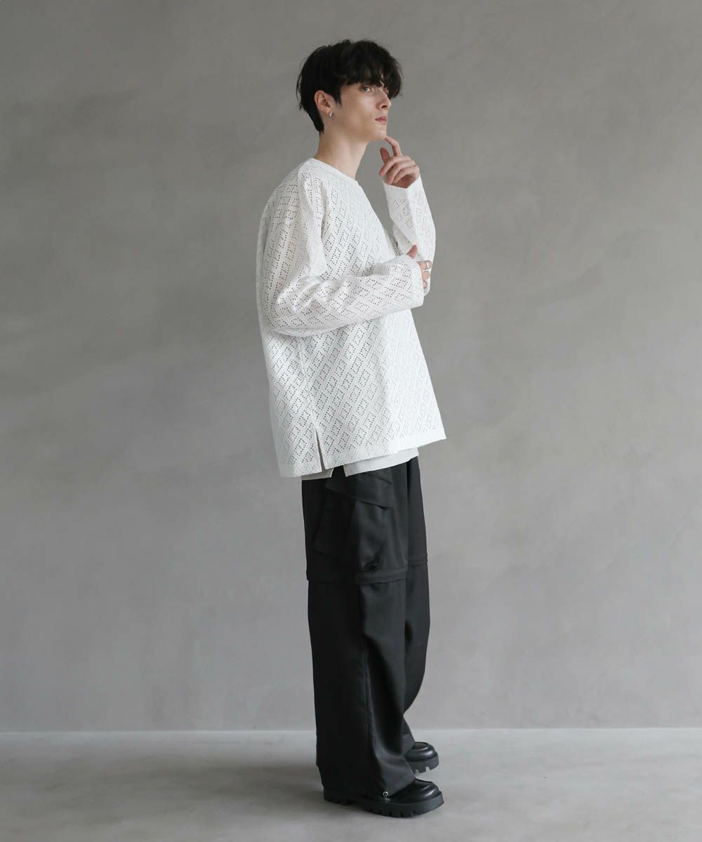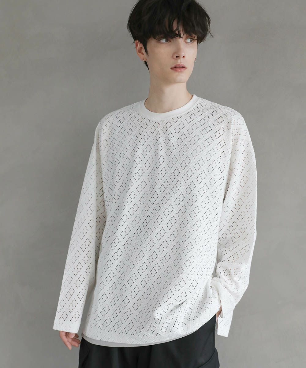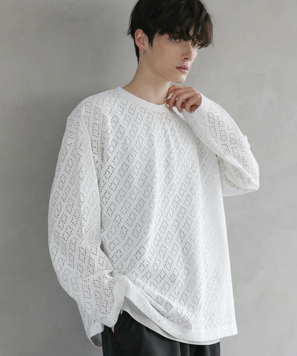 程よい透け感のレース生地で普段の着こなしに取り入れやすく、取り入れるだけでトレンドのスタイルに。ワイドボトムと合わせたリラックス感のある着こなしがおすすめです。