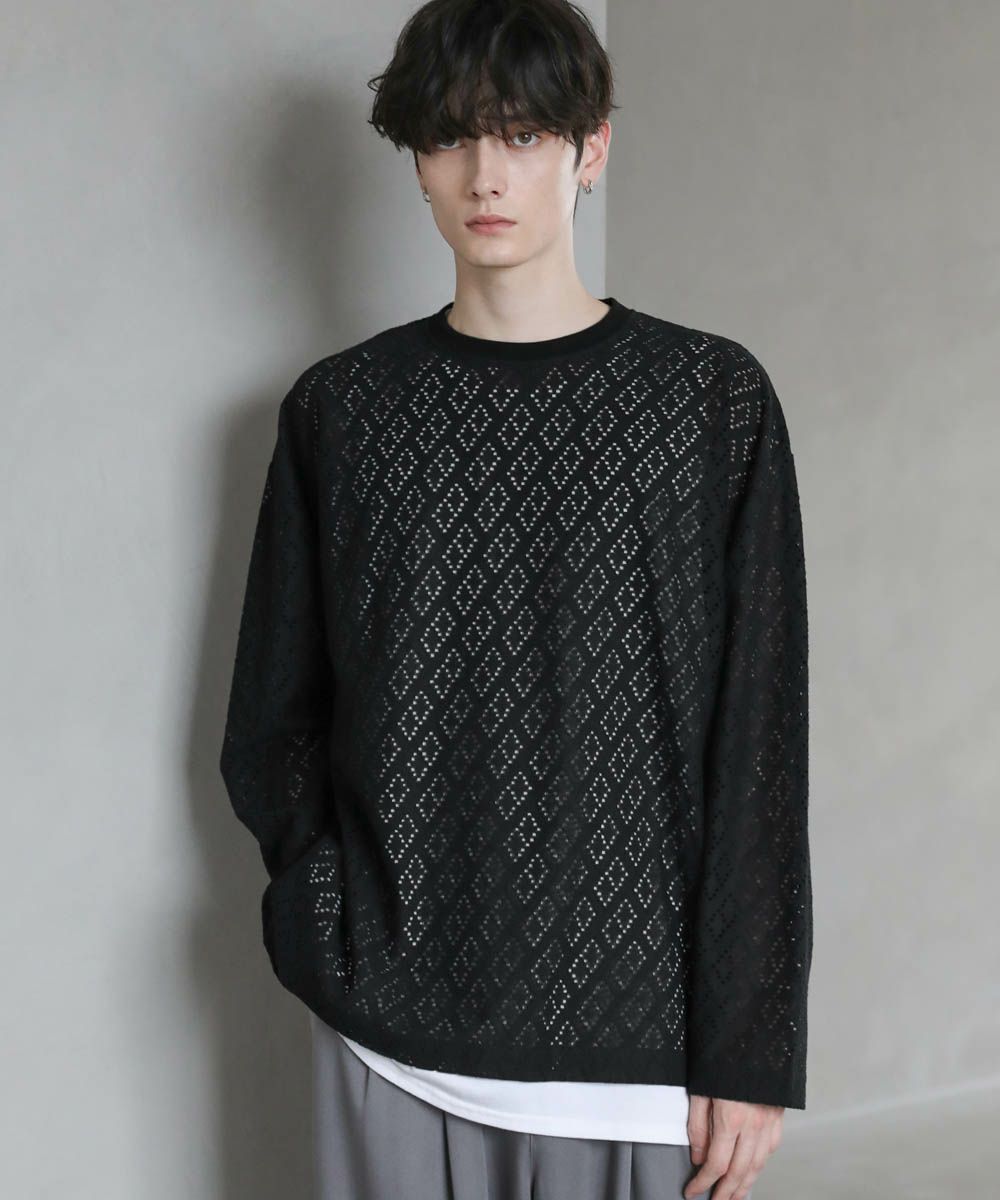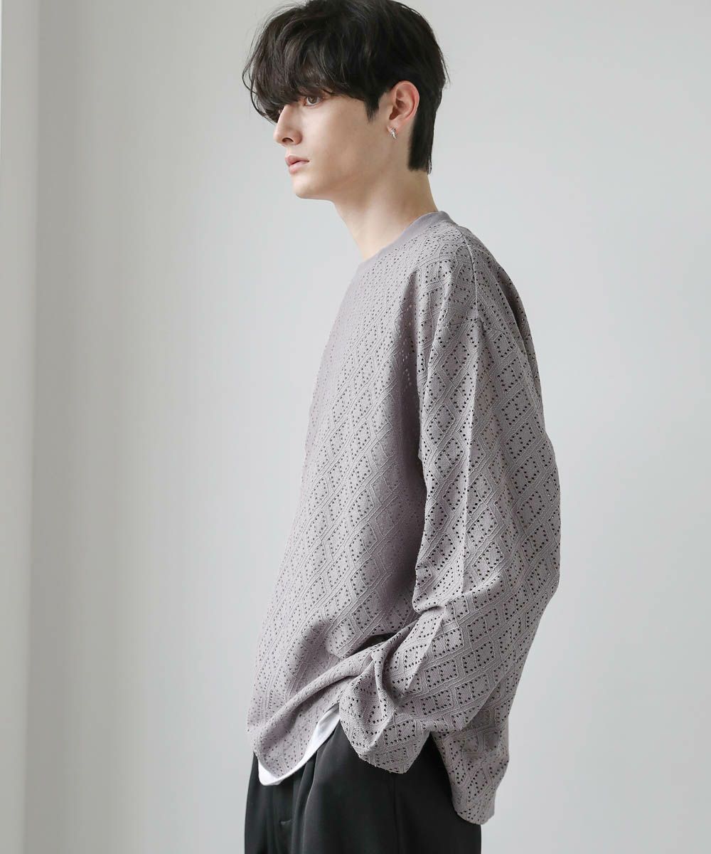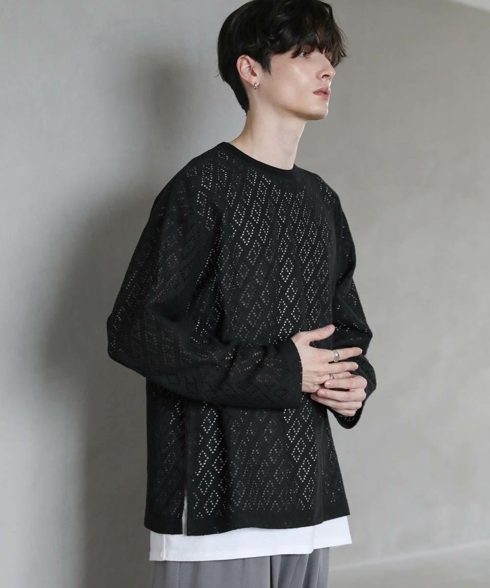 透け感のあるレース生地が、トレンドの着こなしを作るプルオーバー。着回しのしやすいシンプルなクルーネックのデザインながら、レース生地がこなれた印象に見せてくれます。透かし編みの抜け感と、身幅や袖にゆとりを持たせたルーズなシルエットが魅力の1枚です。裾にはサイドスリットを施し、デザインとしてはもちろん動きやすいのもポイント。さらっと軽い着心地で、秋や春など季節の変わり目に活躍するアイテムです。