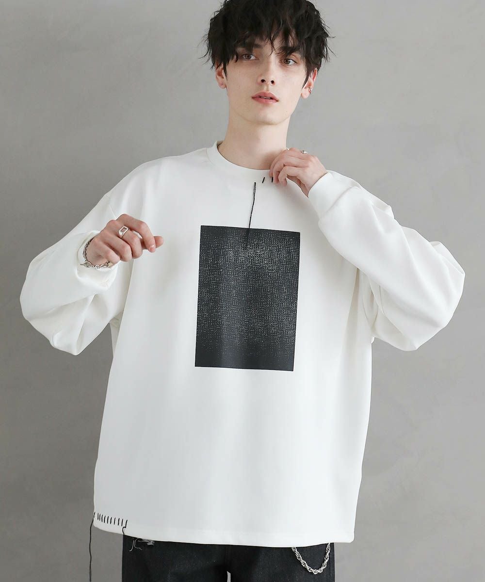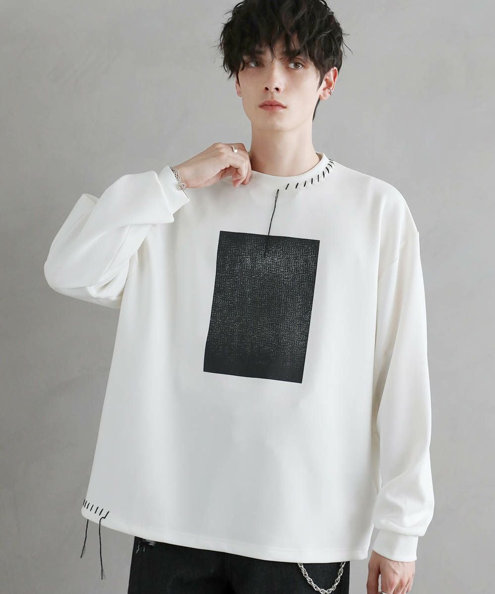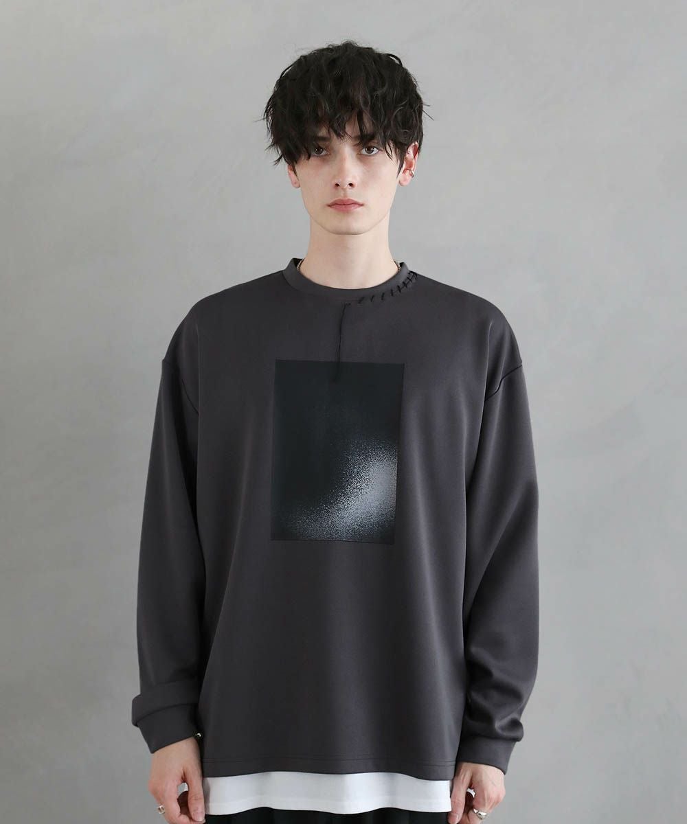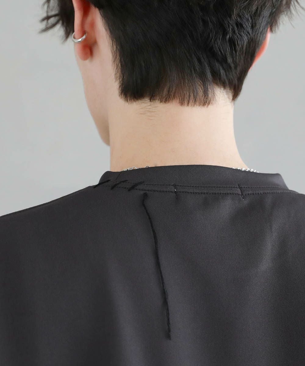 グラフィックプリントとステッチを装飾した、ポンチロンT。フロントにはボディのカラーごとに異なるプリントを配置しました。首元と右サイドにステッチを施し、どの角度から見ても動きのあるデザインに。デザイン性を加えつつ全体をモノトーンで統一したことで、お手持ちのワードローブに馴染みやすいアイテムに仕上げました。程よい光沢と艶のあるポンチ生地を使用し、カジュアルになりですすぎず雰囲気のあるスタイルに。マンネリしがちなコーデも簡単に決めてくれる頼れる1枚です。