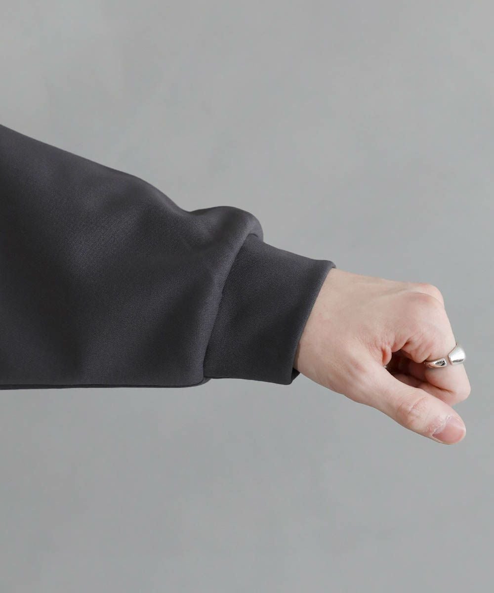 伸縮性に優れており楽な着心地のポンチ素材を採用。空気を含んだようなふくらみと、適度なハリが特徴です。ほんのりと光沢感があり、上品な印象を与えてくれます。