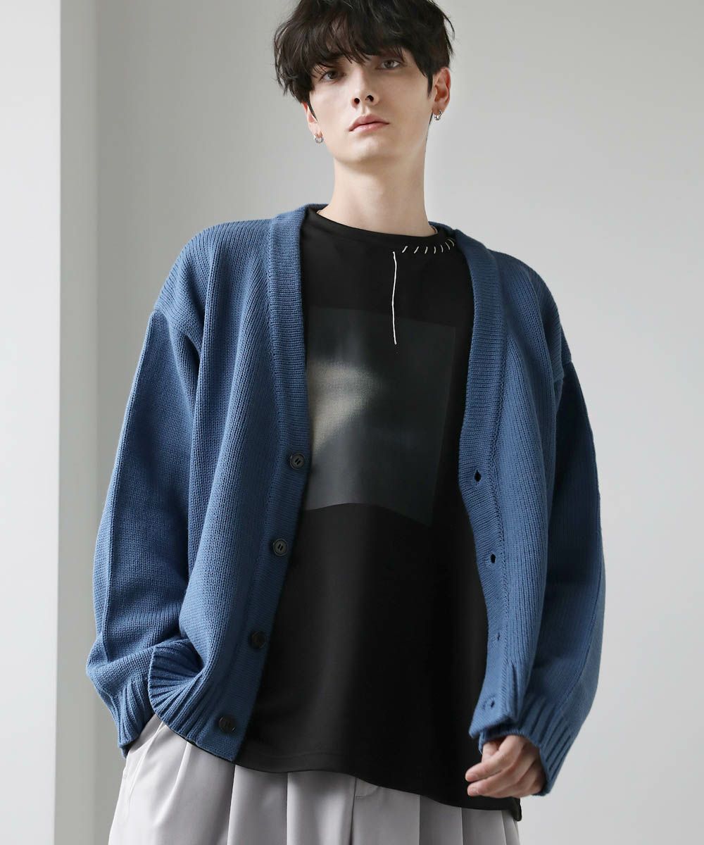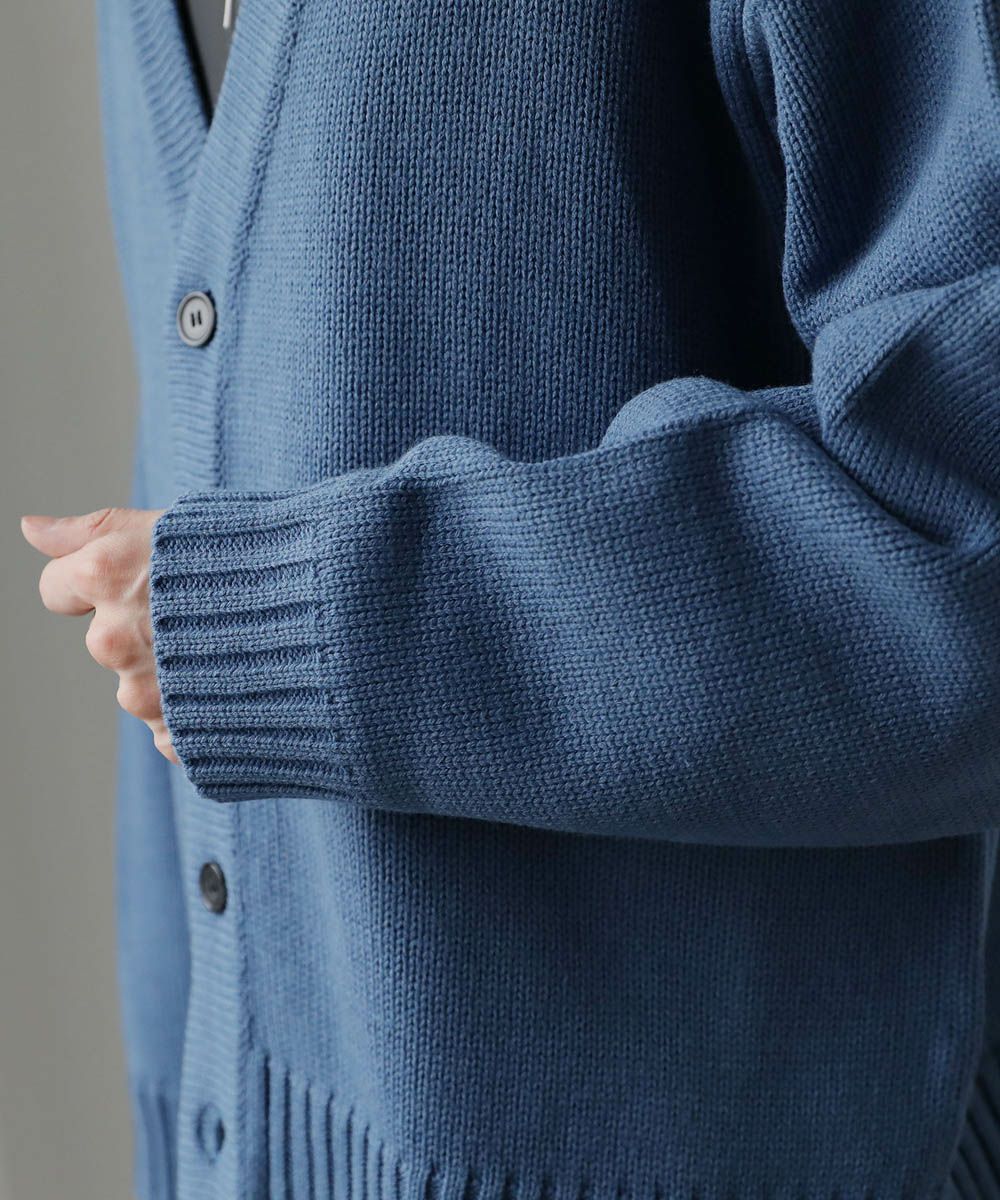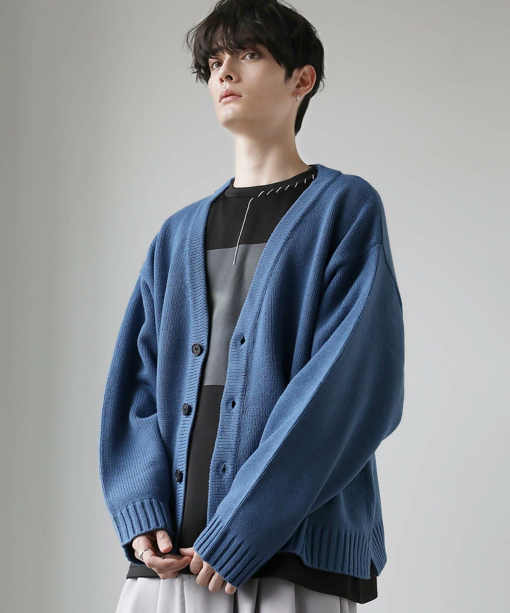 リラックス感の漂うVネックカーディガン。深めのVネックで首回りをスッキリと見せつつ、ワイドシルエットでトレンド感のあるデザインが魅力。また、ドロップショルダーとサイドスリットで程よく抜け感をプラス。短めに設計した着丈で、どんなボトムもバランスよく合わせていただけます。季節変わり目のレイヤードアイテムとしてオススメです。